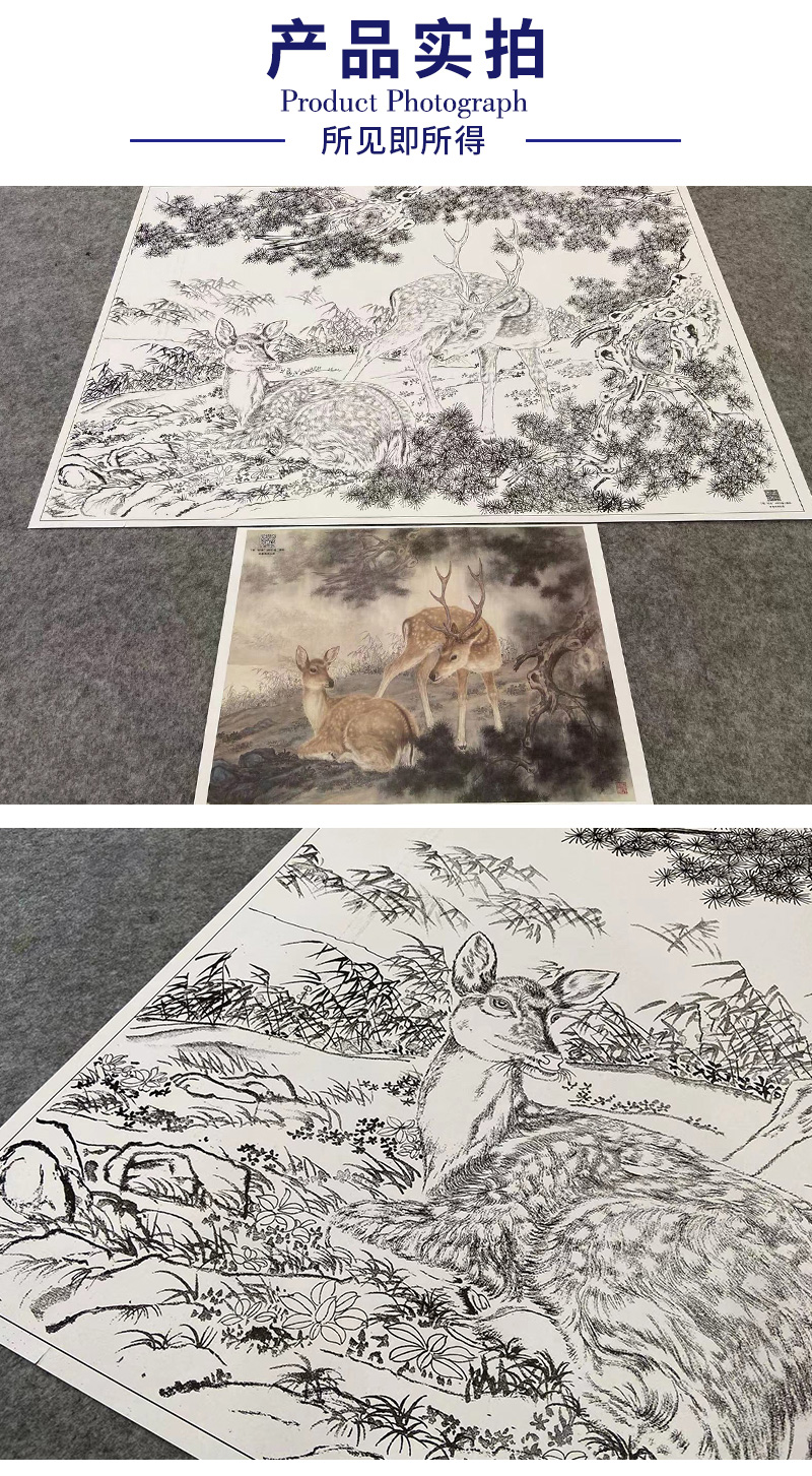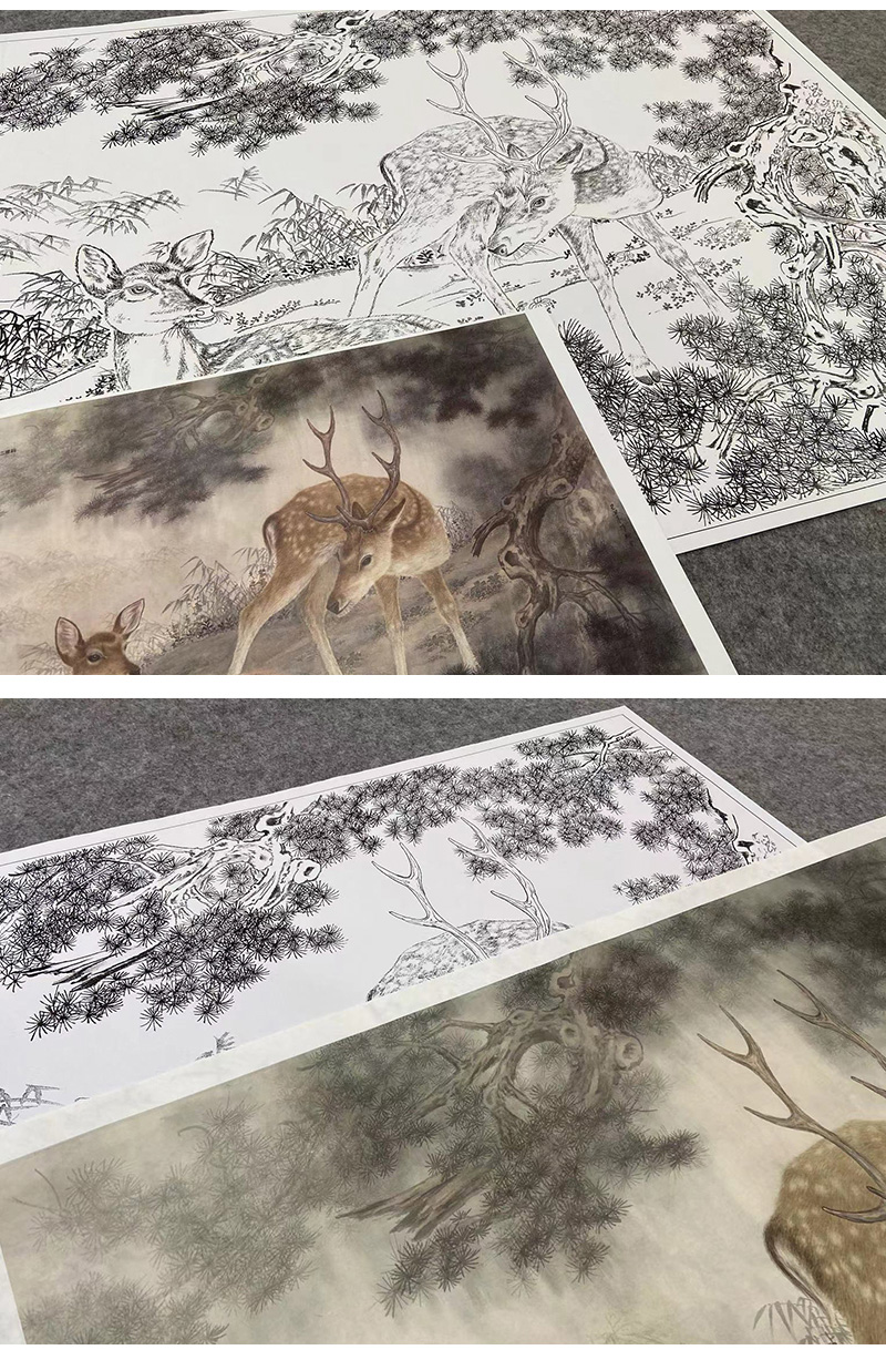 【大彩图】高文刚工笔画白描底稿小品《双鹿》临摹勾线高清打印稿A643