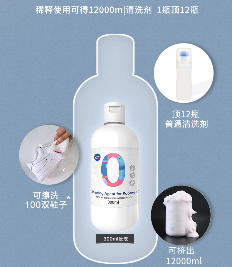 【Jiffine小白鞋清洗剂】温和如水中性洗护不伤鞋一瓶可当12瓶!送起泡瓶+毛巾+软毛刷