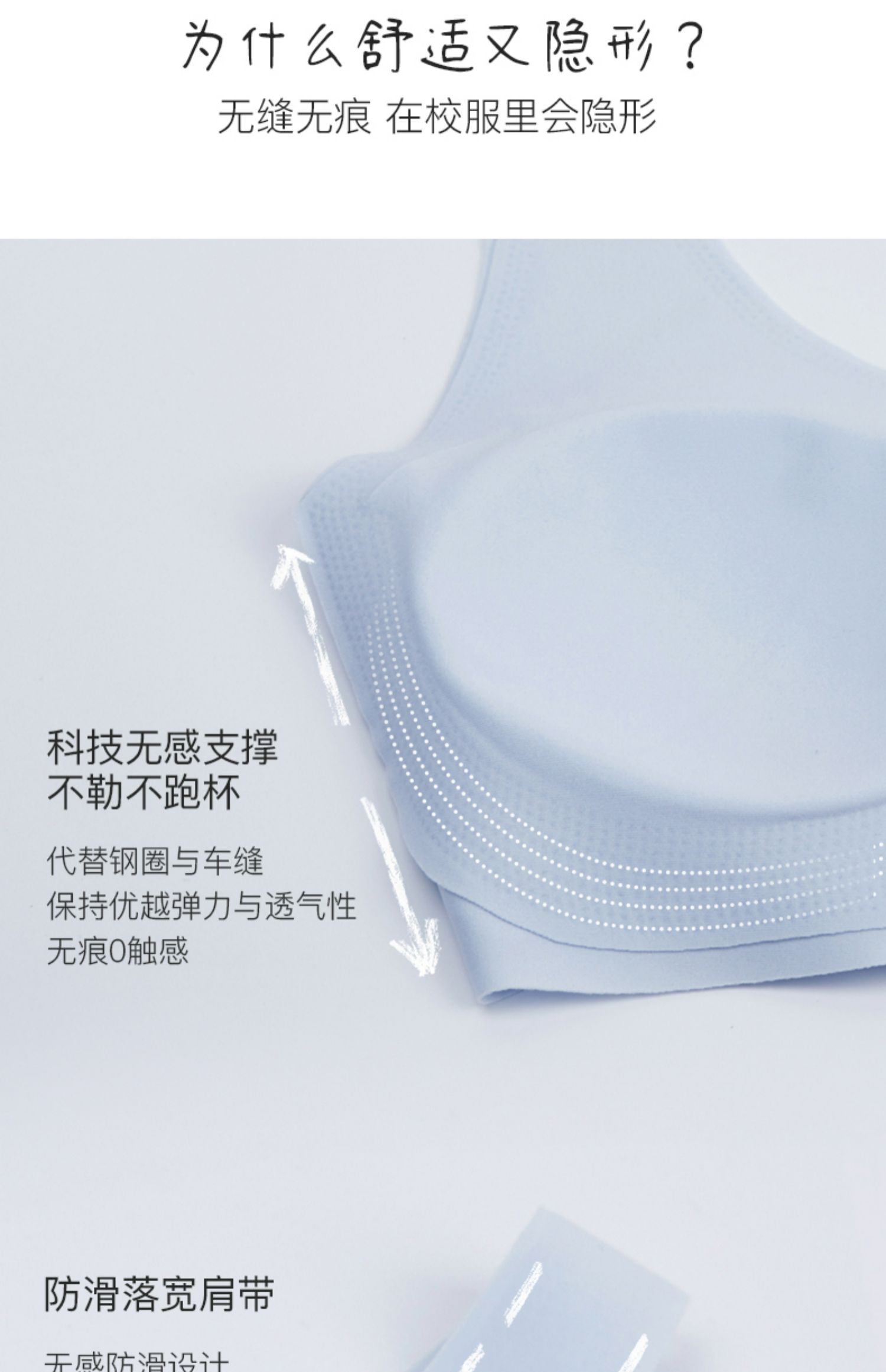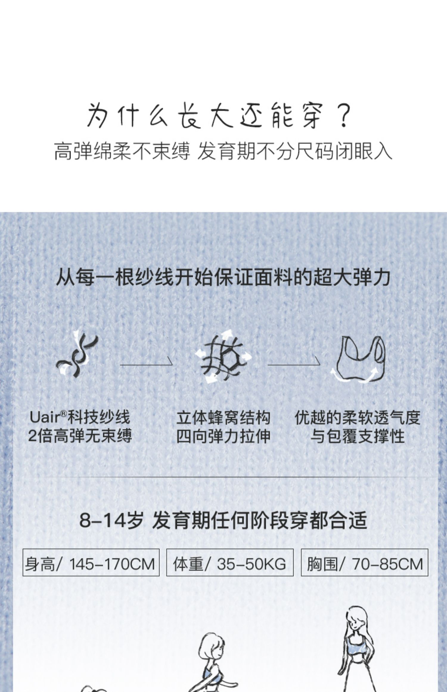 likeuu少女内衣学生初中女童发育文胸基础款小背心日常运动3件装