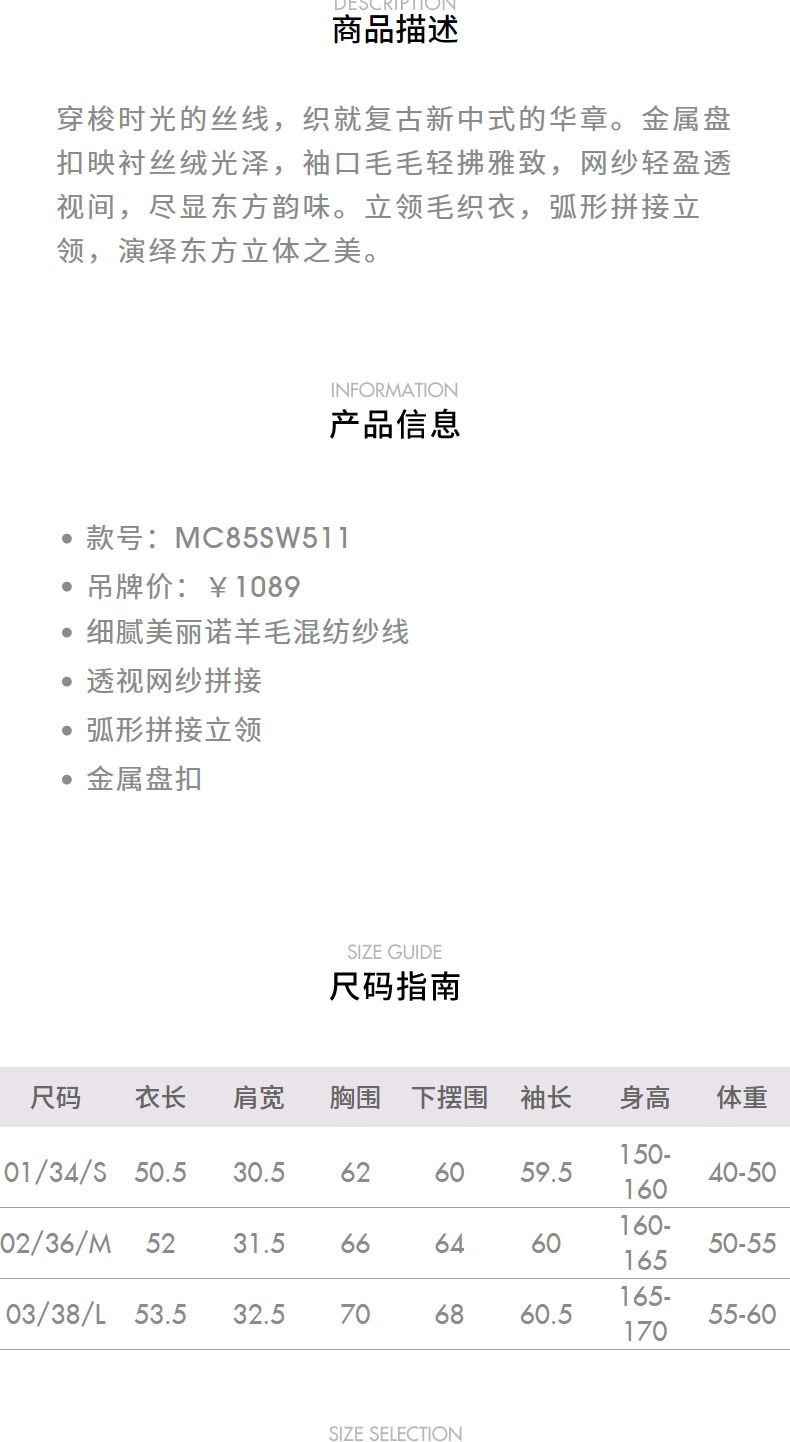 【宫廷巴洛克-商场同款】MAXRIENY复古新中式套头针织衫修身显瘦(货号:MC85SW511)