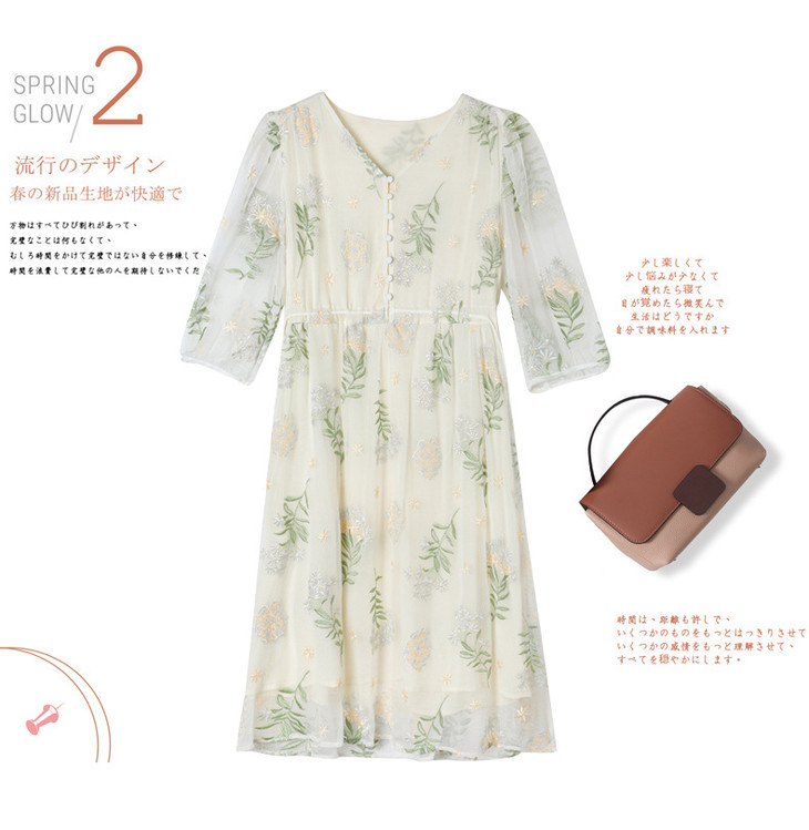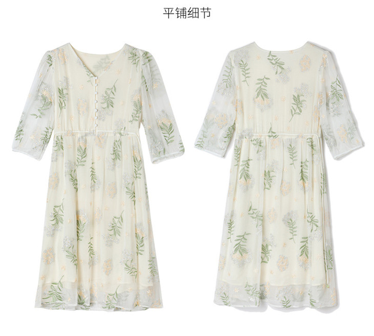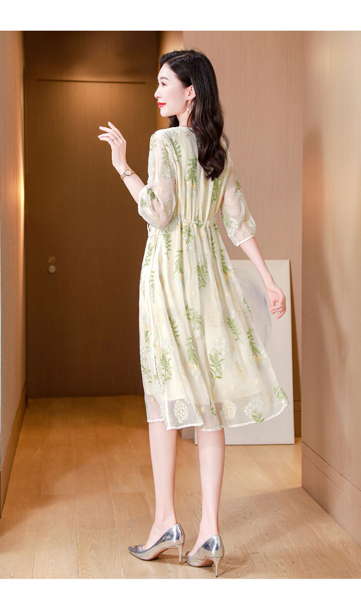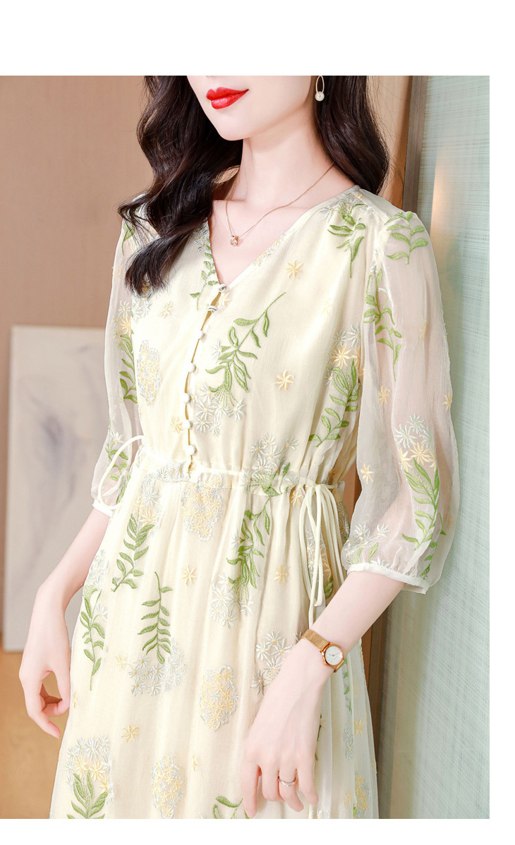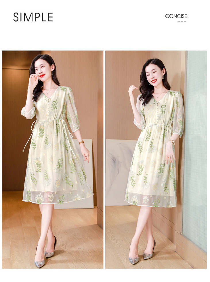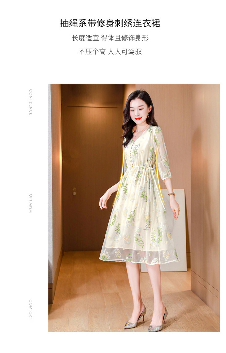 ASE2024夏季V领五分袖气质优雅真丝连衣裙
