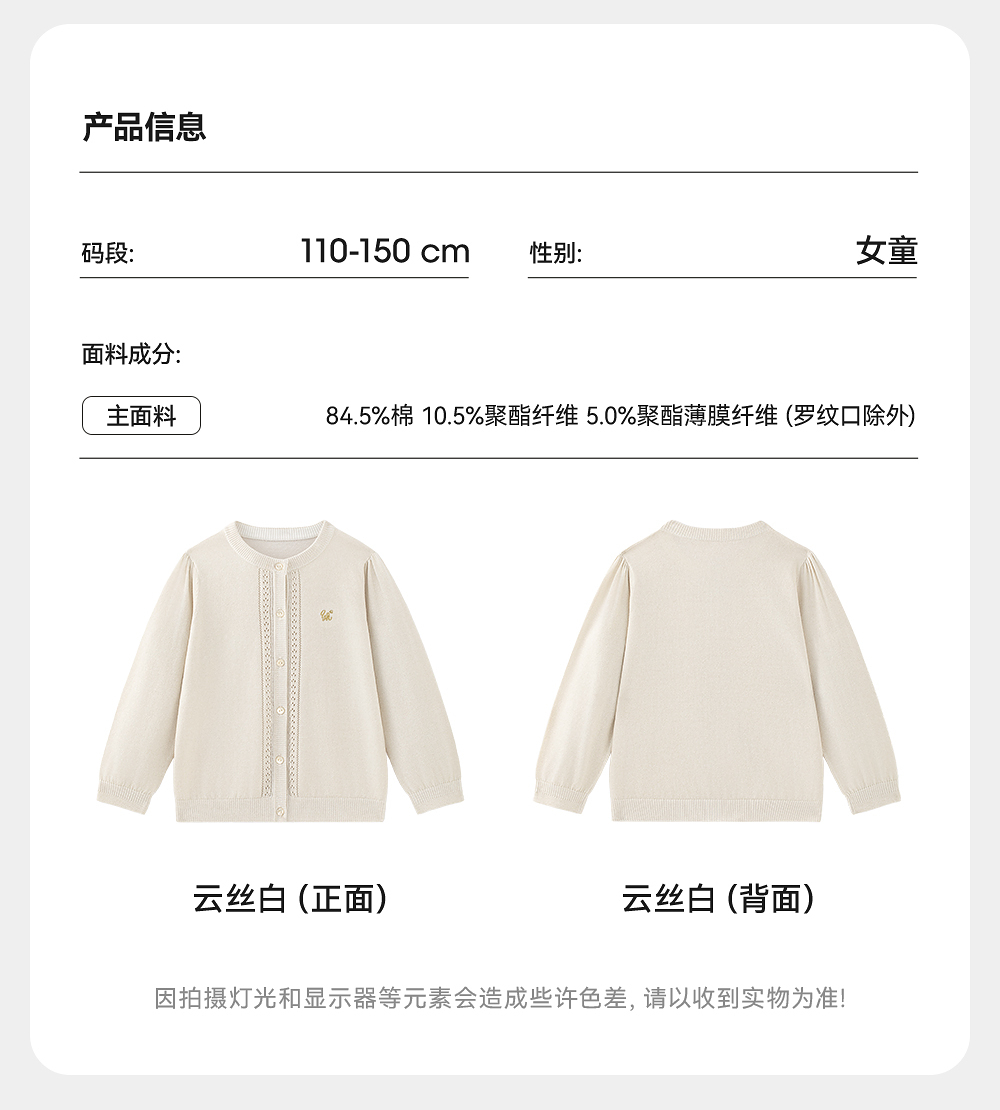【商场同款】英氏儿童毛衣春夏长袖女童开衫外套2025新款毛织外套