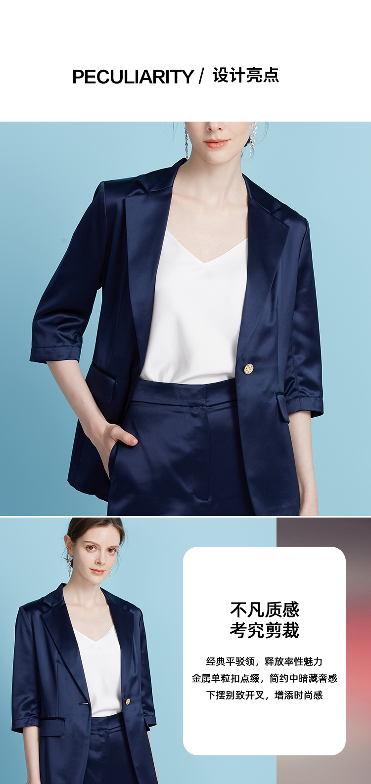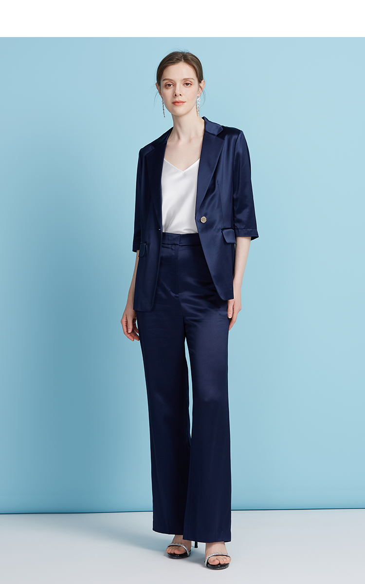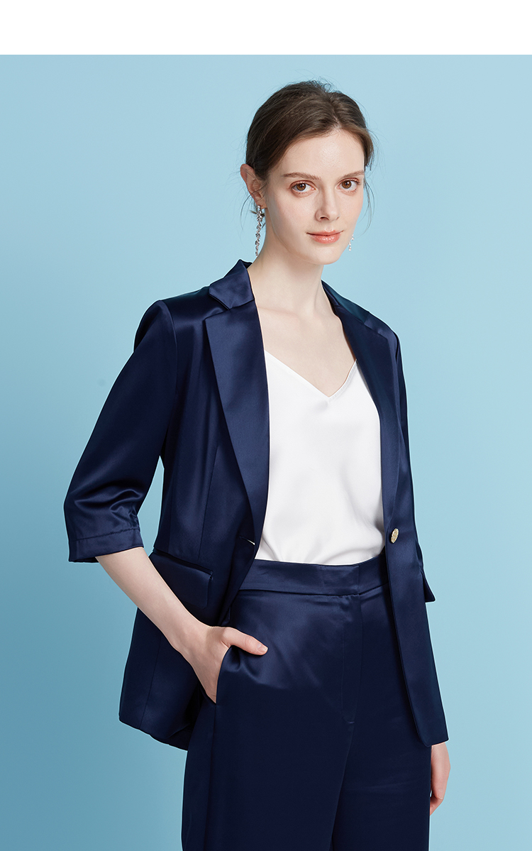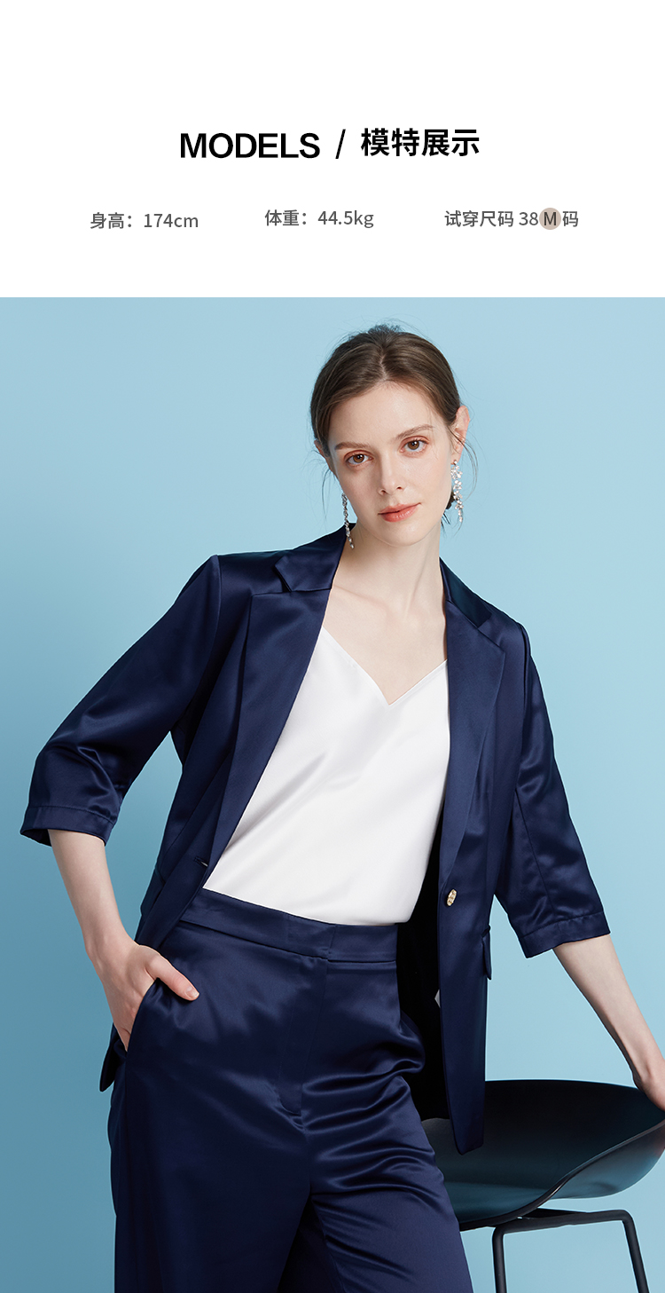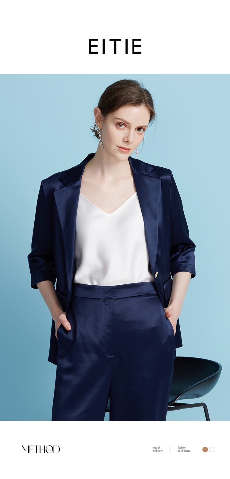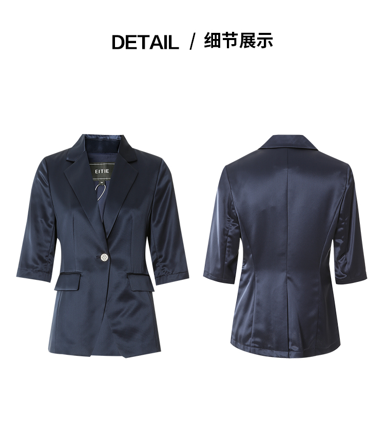 EITIE爱特爱夏季新款通勤纯色五分袖西装外套女7803501