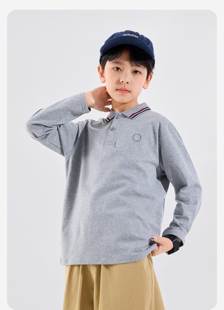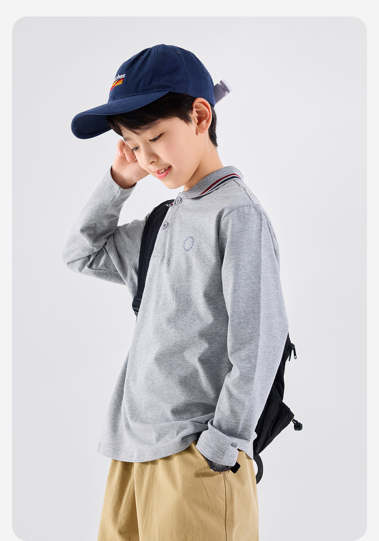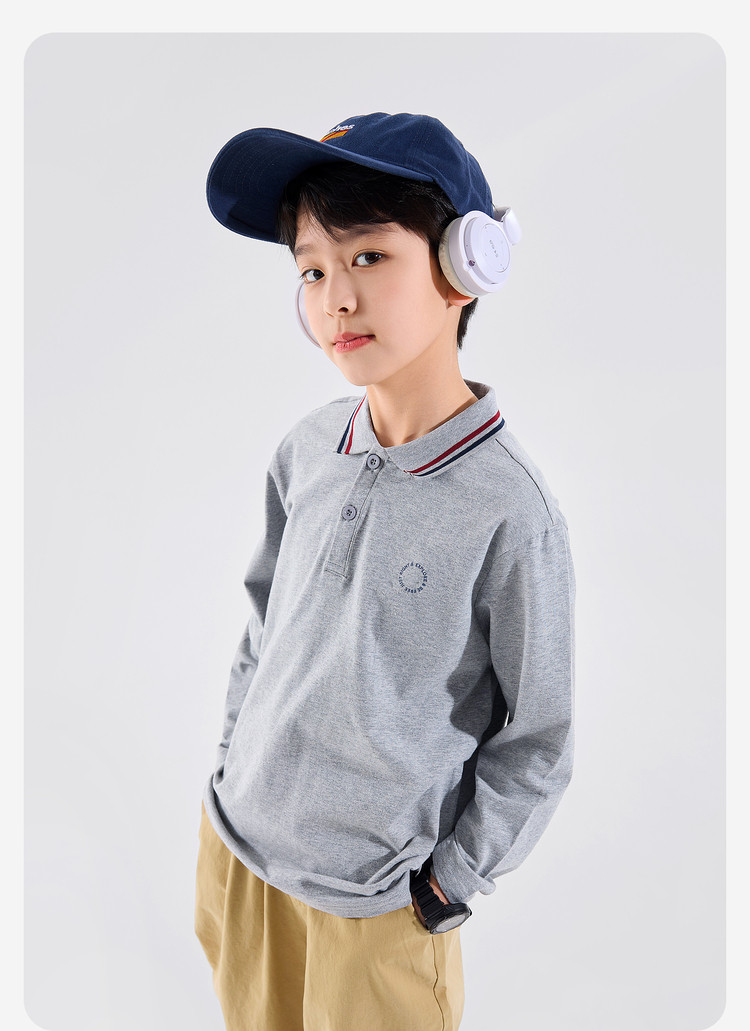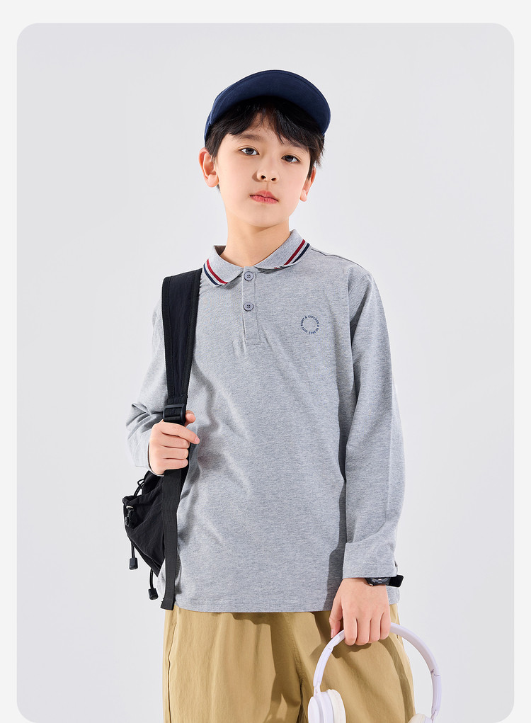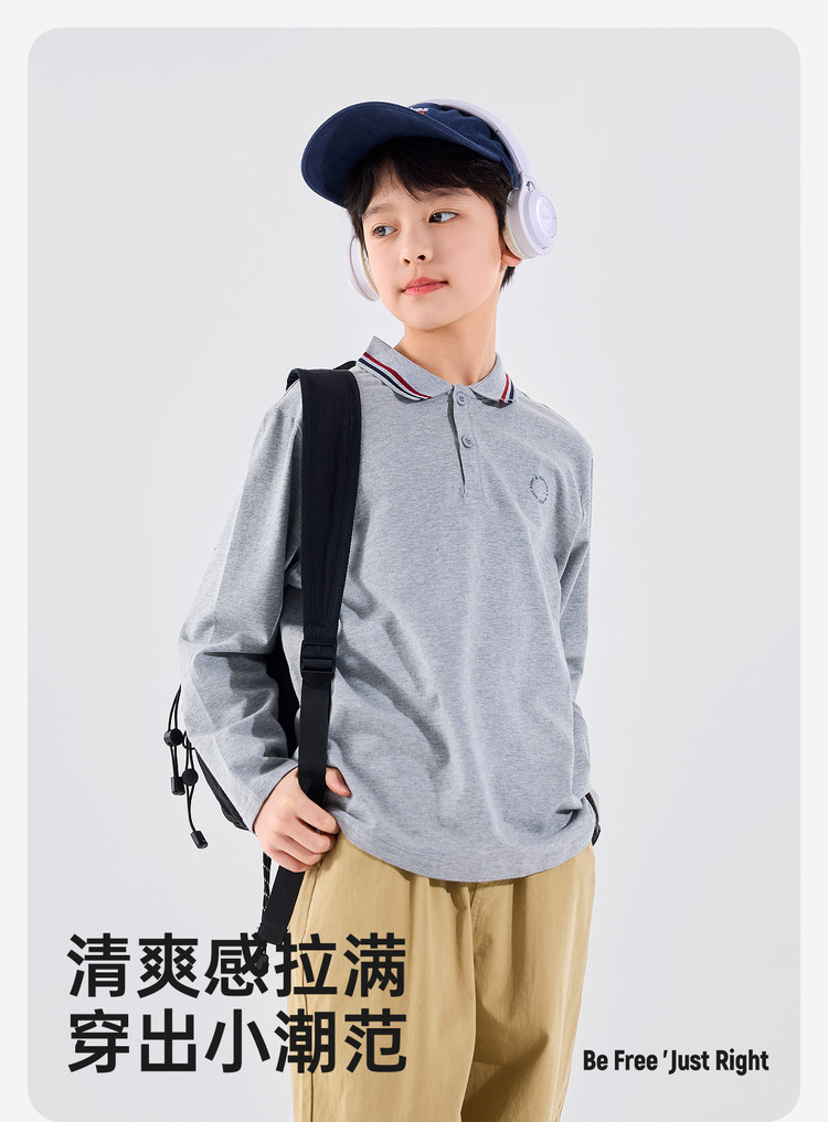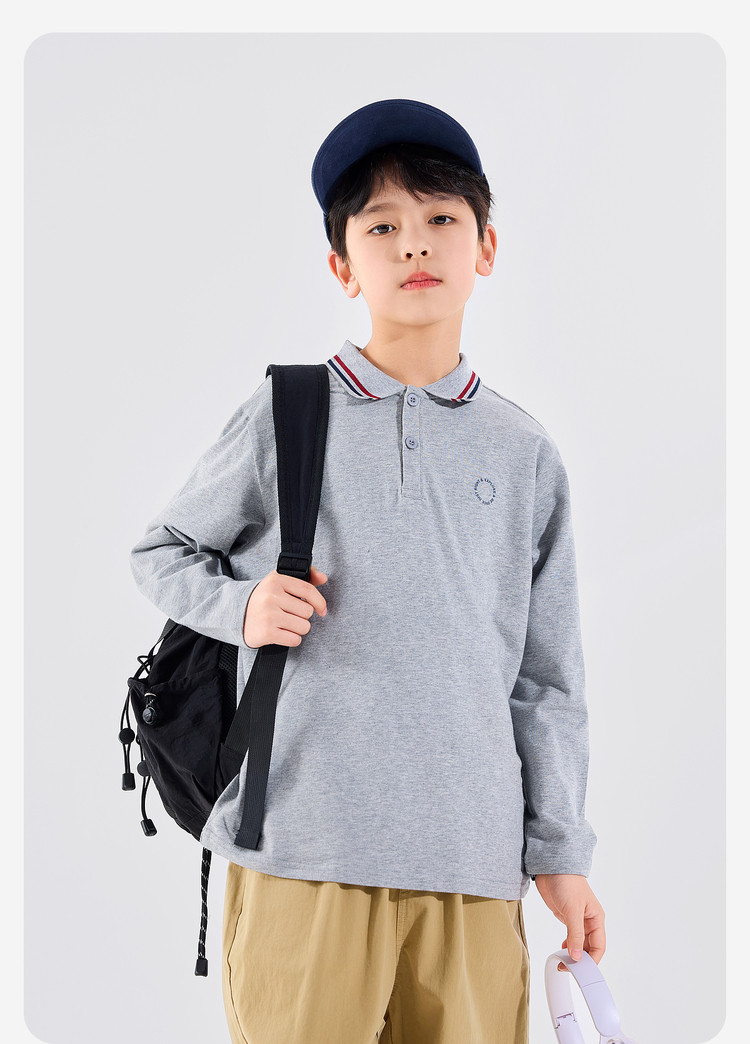 【不易变形】Bluem男童T恤长袖polo衫儿童上衣春秋衣服2026新款男孩纯色透气Z6ATX123