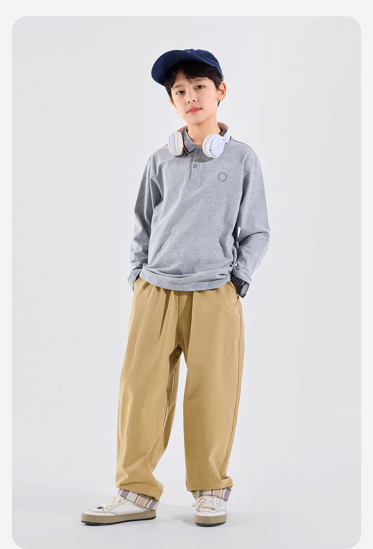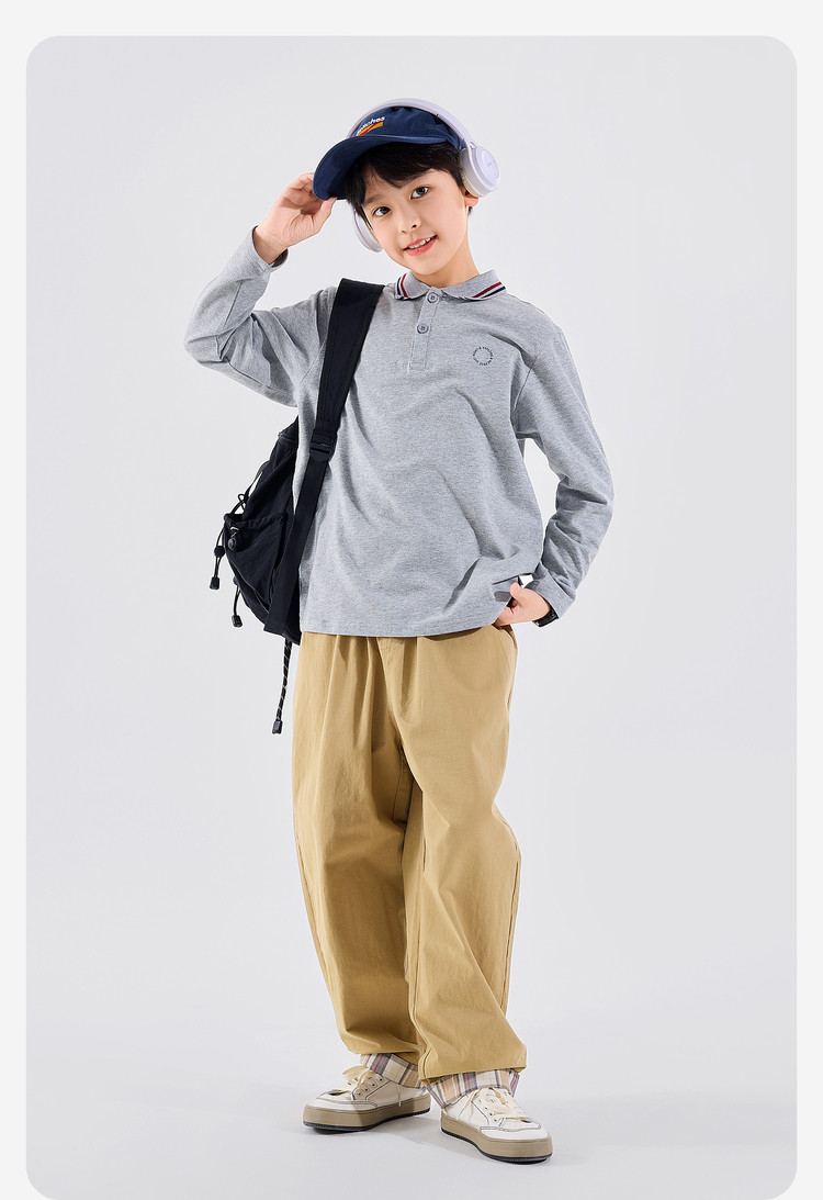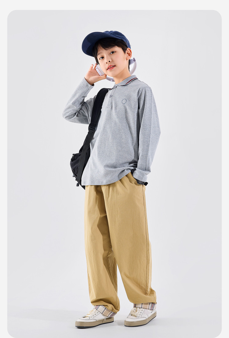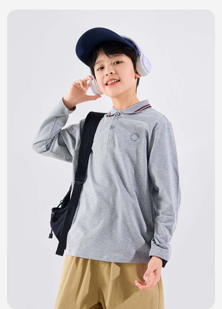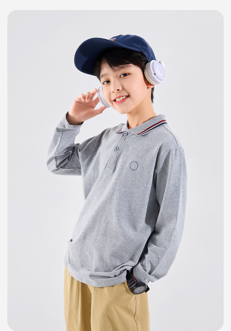 【不易变形】Bluem男童T恤长袖polo衫儿童上衣春秋衣服2026新款男孩纯色透气Z6ATX123