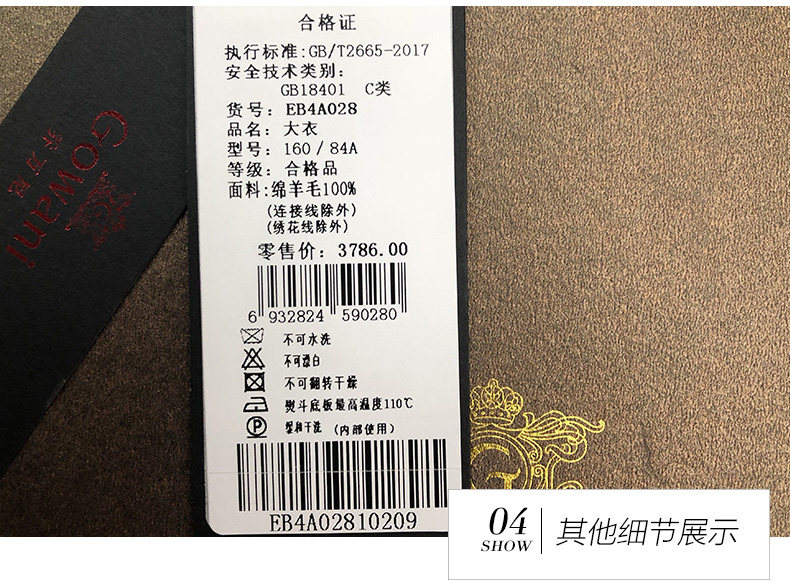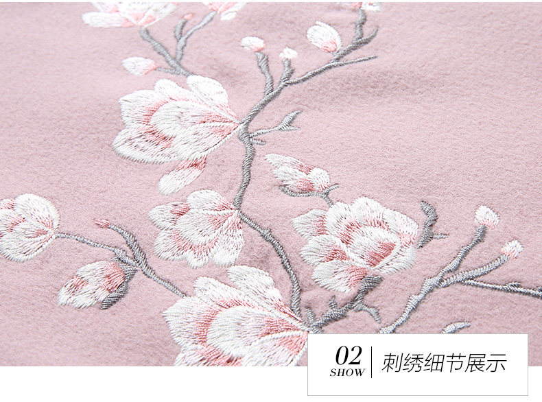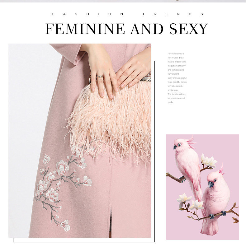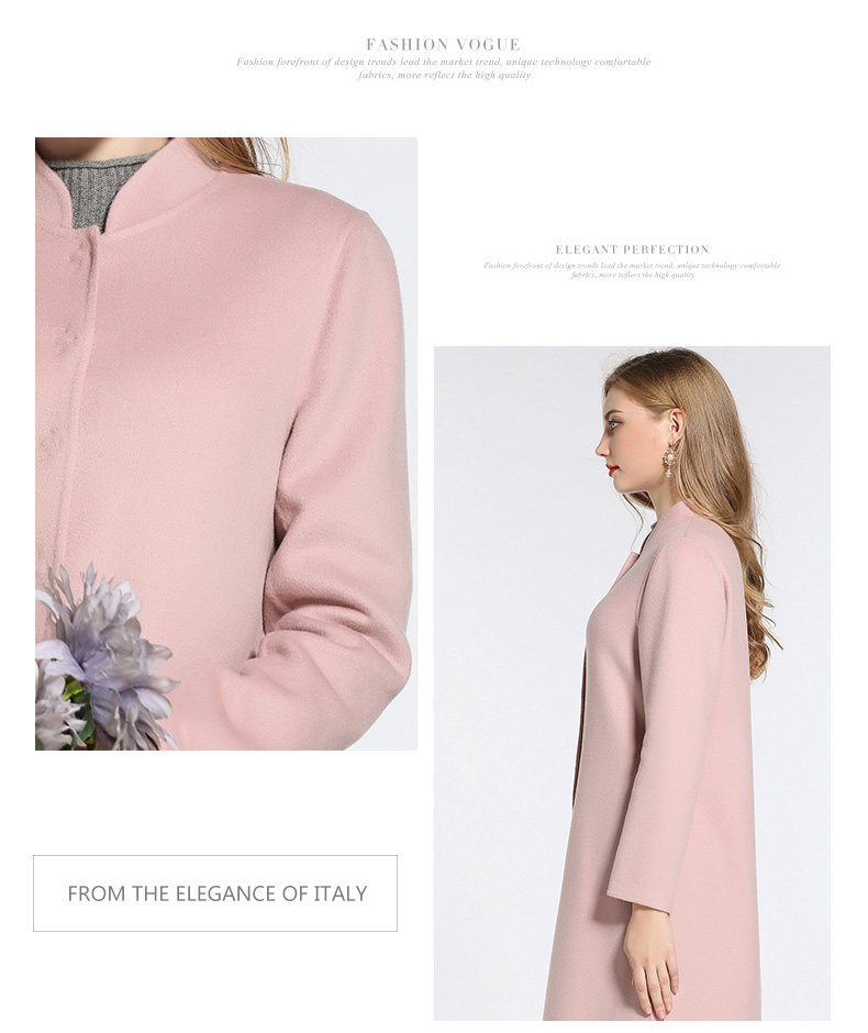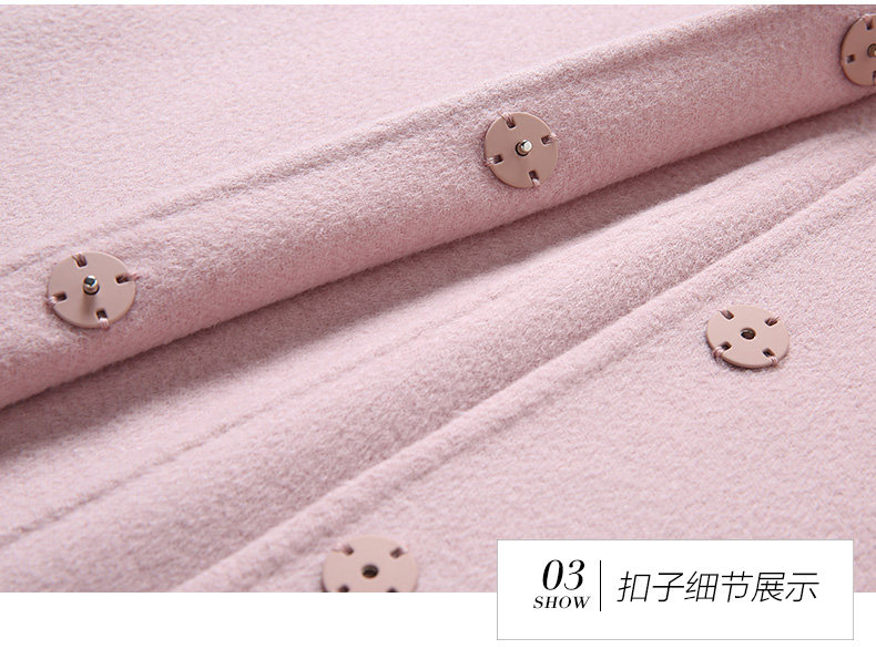【100%绵羊毛】乔万尼羊毛双面呢大衣女流行外套粉色绣花修身过膝长款呢子冬EB4A028