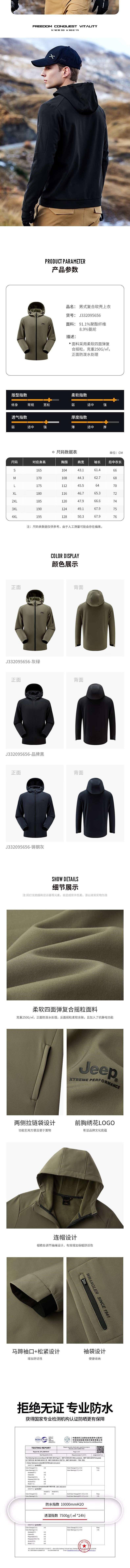 JEEP吉普 男复合软壳上衣 J332095656
