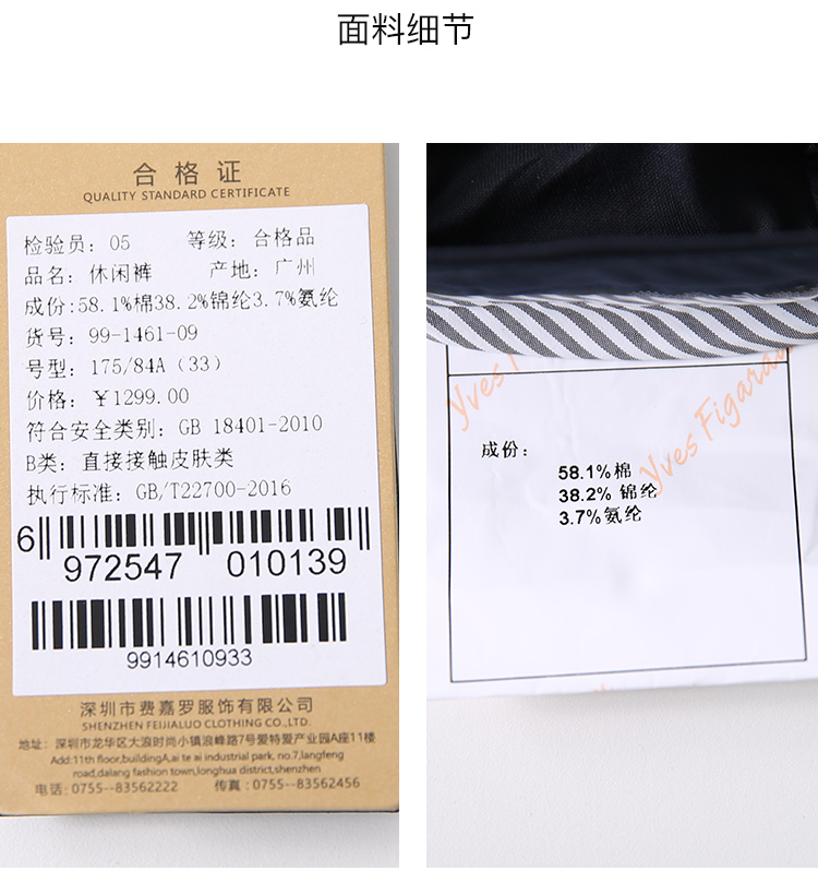 YvesFigarau伊夫·费嘉罗休闲裤991461