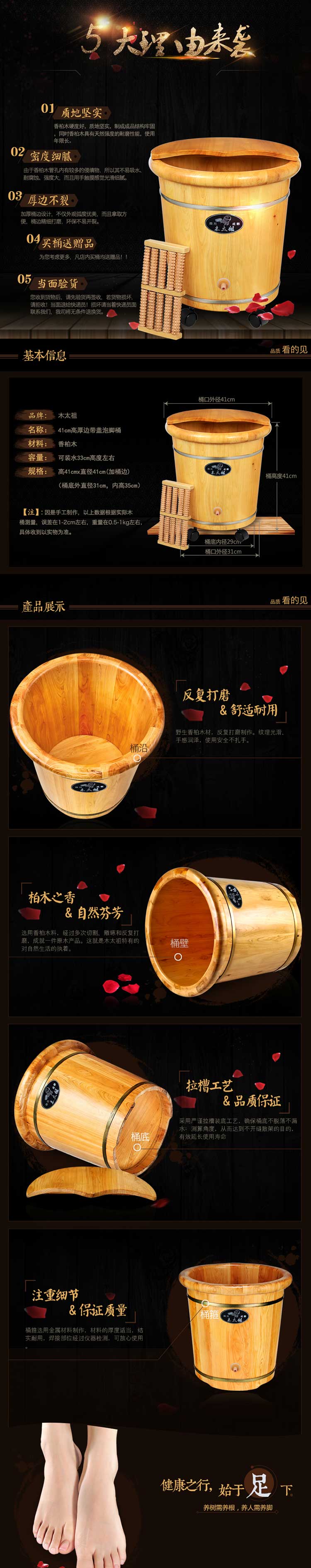 木太祖木桶 泡脚桶 足浴木盆 41cm香柏木厚边带盖洗脚木桶系列
