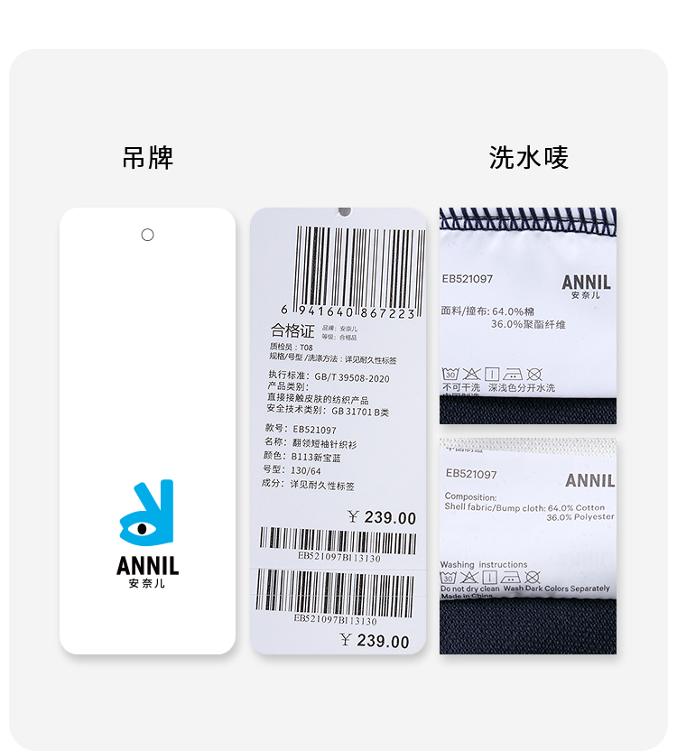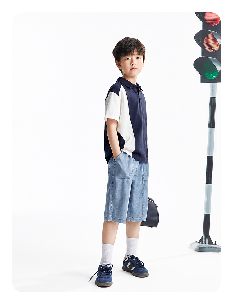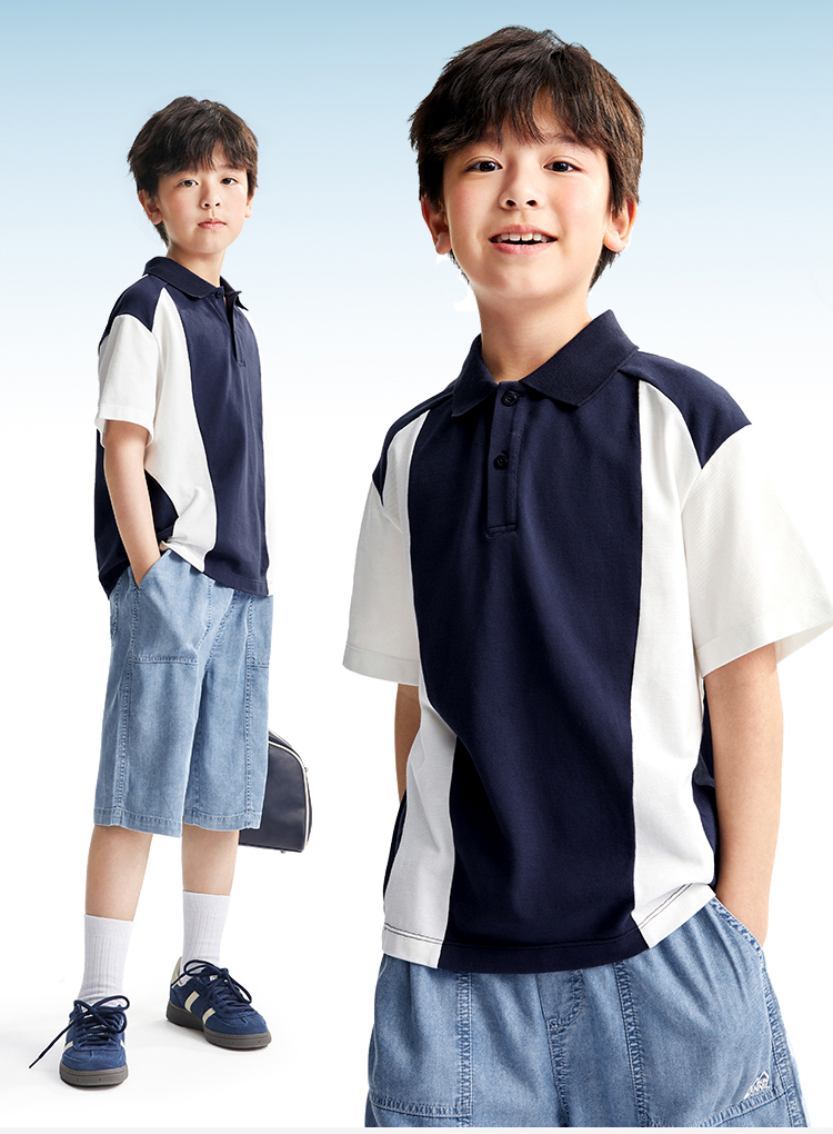 男童翻领短袖针织衫夏季新款安奈儿童装EB521097