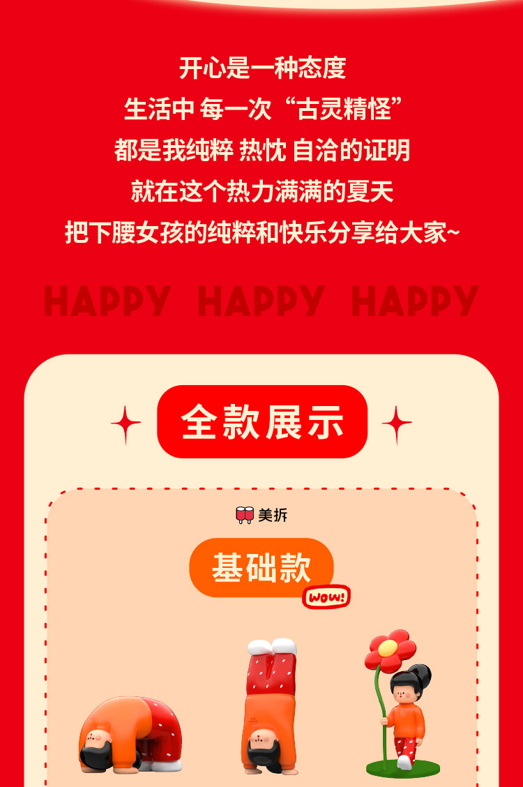 美拆 x 周日央 开心就好艺术家系列树脂盲盒下腰女孩【该商品不支持用券】