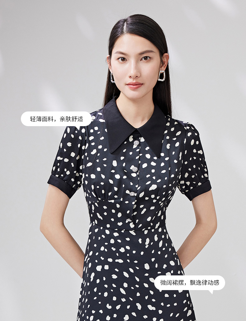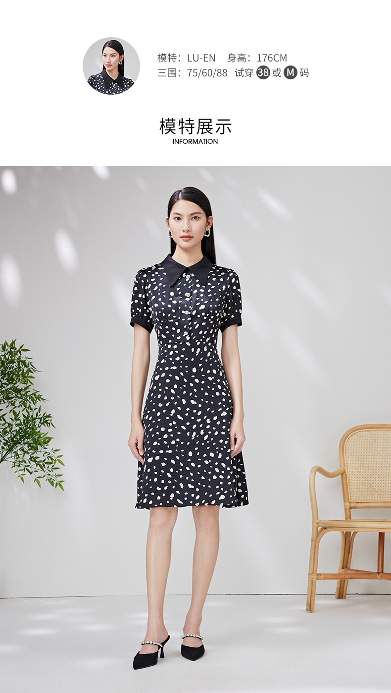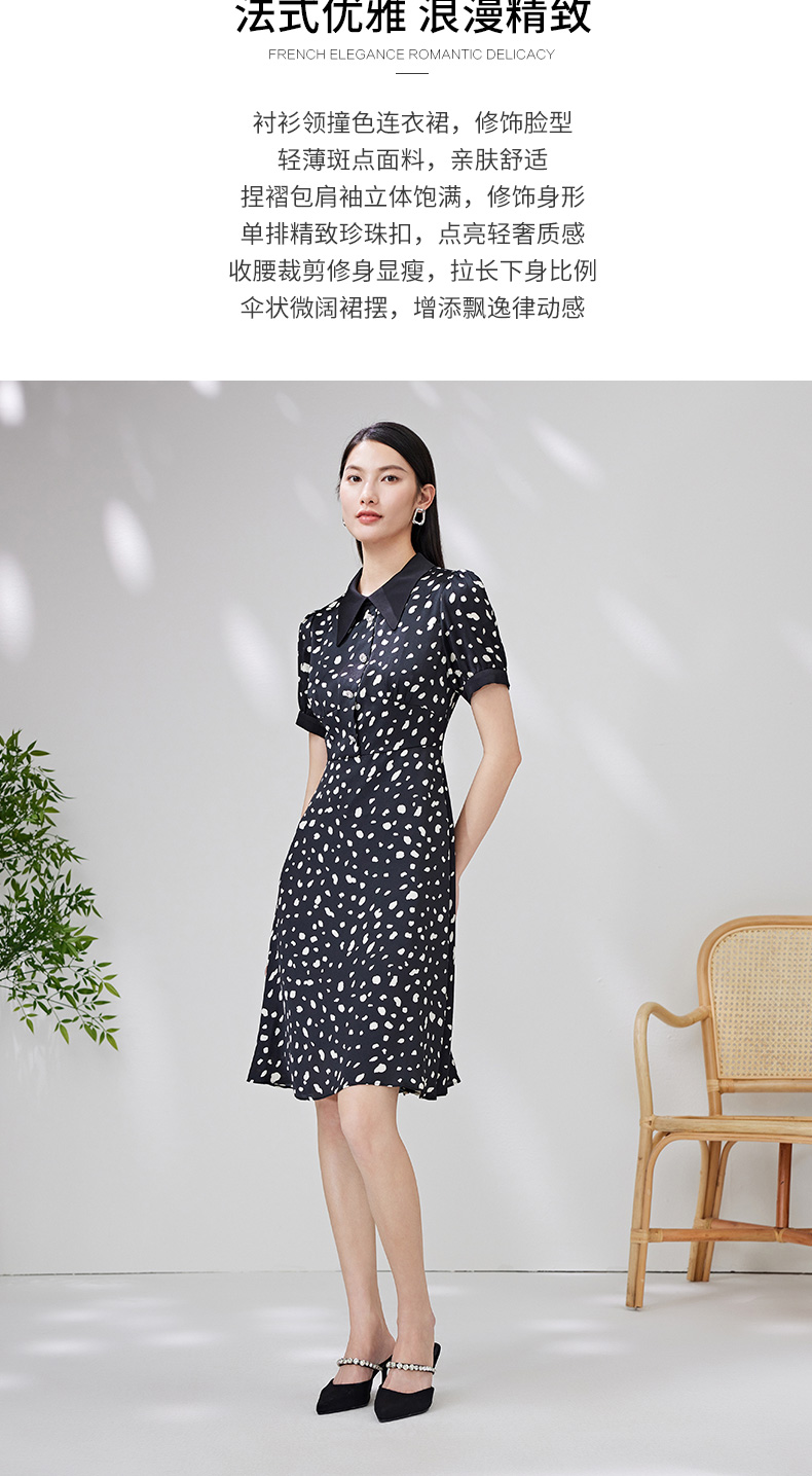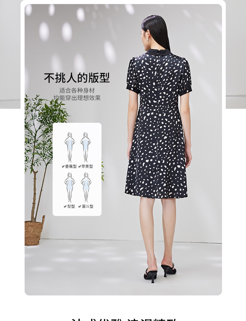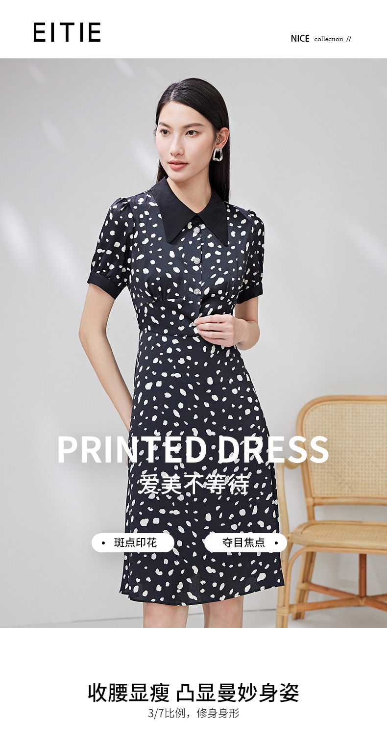 EITIE爱特爱夏季新款短袖立领收腰显瘦印花连衣裙7007748