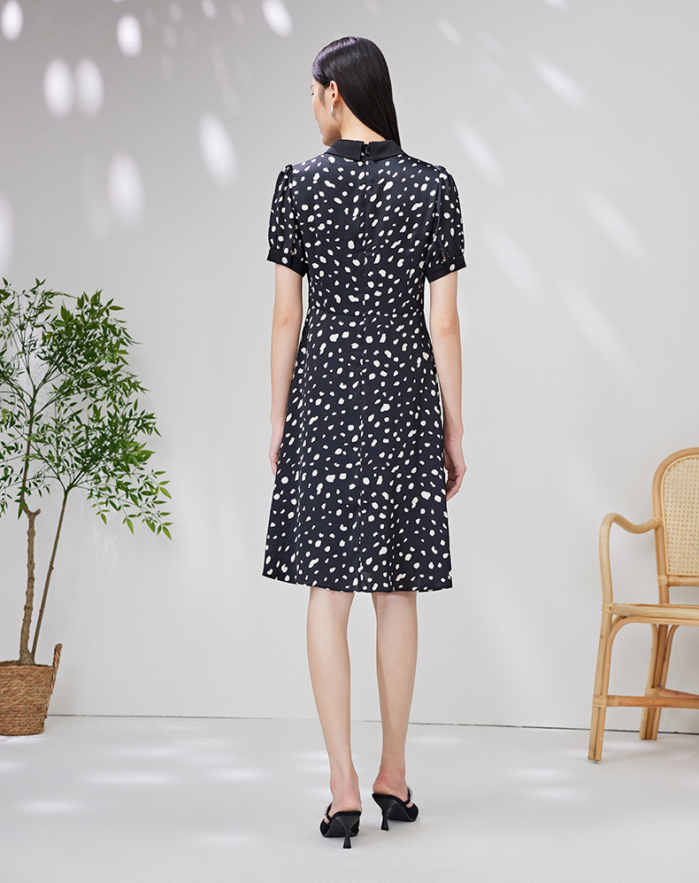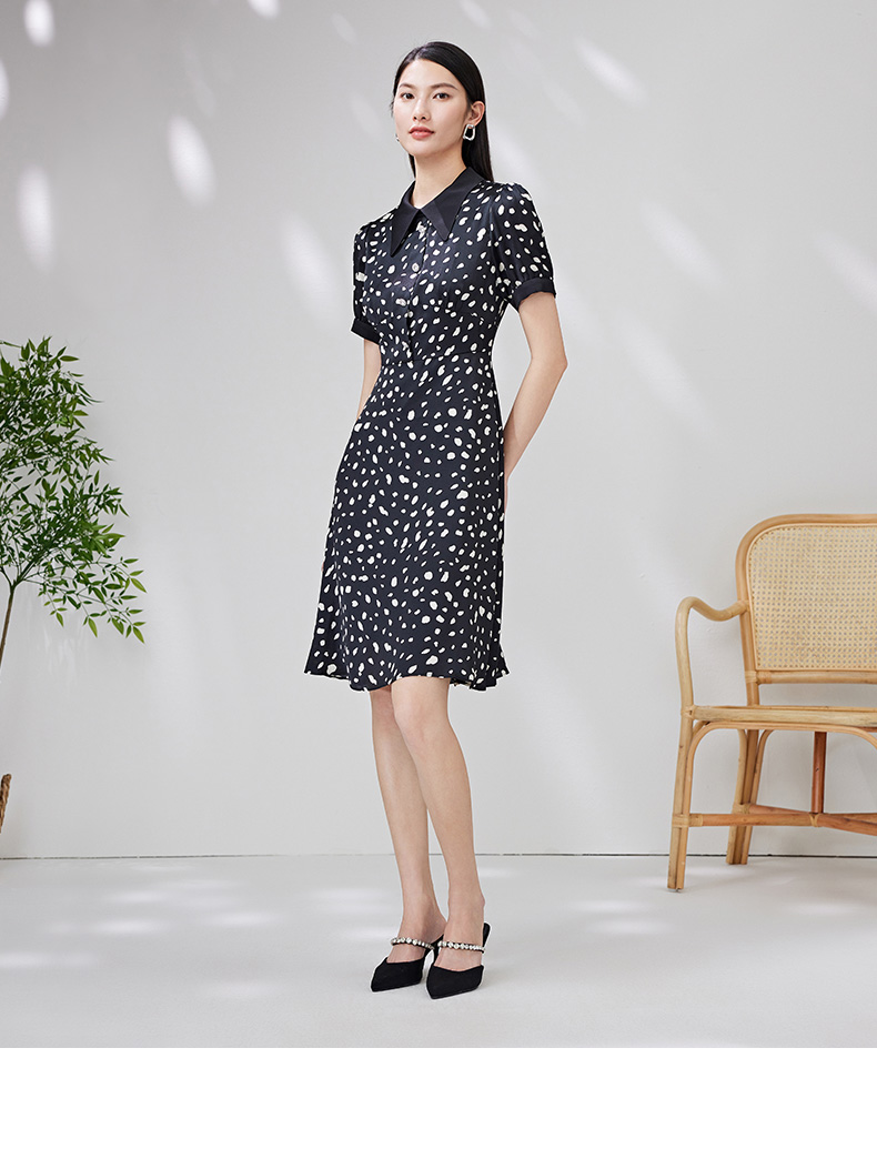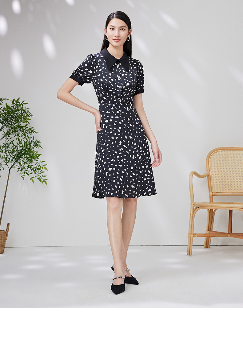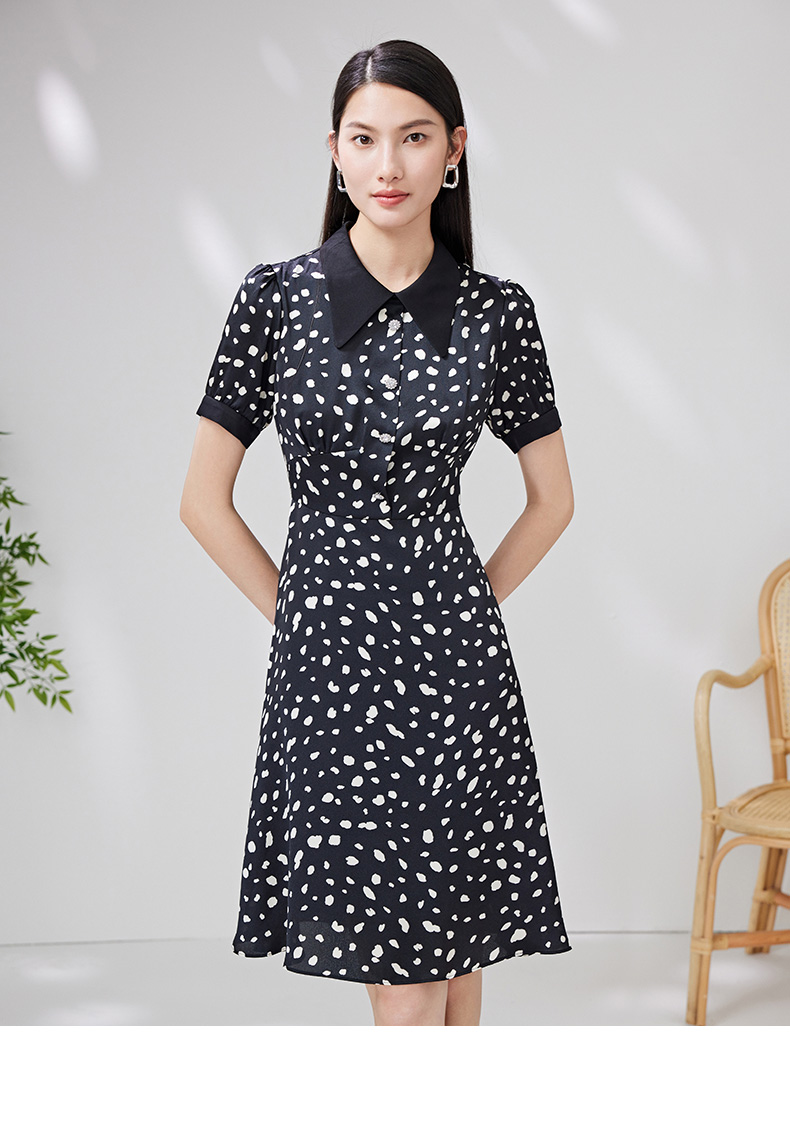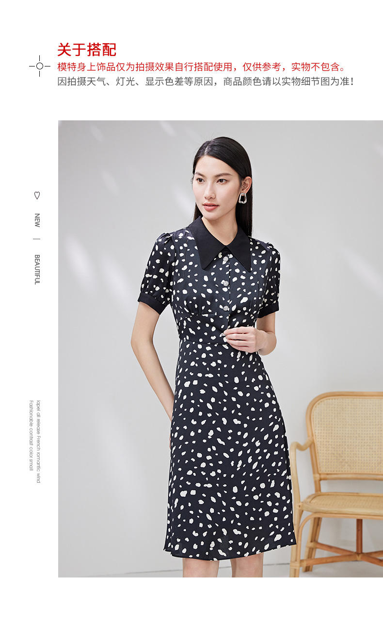 EITIE爱特爱夏季新款短袖立领收腰显瘦印花连衣裙7007748