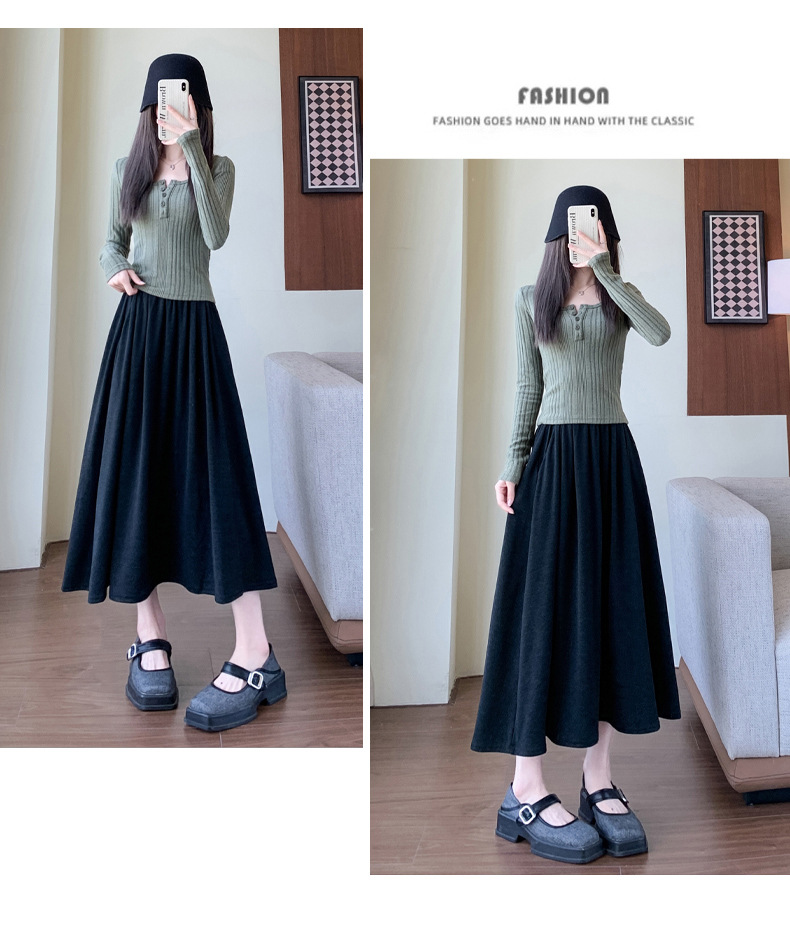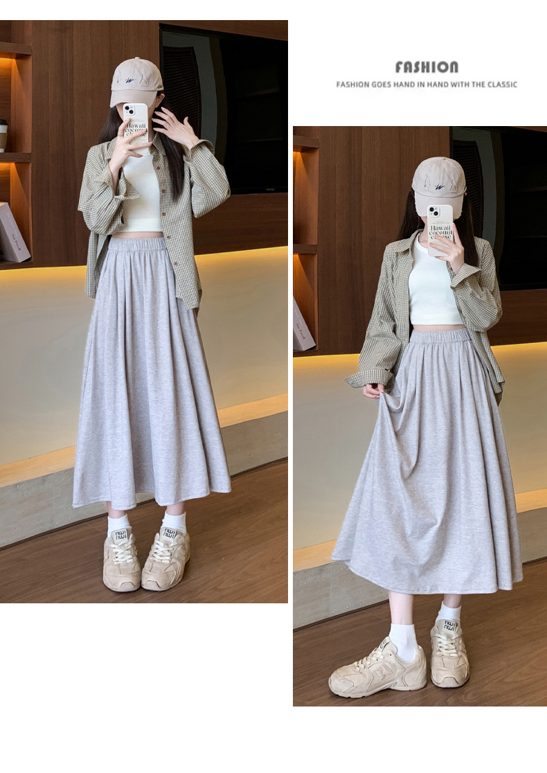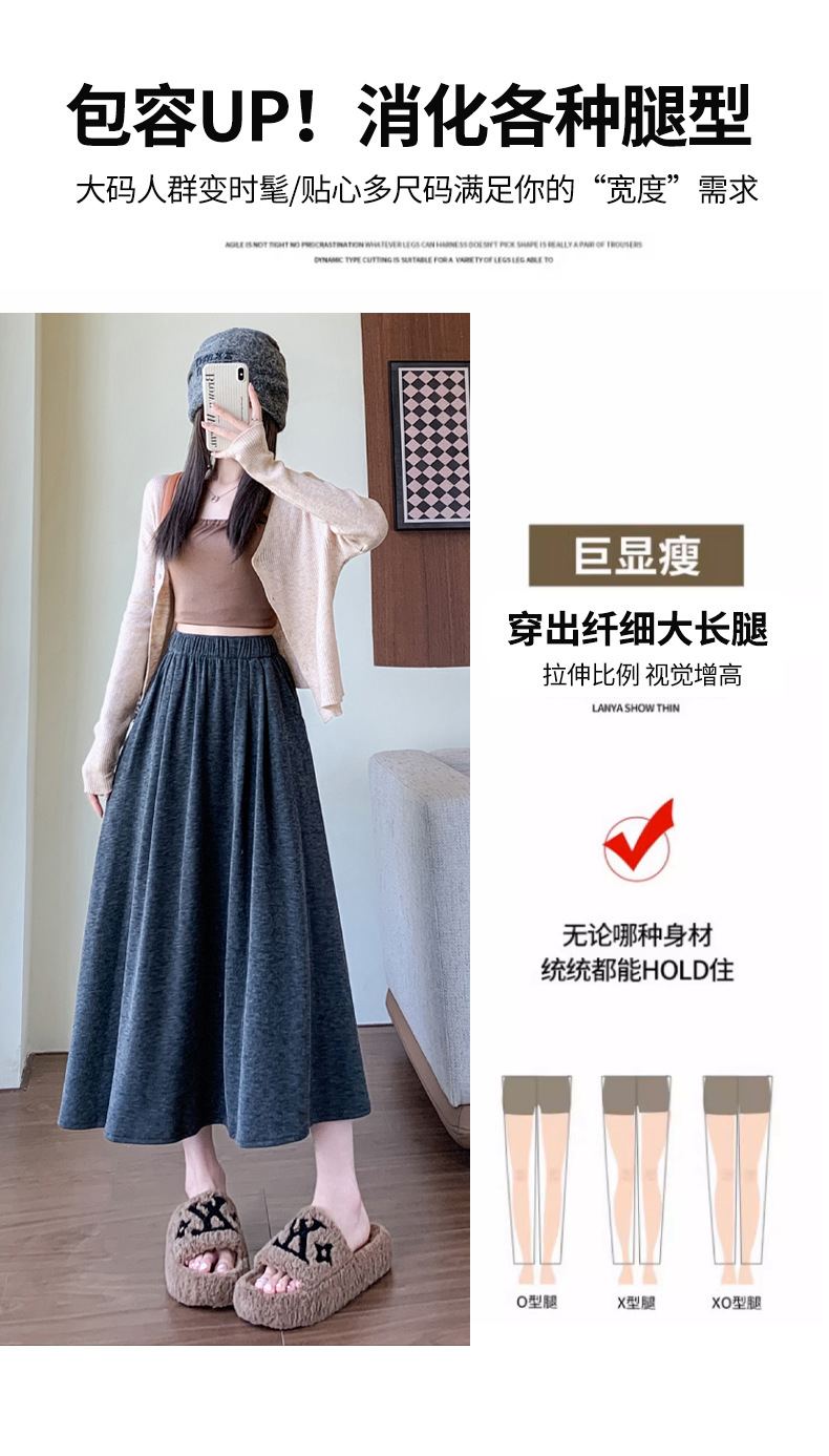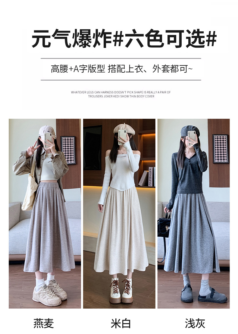 百媚生 糯米裙女春秋高腰显瘦伞裙a字半身裙H560