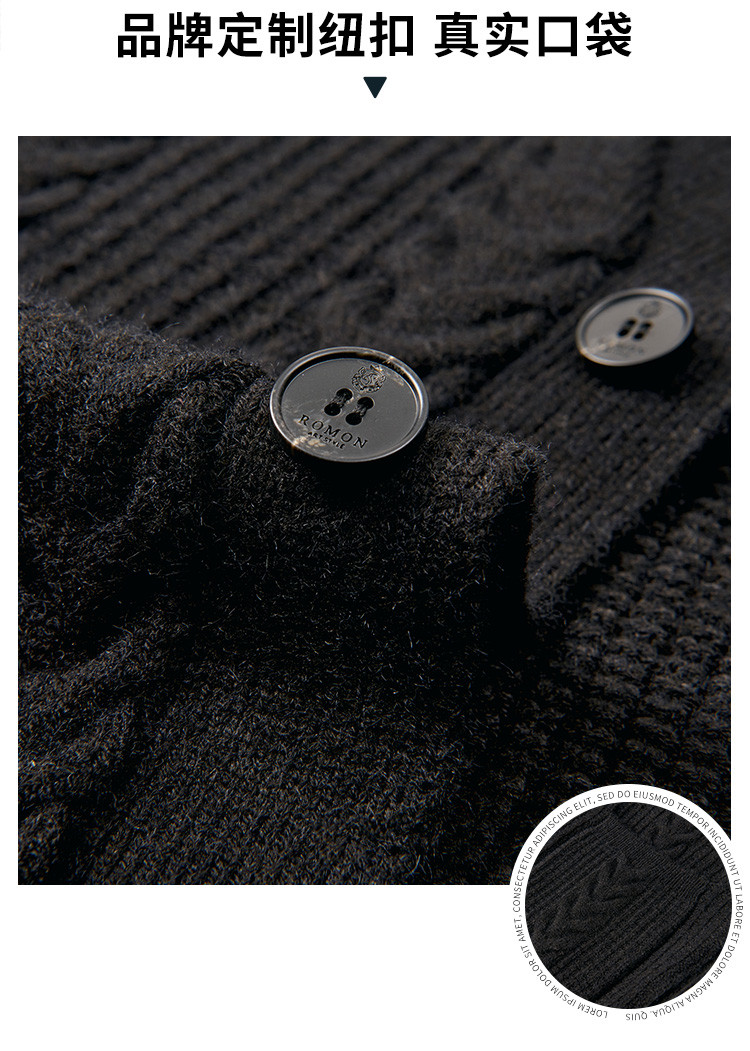27DKTD8303【复古麻花】罗蒙秋冬经典针织开衫男士外套男厚实保暖针织衫男士毛衣男