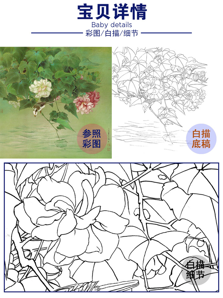 工笔花鸟白描底稿-曹小民-芙蓉花-斗方小品册页-A259