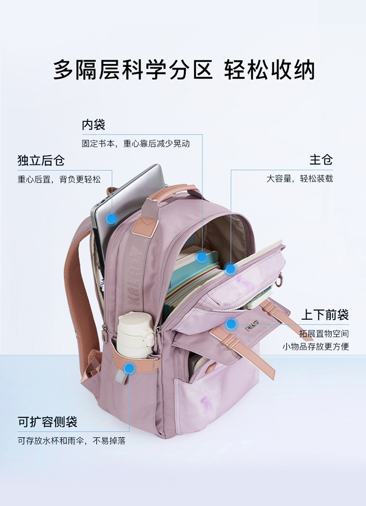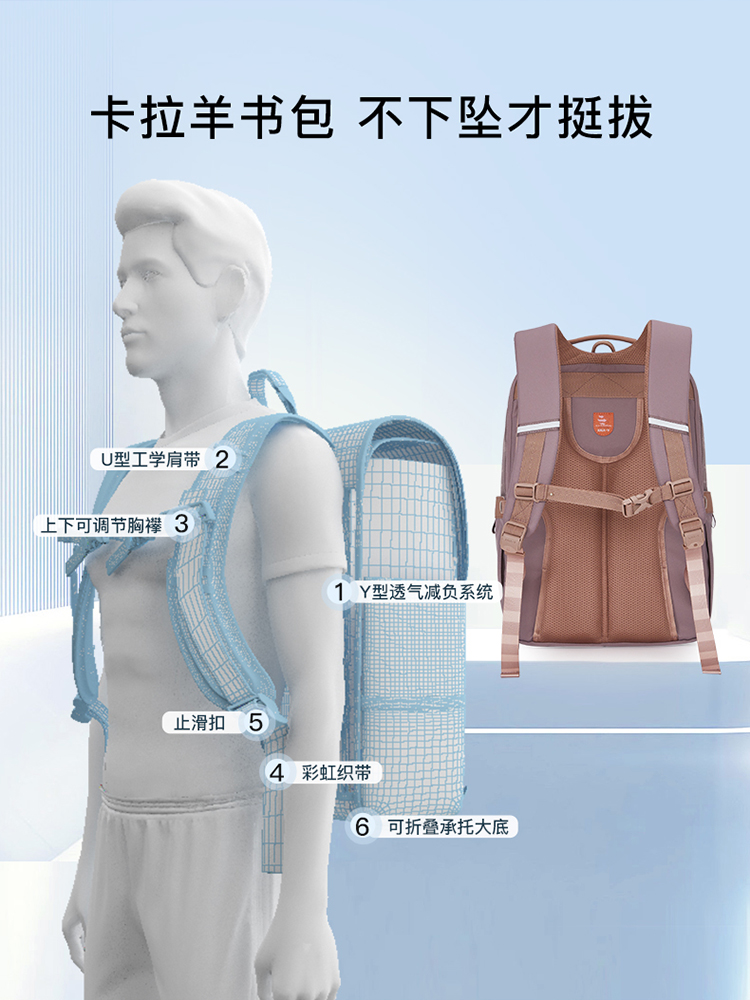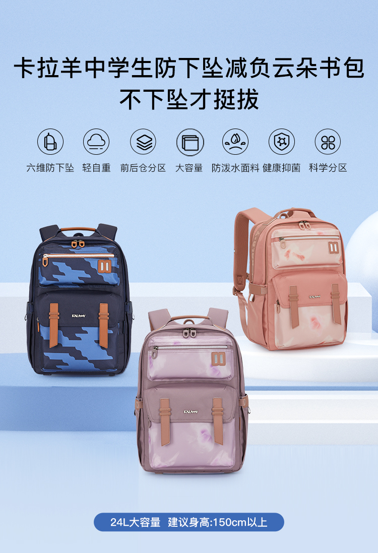 【云朵书包2.0PLUS版】卡拉羊中学生六维防下坠24L云朵书包 凌云 CX5052