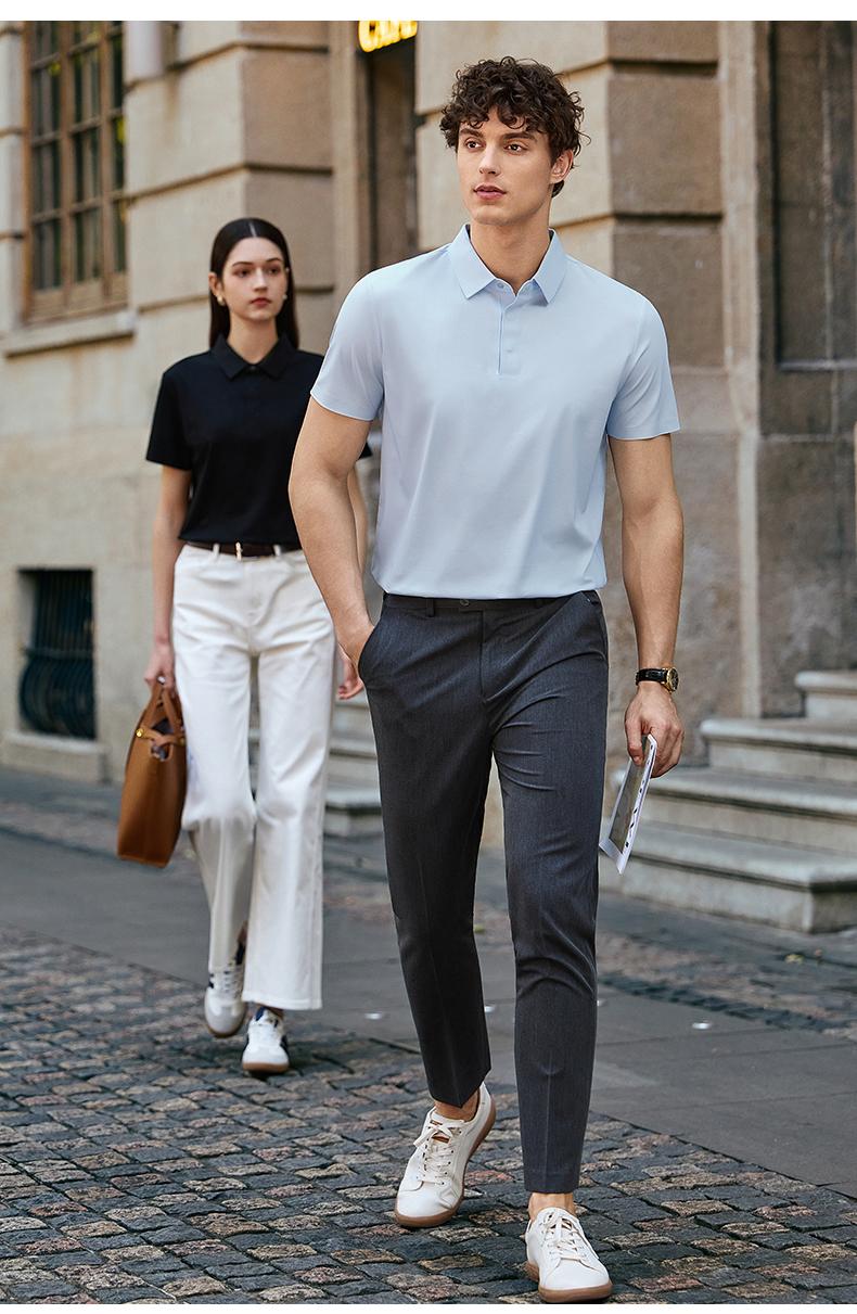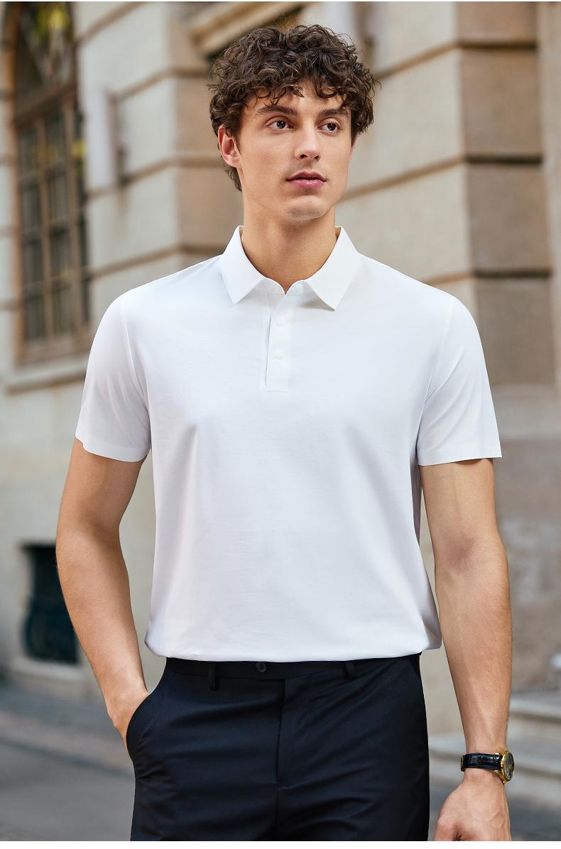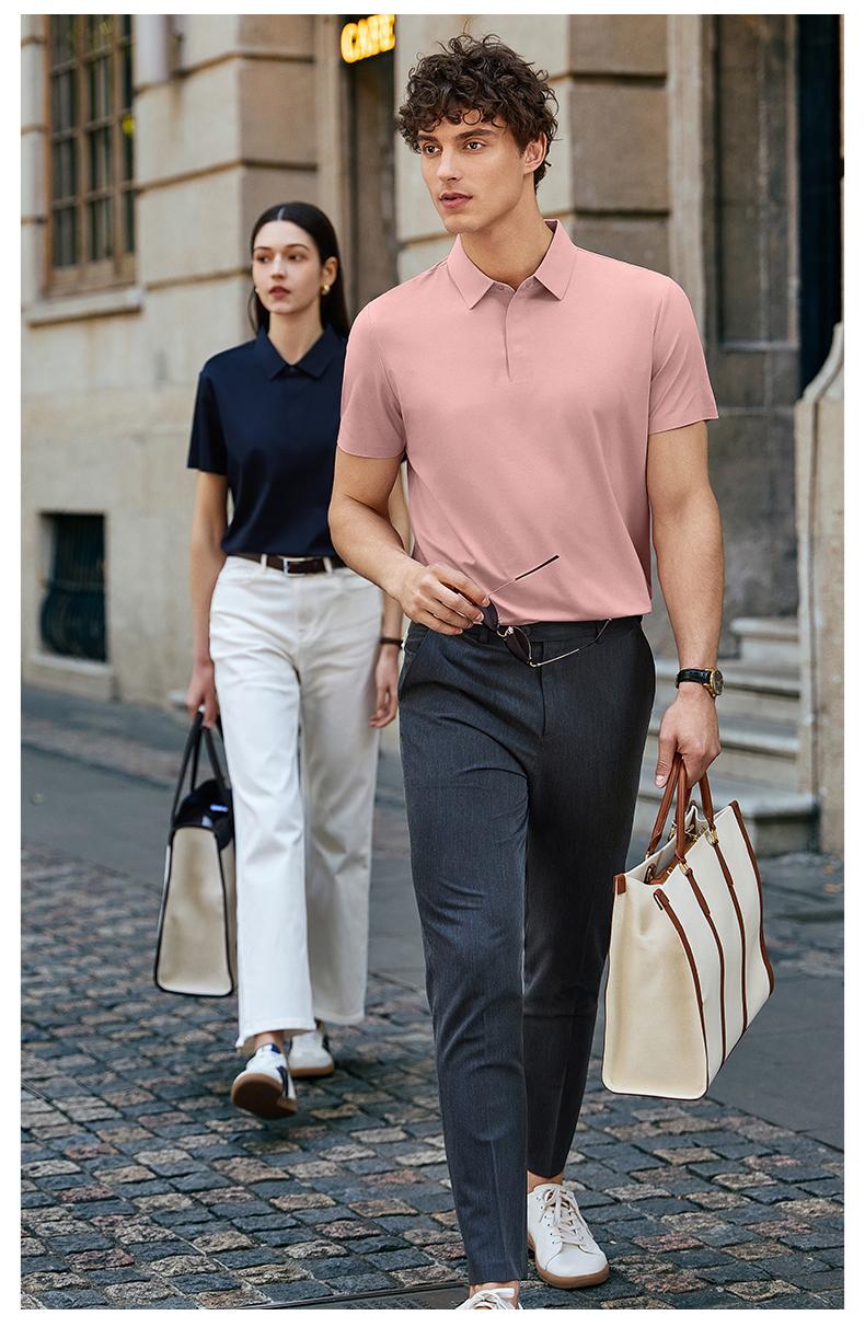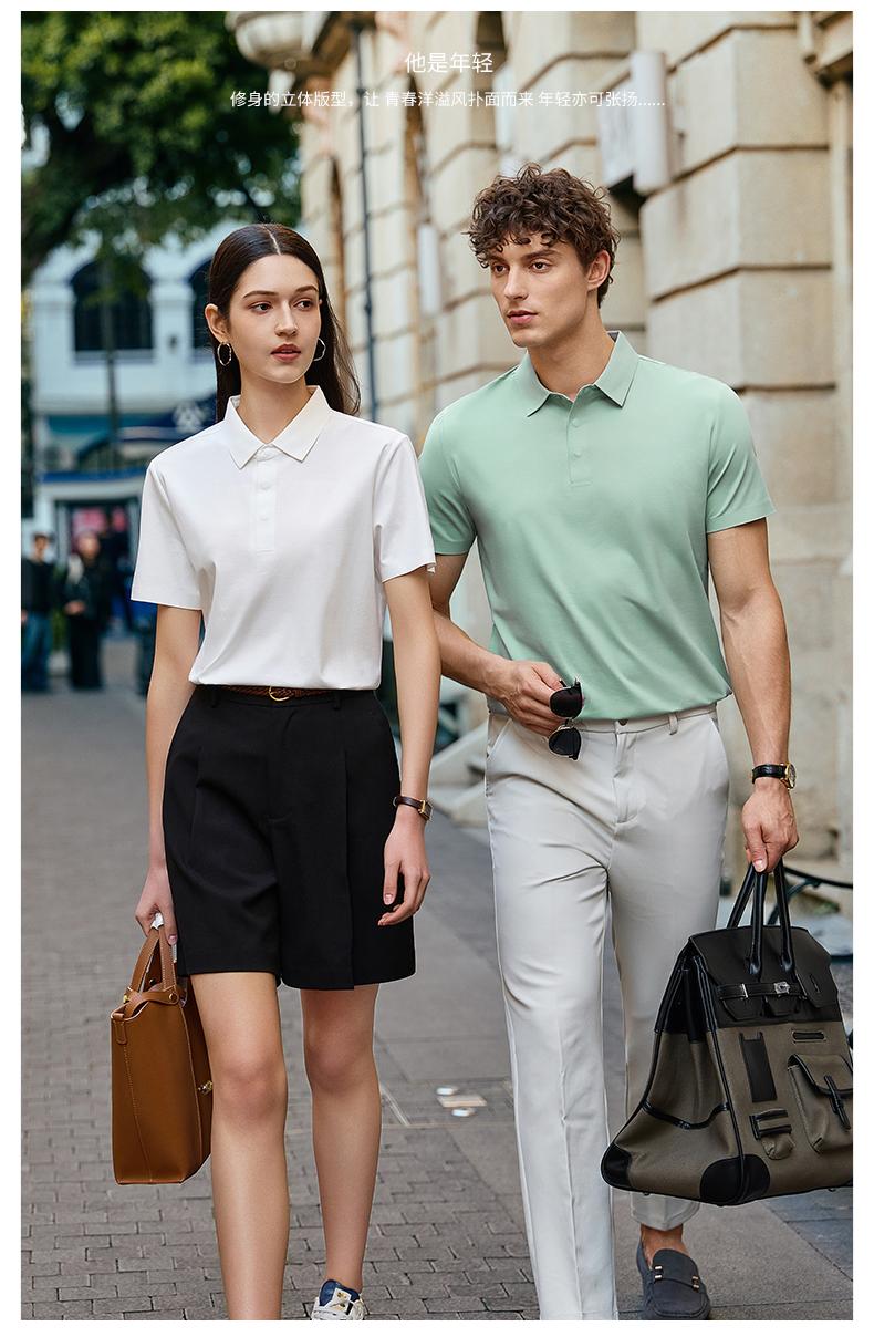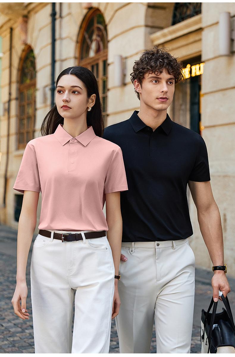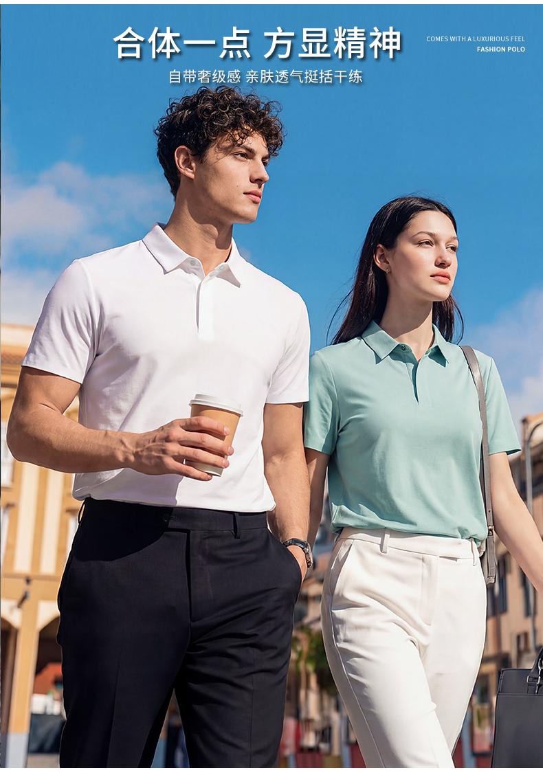 100支无痕高支棉纱液氨棉翻领男女同款夏季短袖上衣 XYD-5951