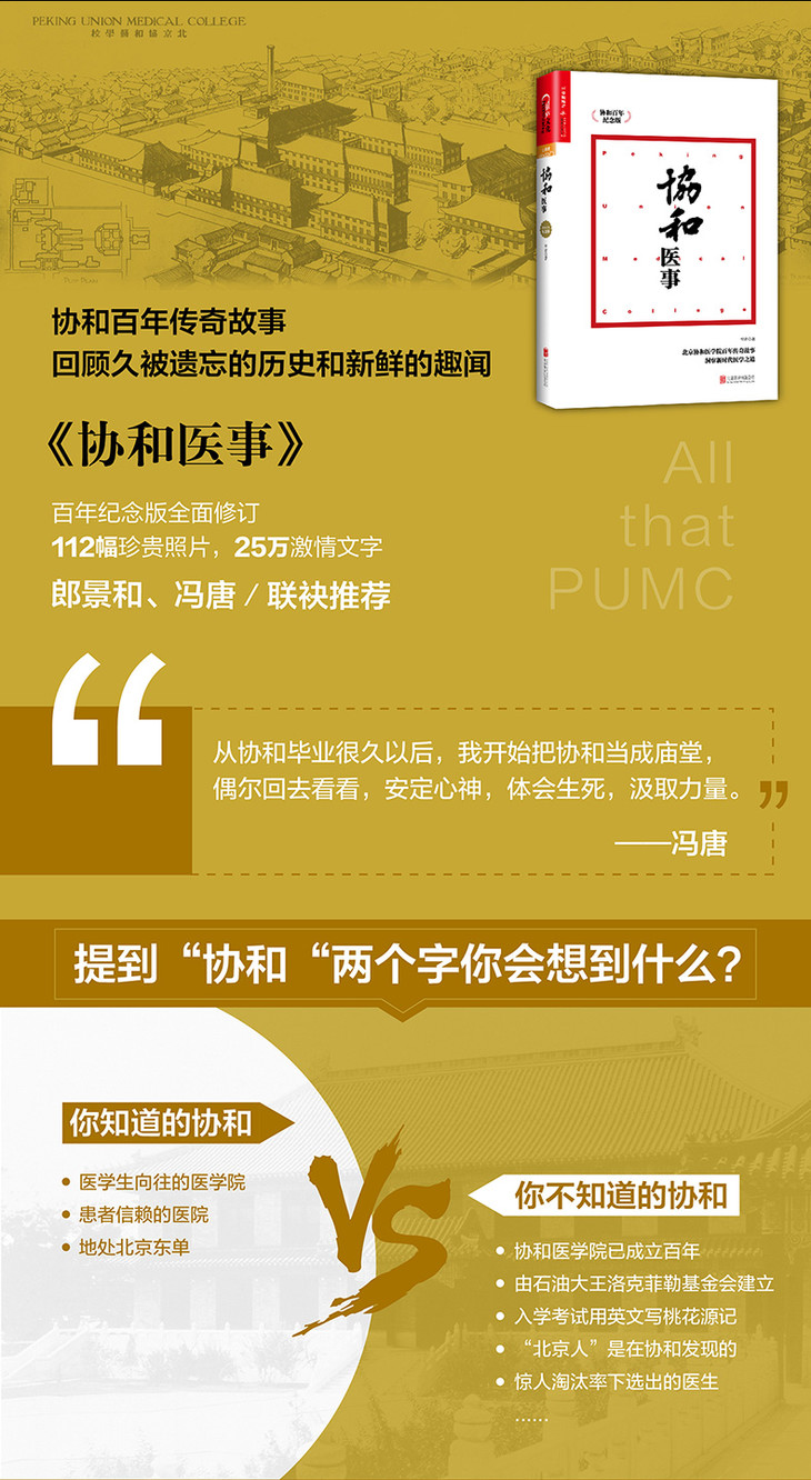 在这本新版的《协和医事》中,希望它不只是略过多维角度和缺乏张力的褒或贬,希望它不只是一支表面赞歌。希望将“协和”置放于一个更广阔的背景之中,在新版里呈现:它在百年间诸多冲突时的坚持、诸多分叉时的选择、诸多朦胧之前的预知。在各种力量的交织中如何坚持,如何做事,以及如何保持希望之火不熄。