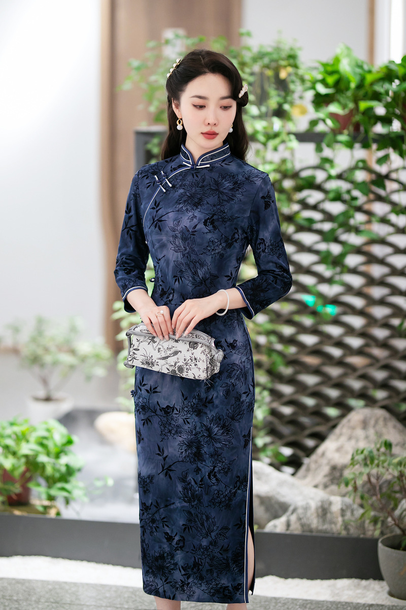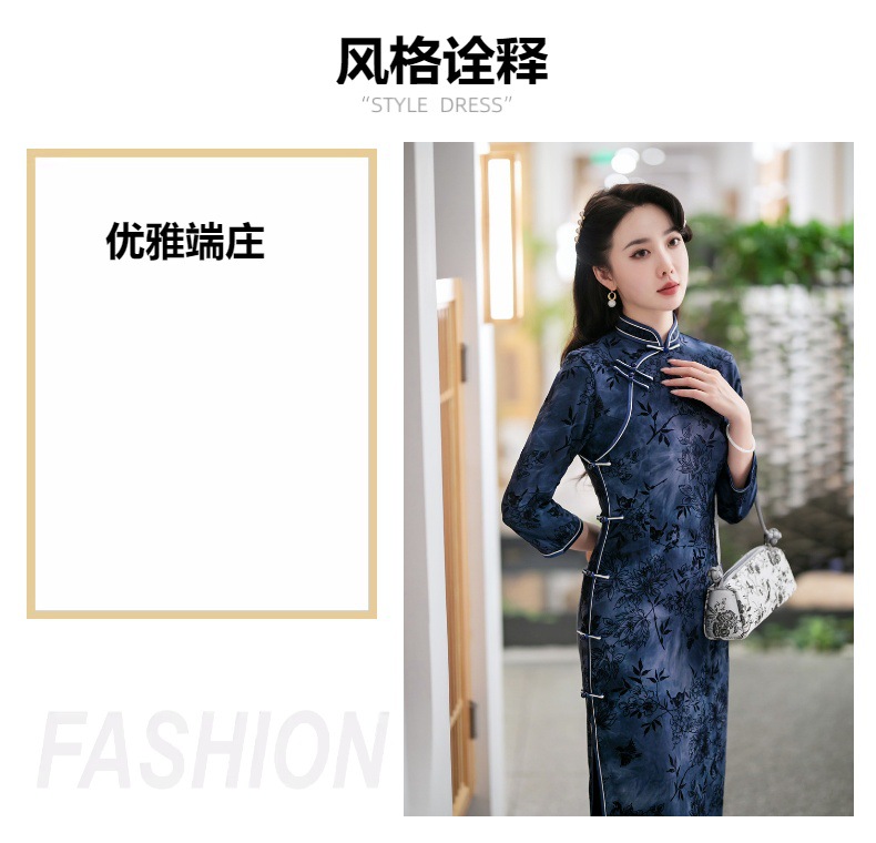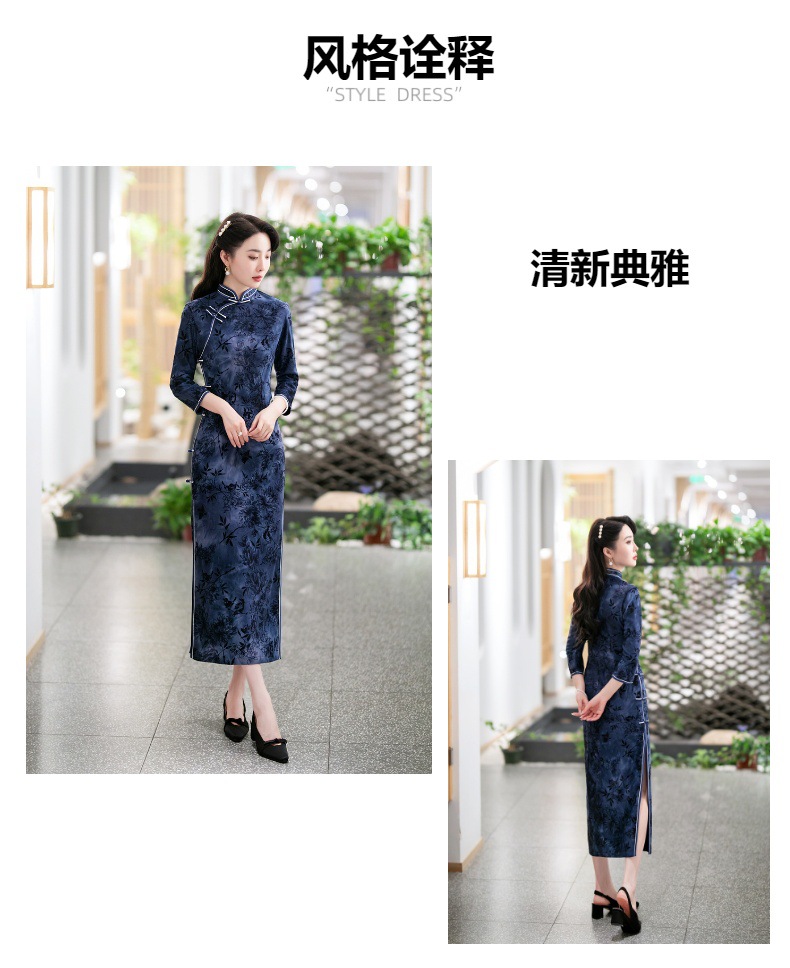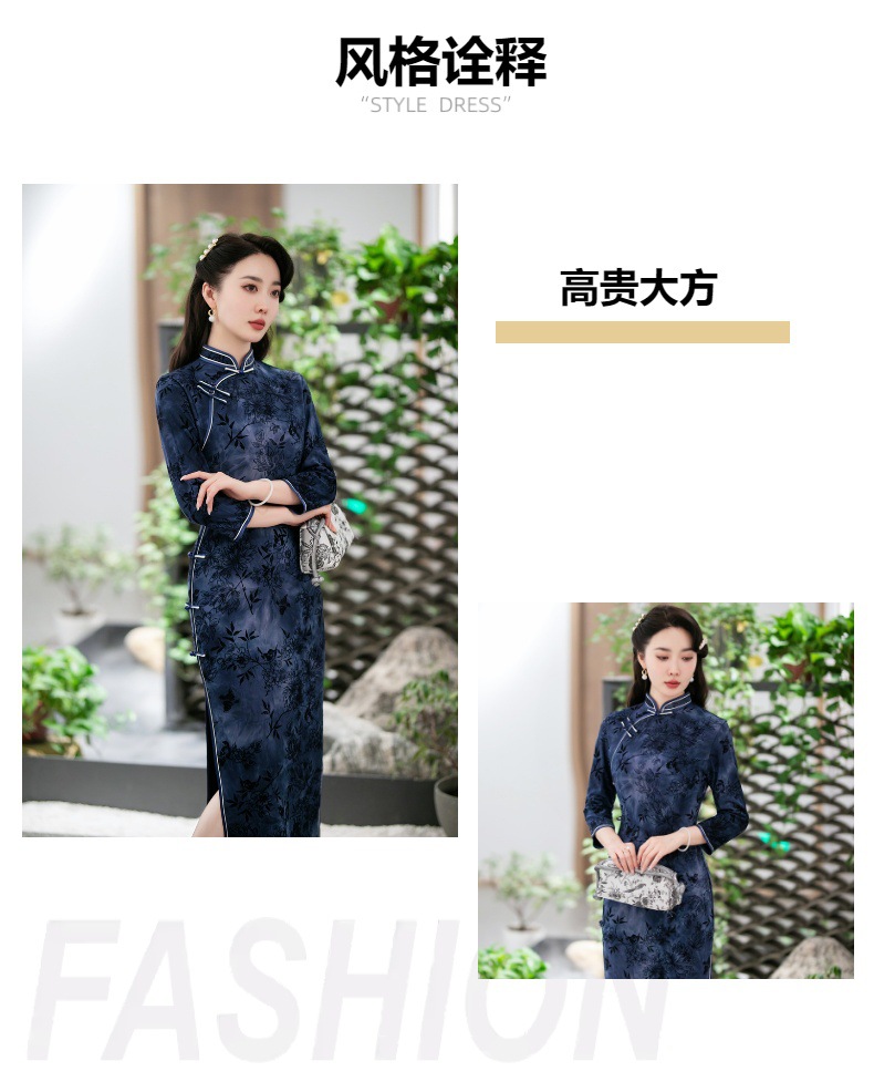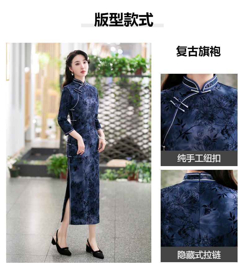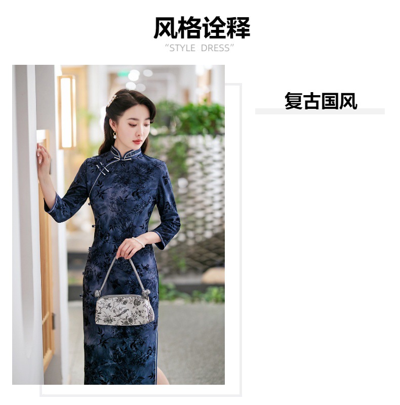 SYG-708新款旗袍冬款加厚植绒长款时尚显瘦复古高档旗袍