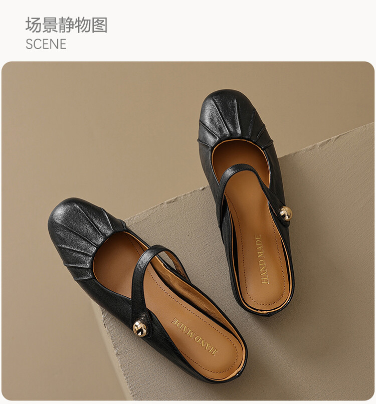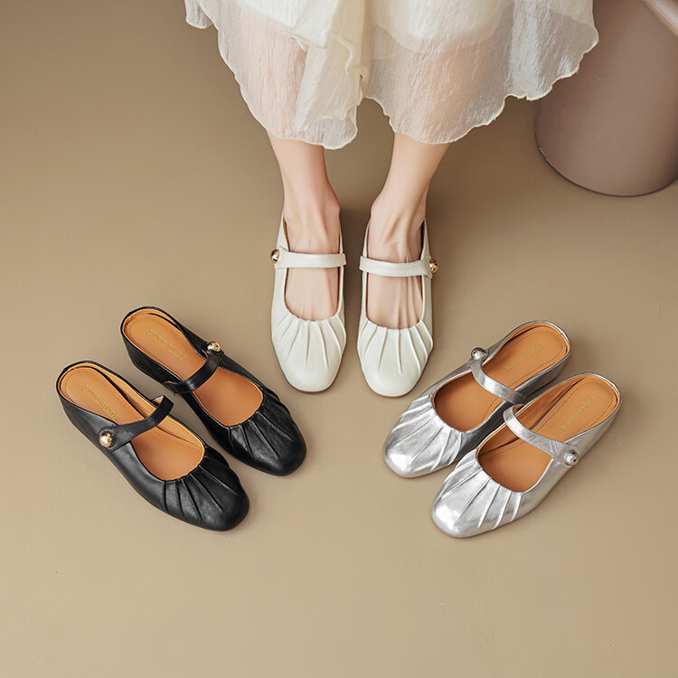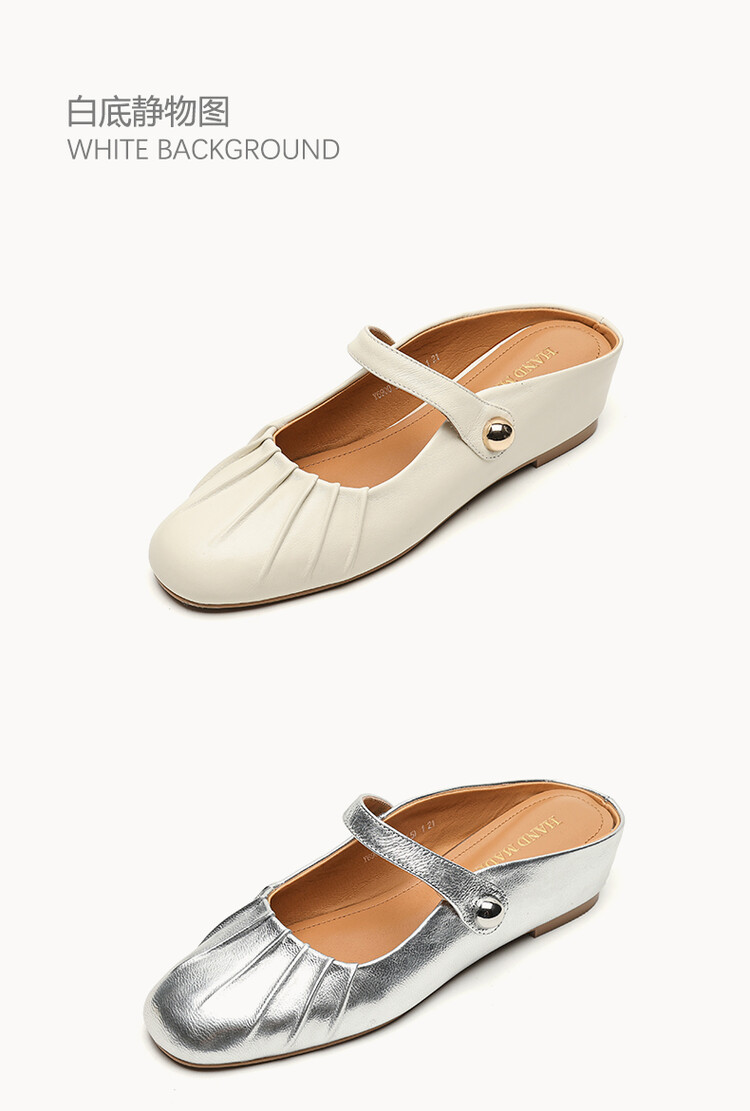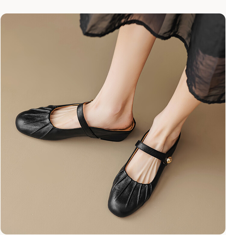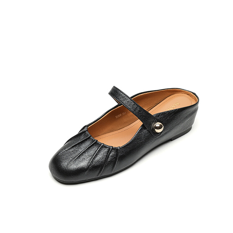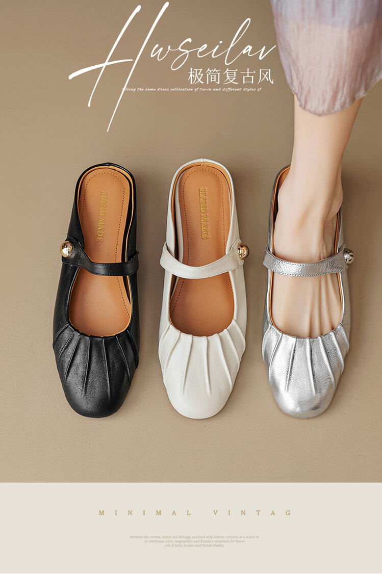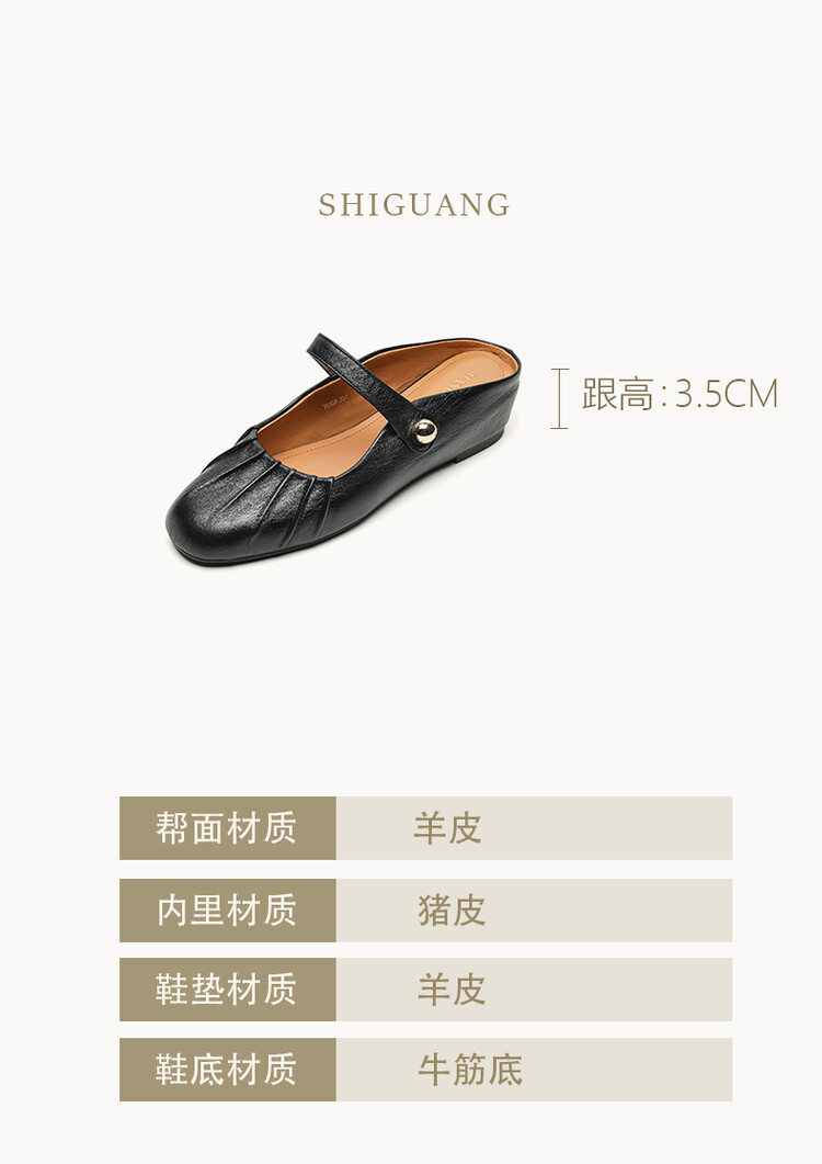【预售5天】夏软面羊皮平底内增高3.5cm玛丽珍凉鞋女折皱纹法式一字带拖鞋OFSM&6900