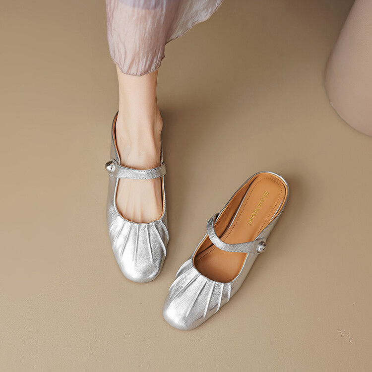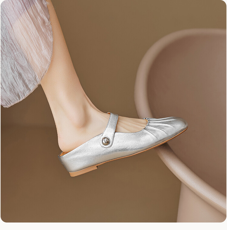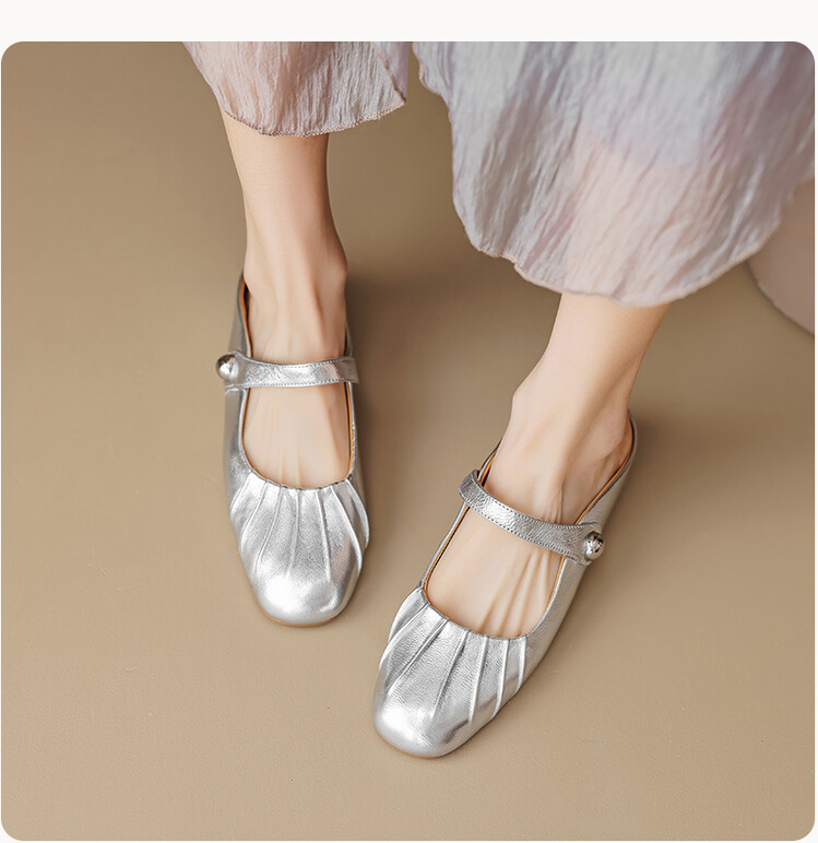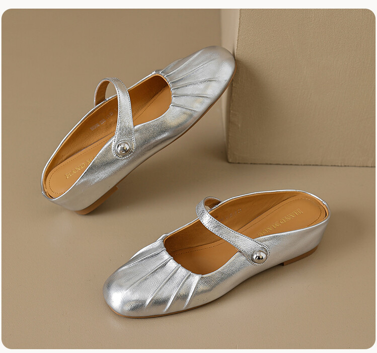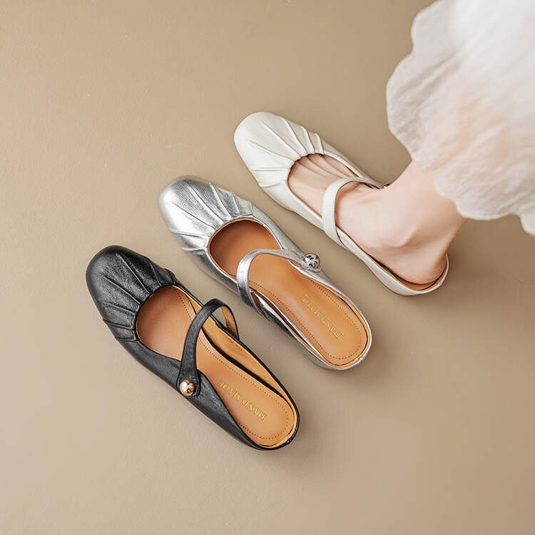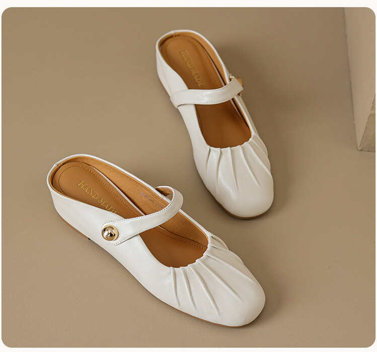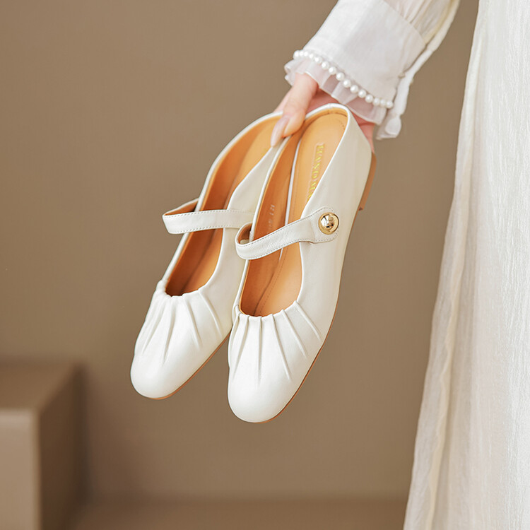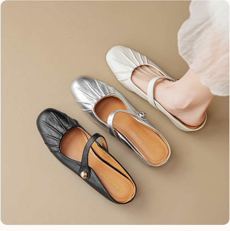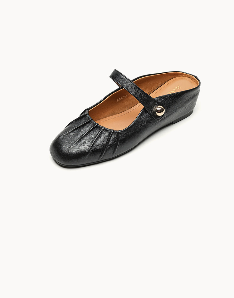 【预售5天】夏软面羊皮平底内增高3.5cm玛丽珍凉鞋女折皱纹法式一字带拖鞋OFSM&6900