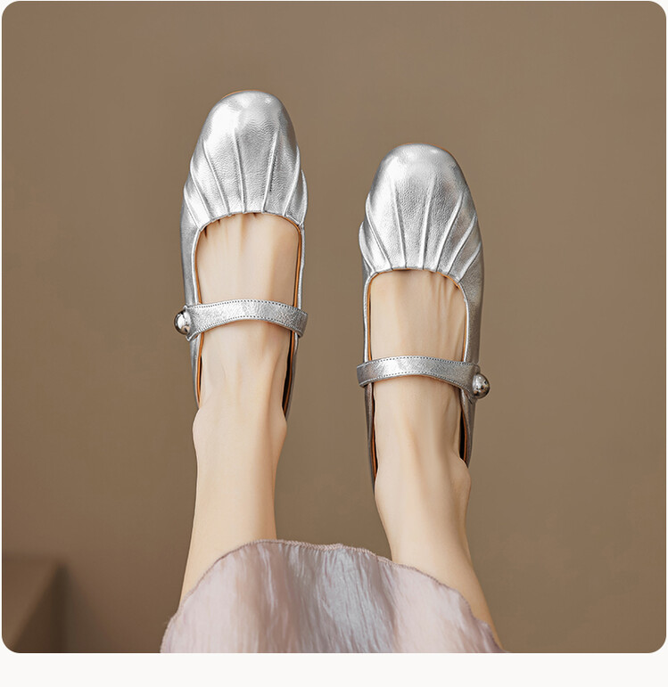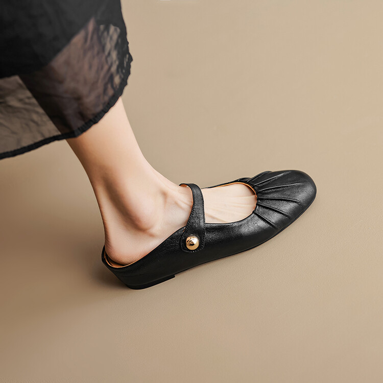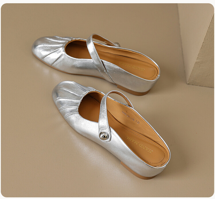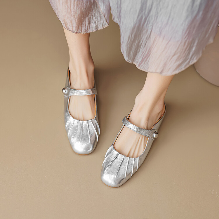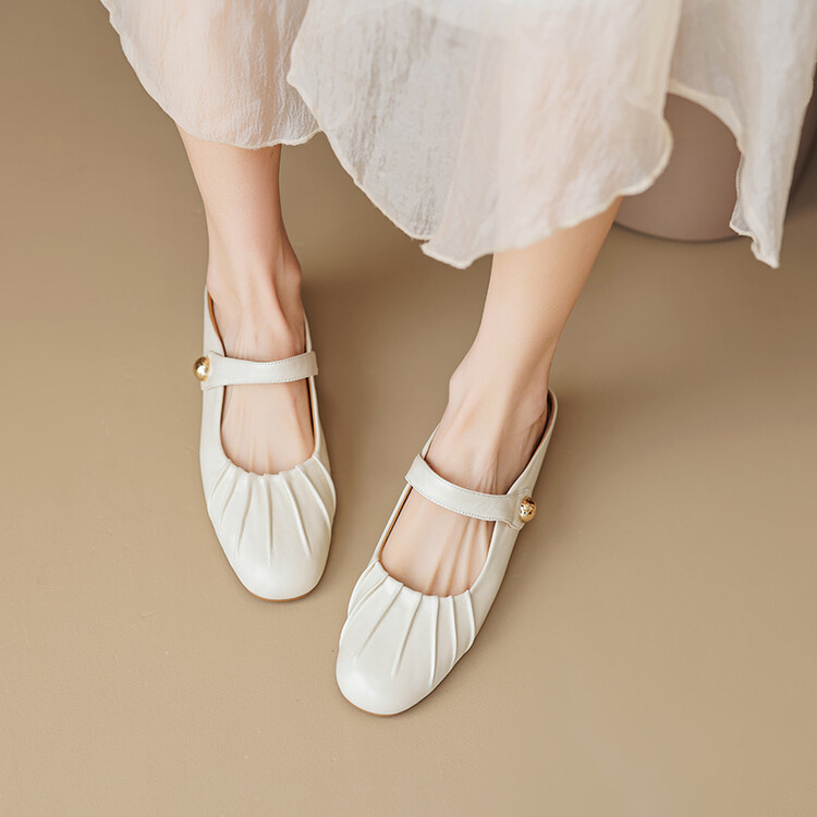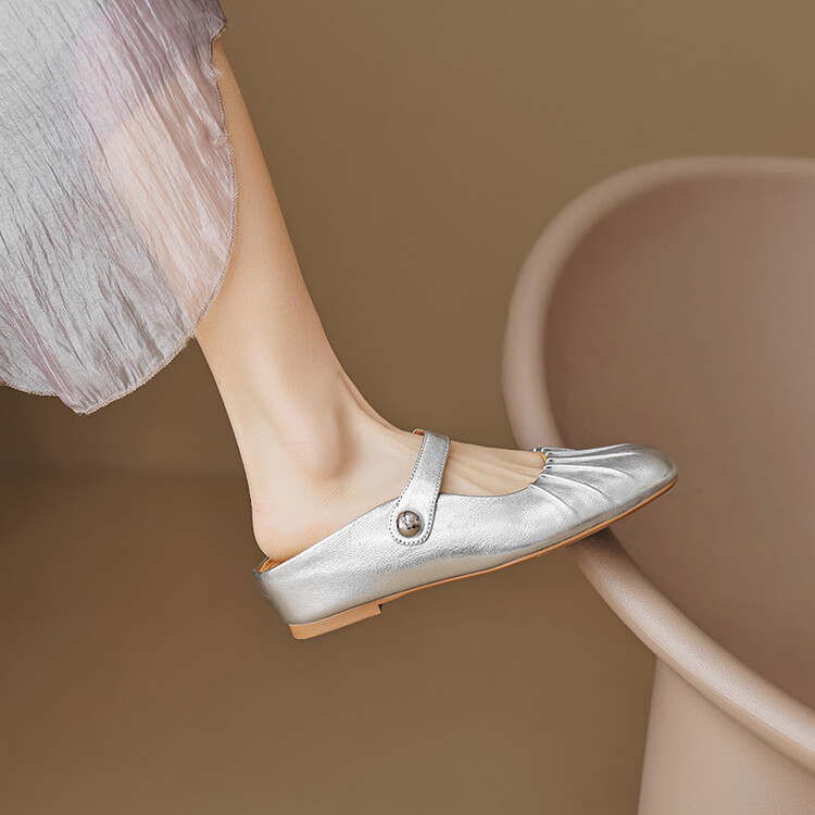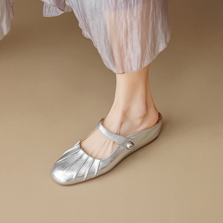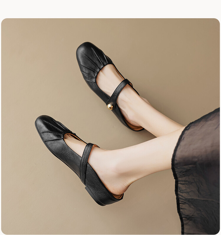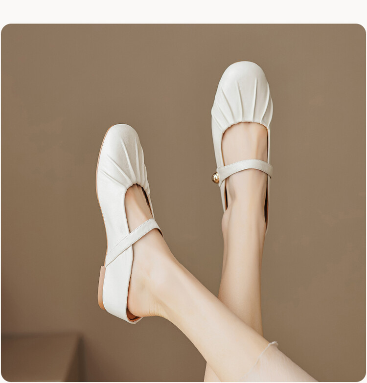 【预售5天】夏软面羊皮平底内增高3.5cm玛丽珍凉鞋女折皱纹法式一字带拖鞋OFSM&6900