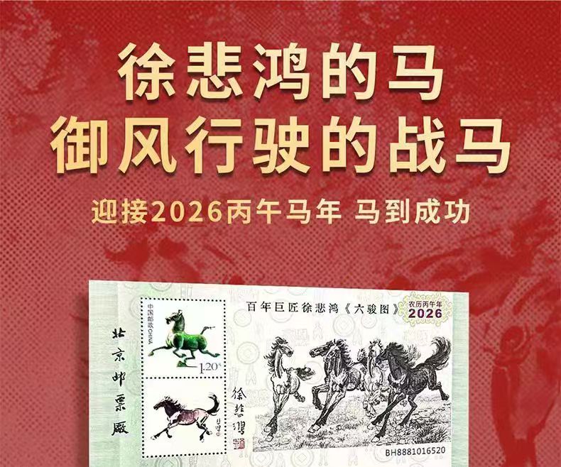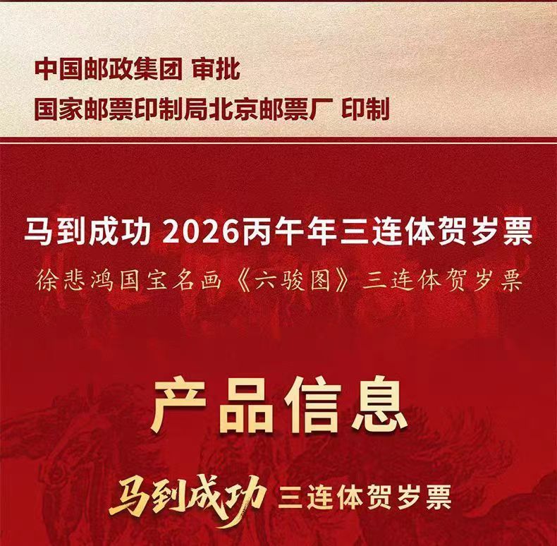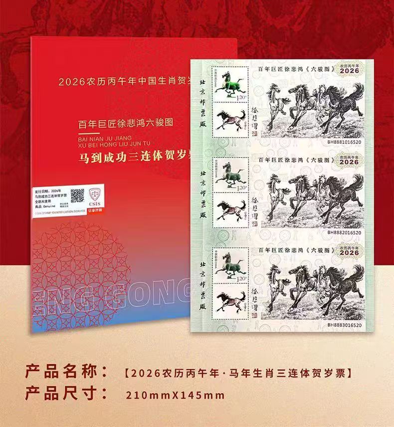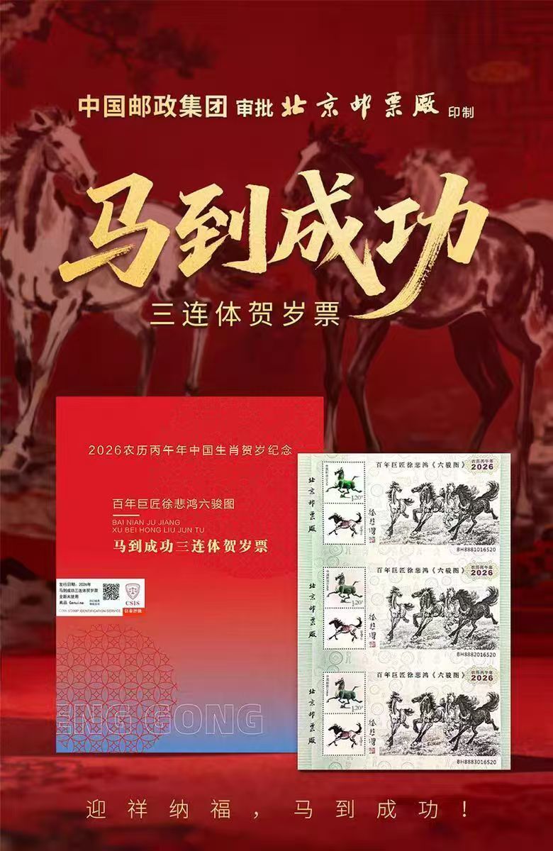 【预售5天发货】《马到成功》三连体贺岁票中国邮政审批,北京邮票厂发行 ,荧光防伪,大师亲签+收藏证书