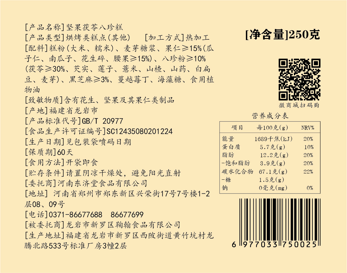 东济堂坚果茯苓八珍糕 八珍固本,坚果润养,口口醇香