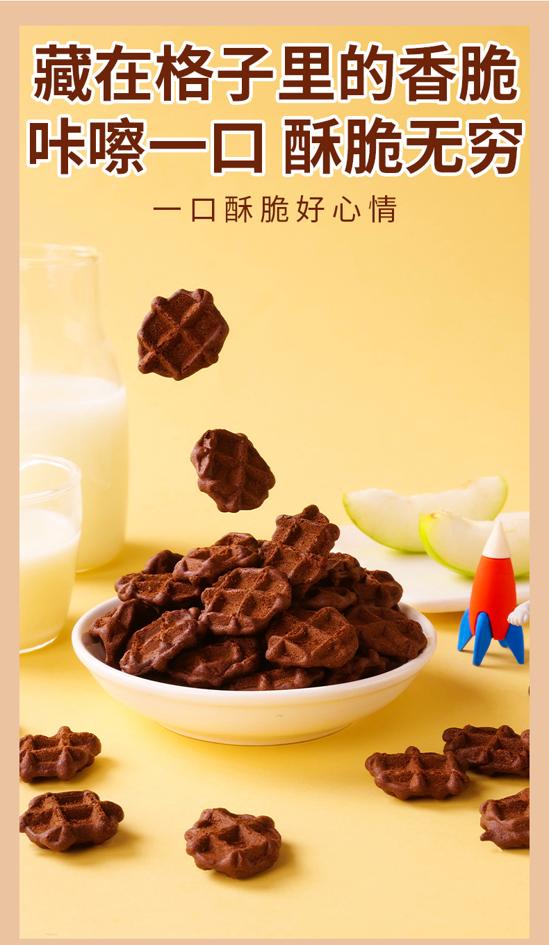 【浓郁可可风味!唇齿留香】刻凡法式可可华夫脆盒装网红薄脆饼干早餐代餐休闲零食下午茶点心。xa