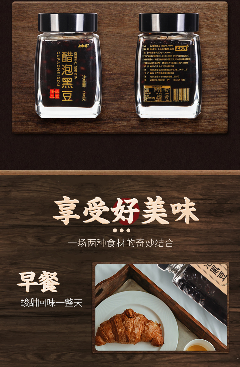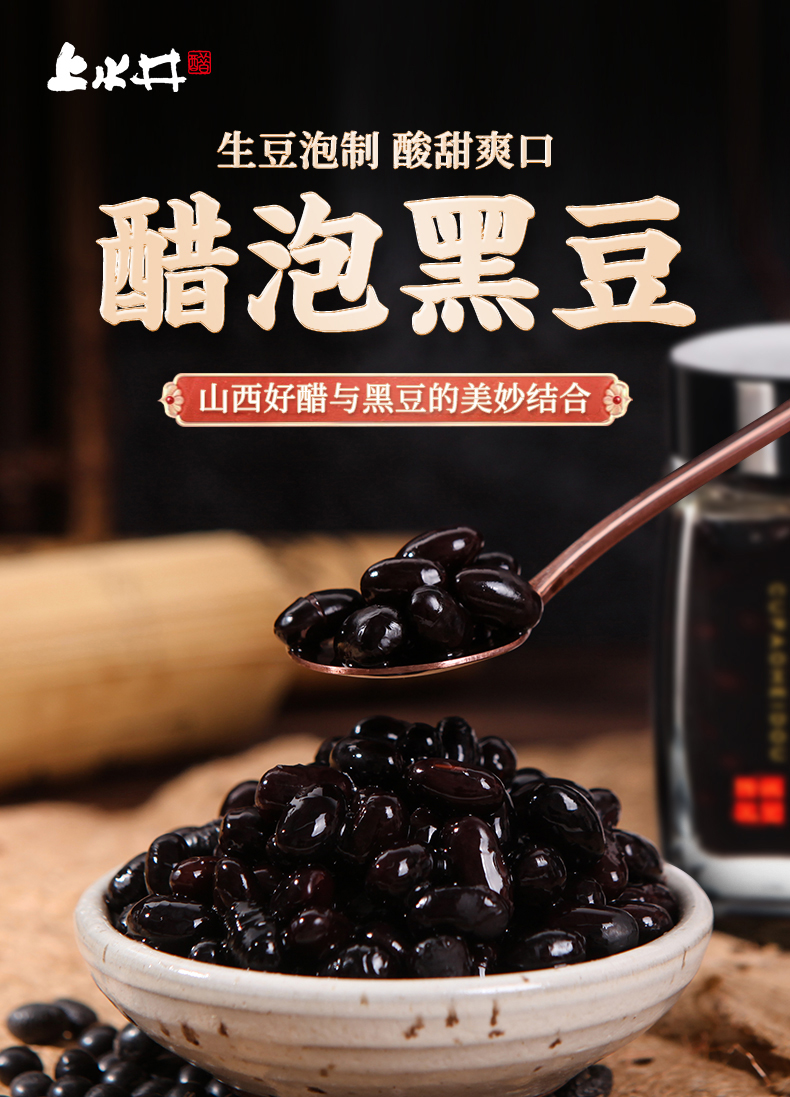 上水井老陈醋醋泡黑豆即食小粒零食160g起瓶装杂粮食醋制品山西特产