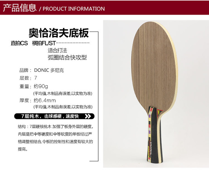 DONIC多尼克 Senso V1 奥恰洛夫 7层纯木乒乓球底板正品行货