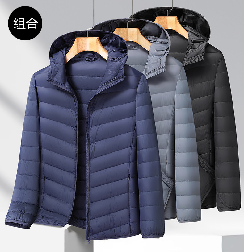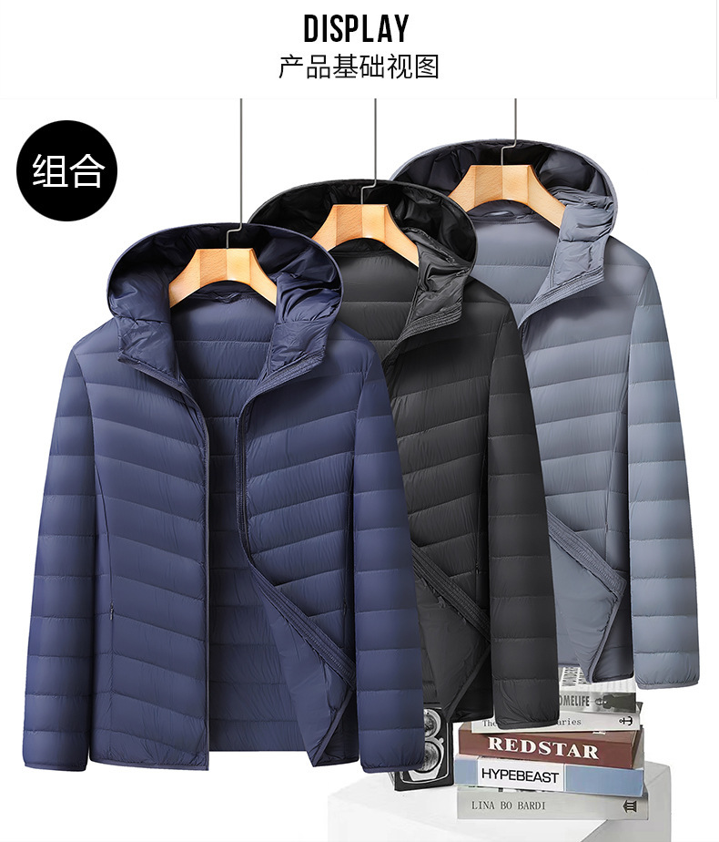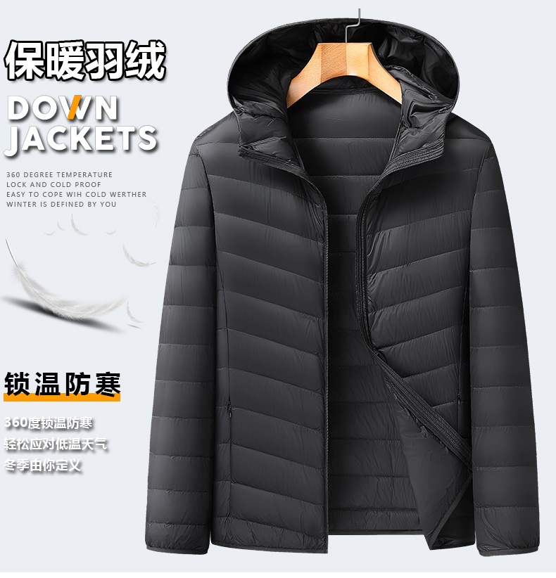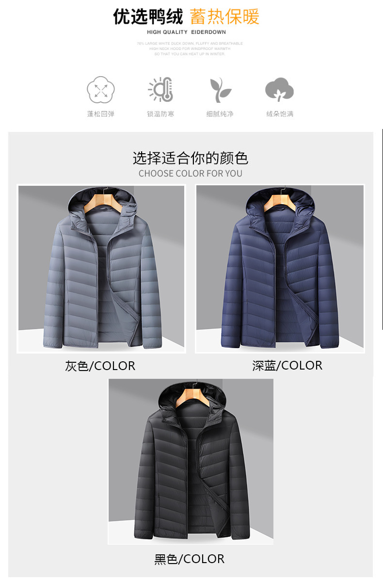 【DX】大依优型大码男装轻薄连帽羽绒服商务休闲百搭宽松短款外套90绒保暖防钻绒