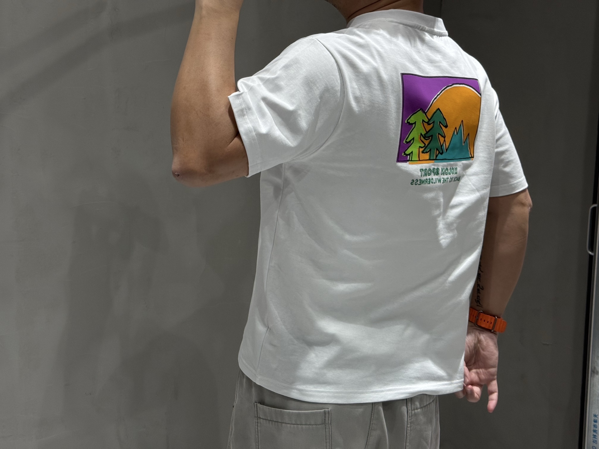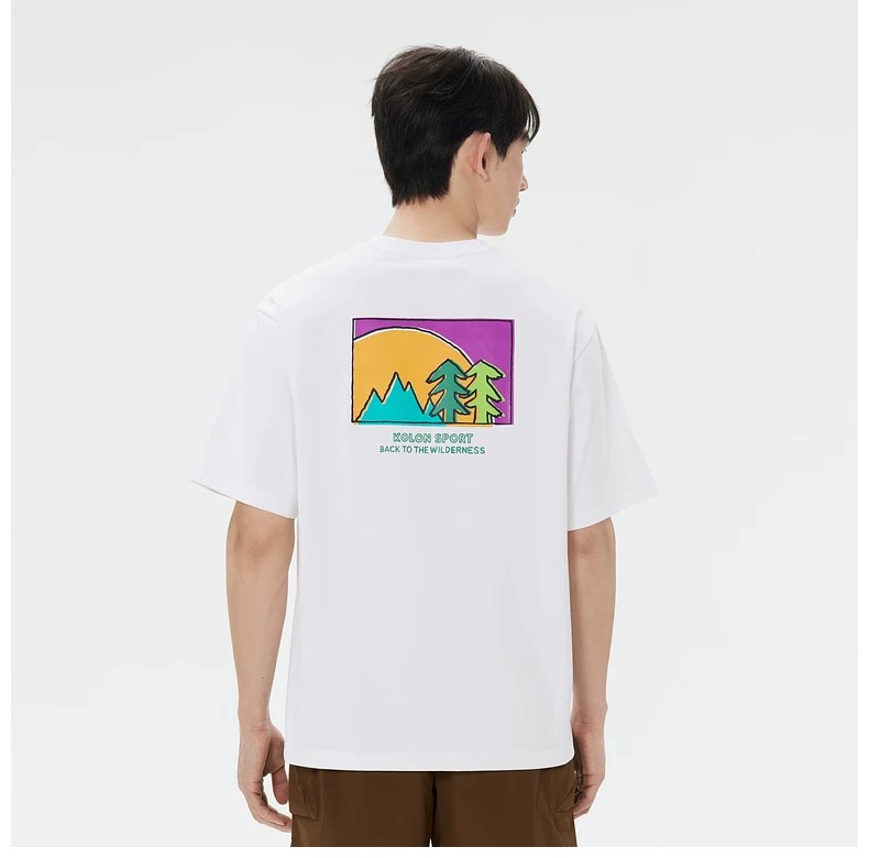 与日本艺术家NAIJEL合作,大身采用高克重棉质手感面料的印花短袖T恤后片使用KOLON SPORT的手绘感的彩色水浆印花,丰富层次感中性风格,落肩宽松版型,身材包容度高