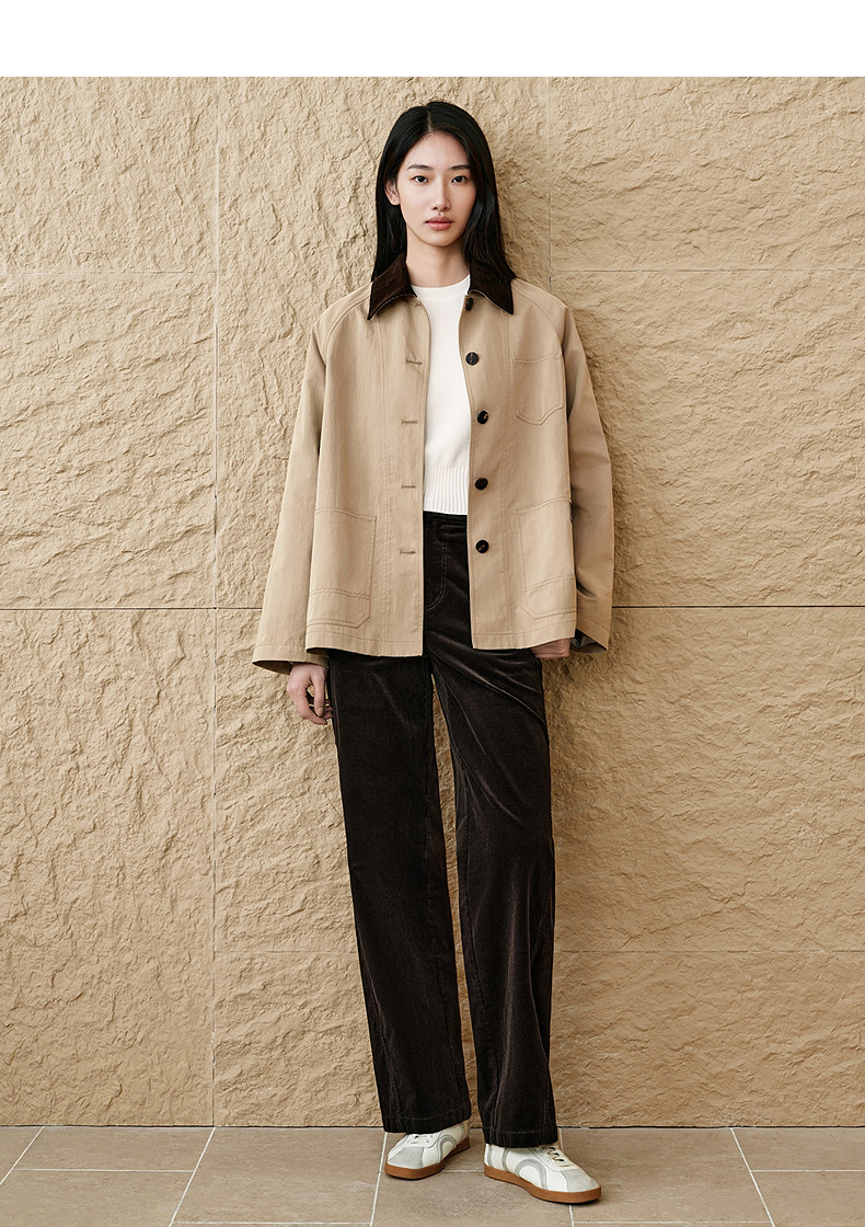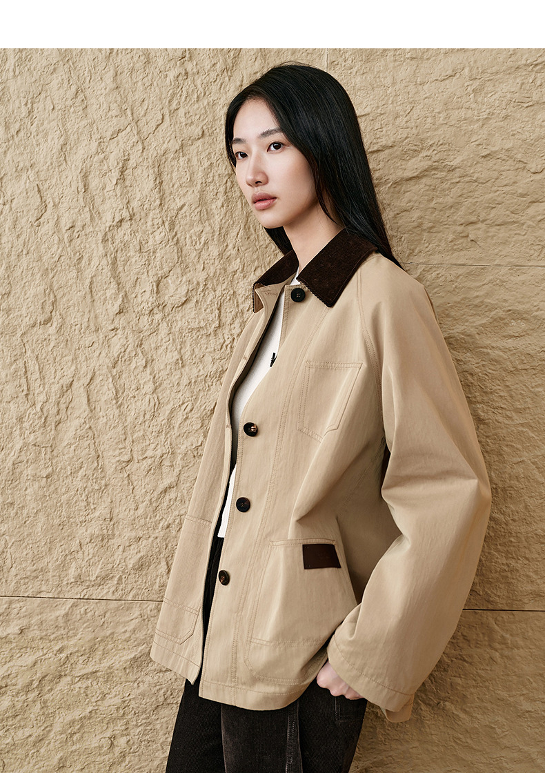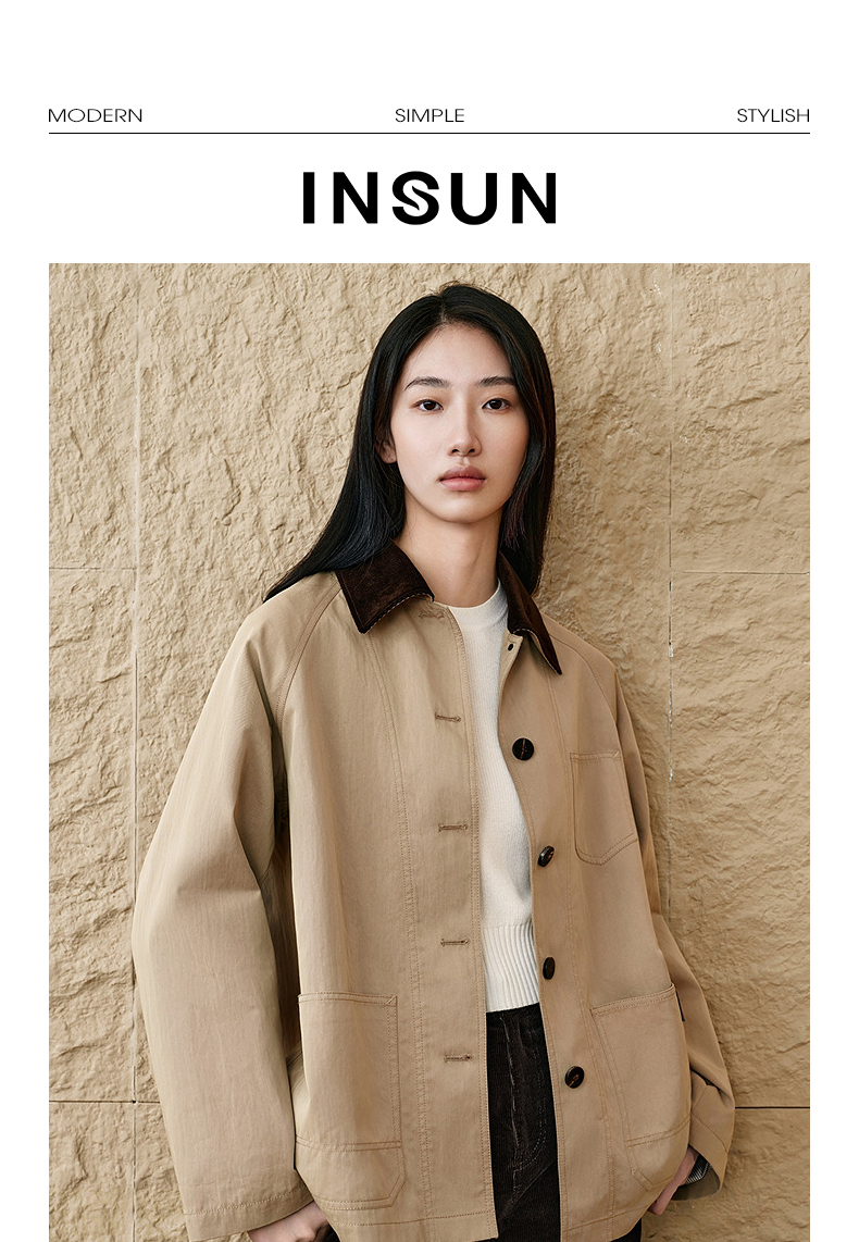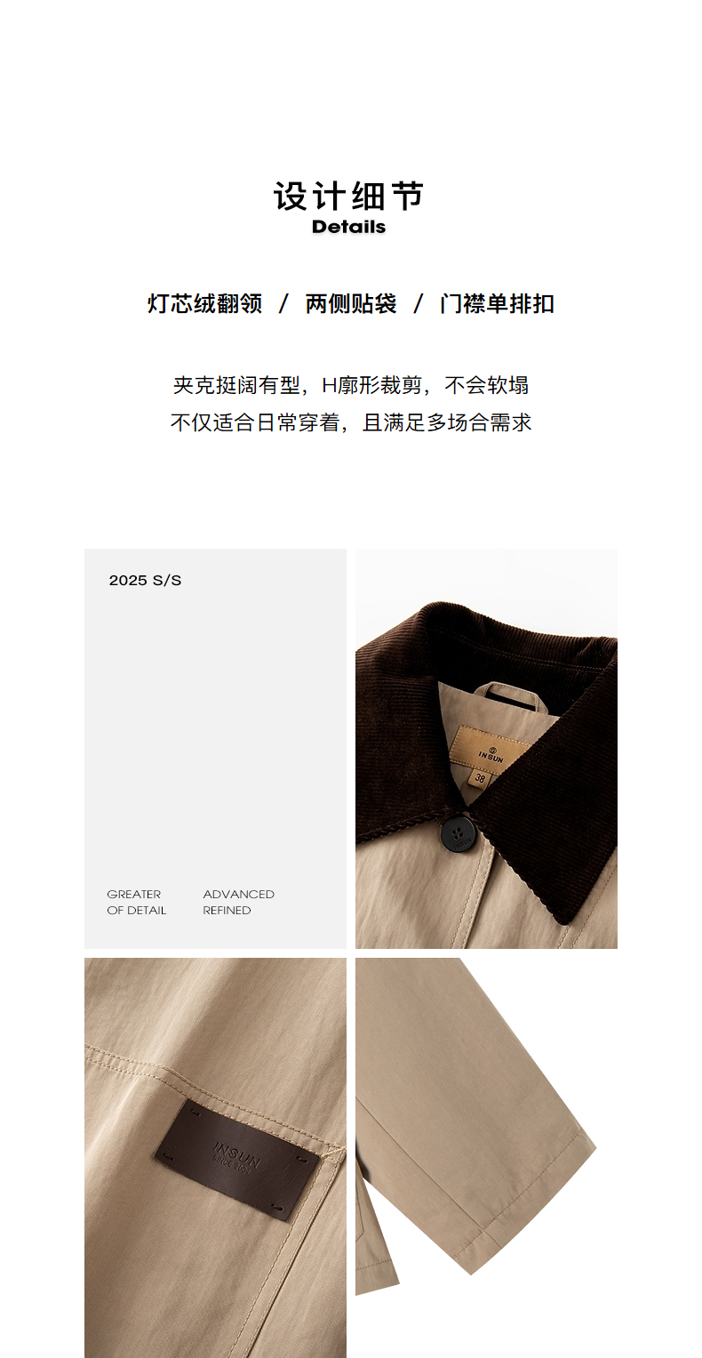 INSUN恩裳2025秋季巴恩风灯芯绒翻领夹克外套