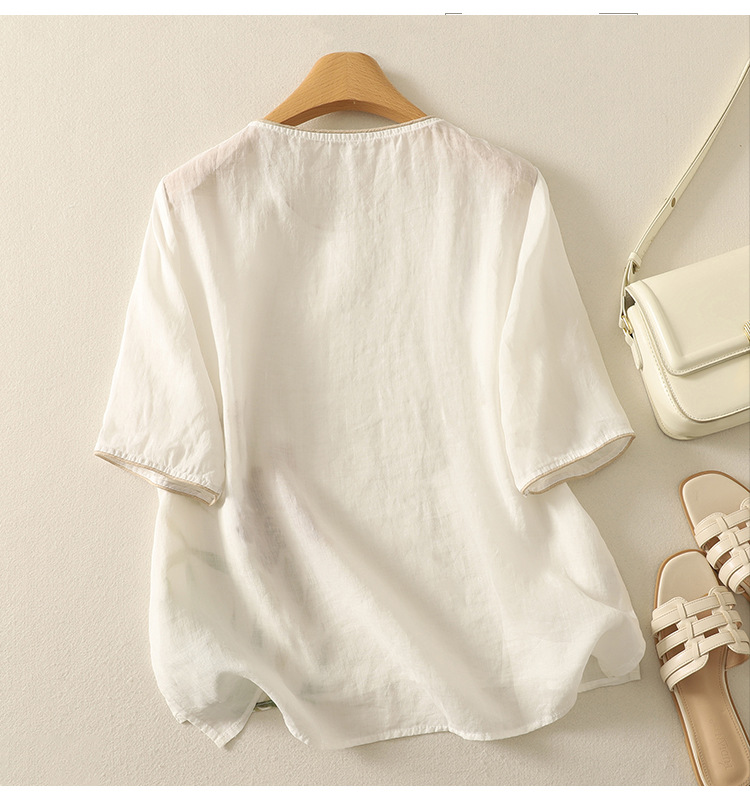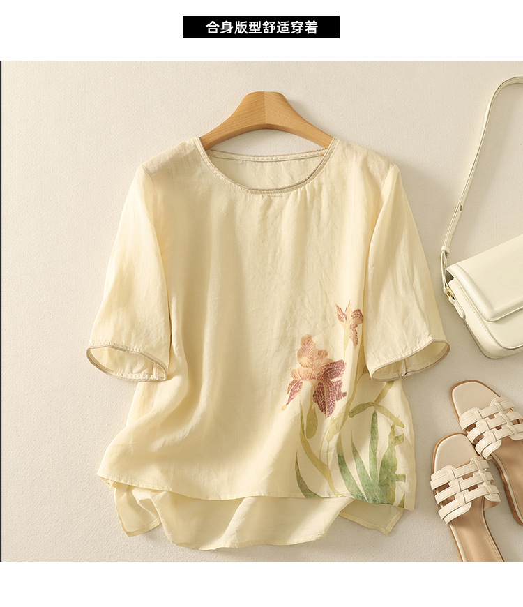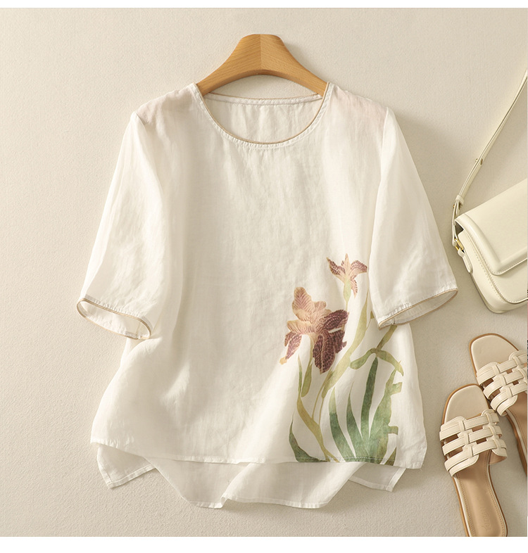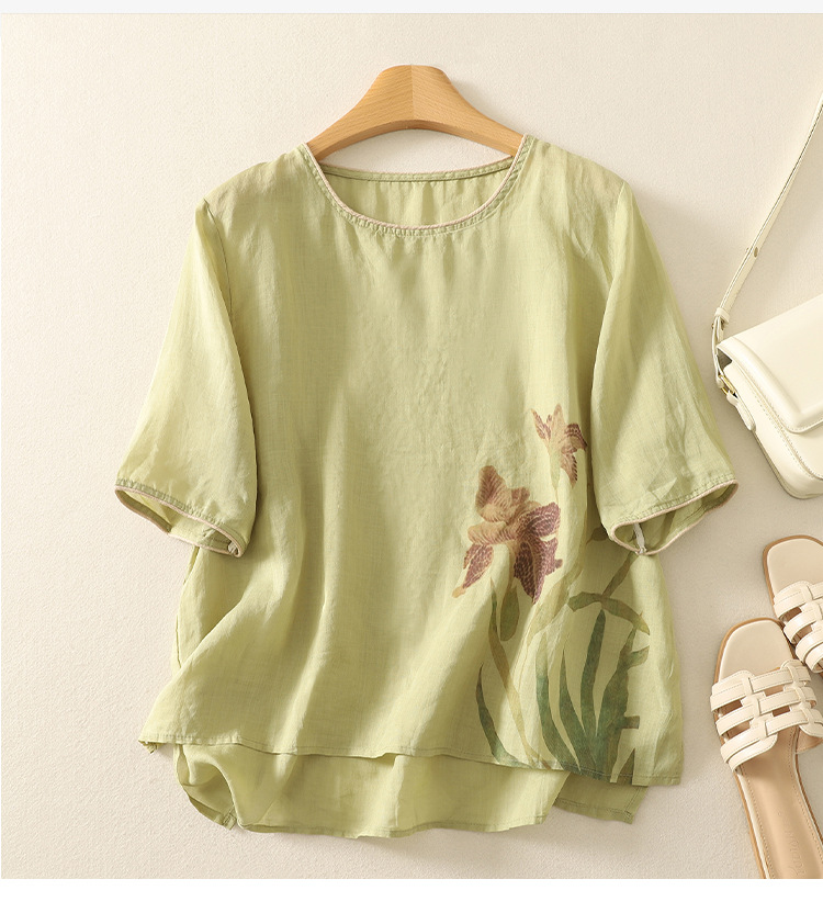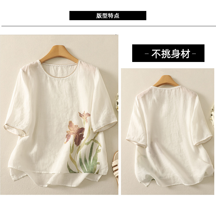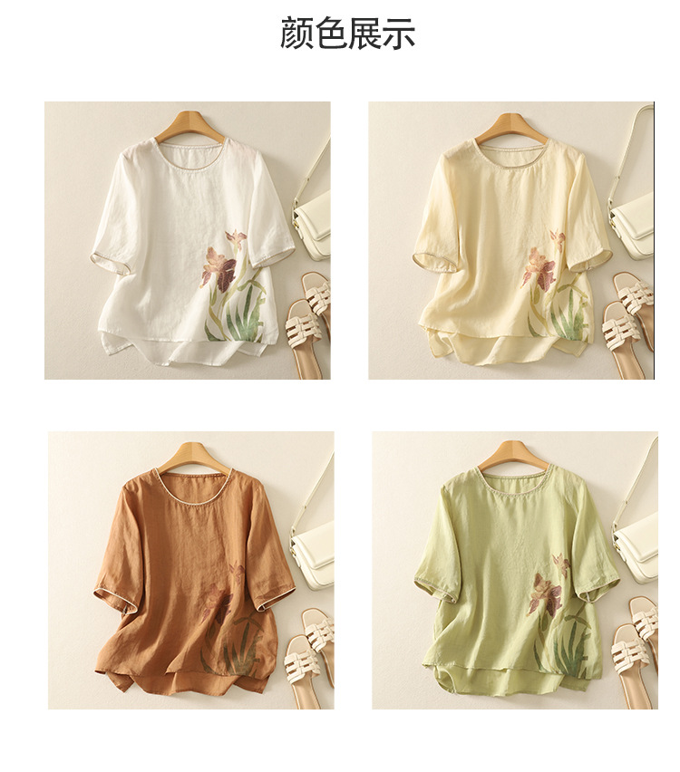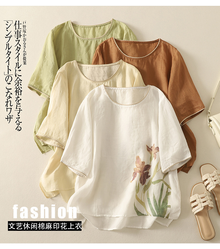 雀说新款文艺大码宽松印花圆领T恤衫女百搭休闲遮肉显瘦上衣AL6200