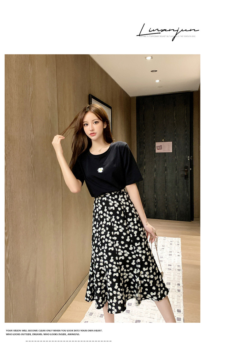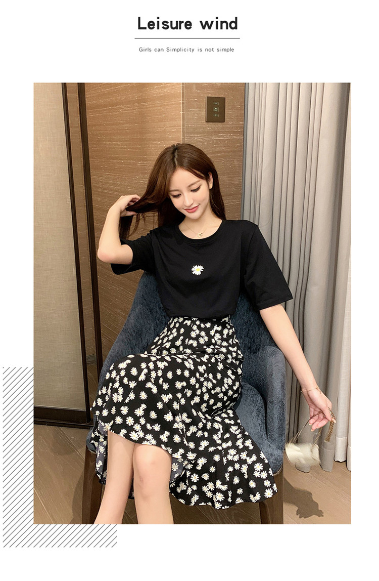 MZ-MZ4380新款不规则A字短裙棉T恤半身长裙两件套装裙潮ZXH