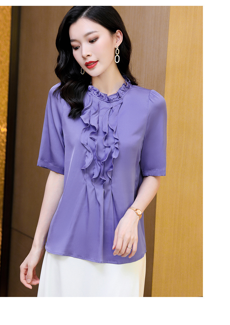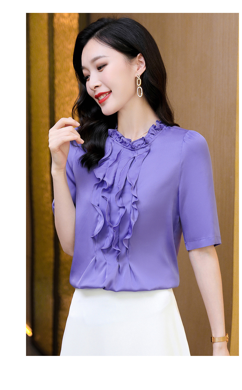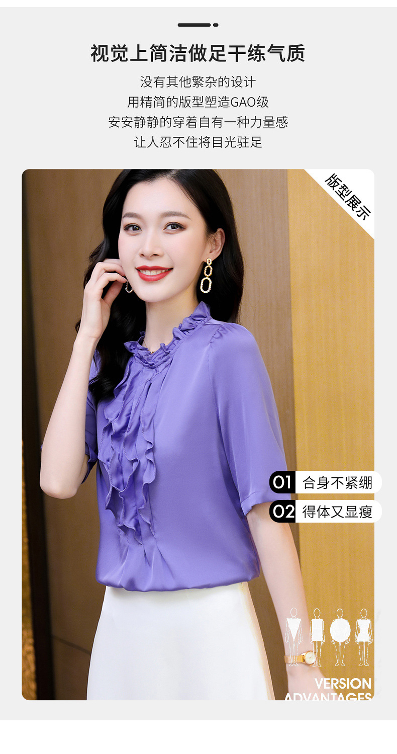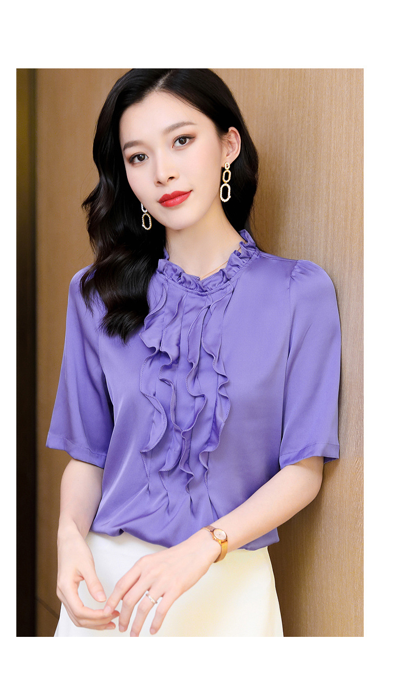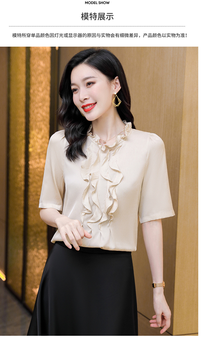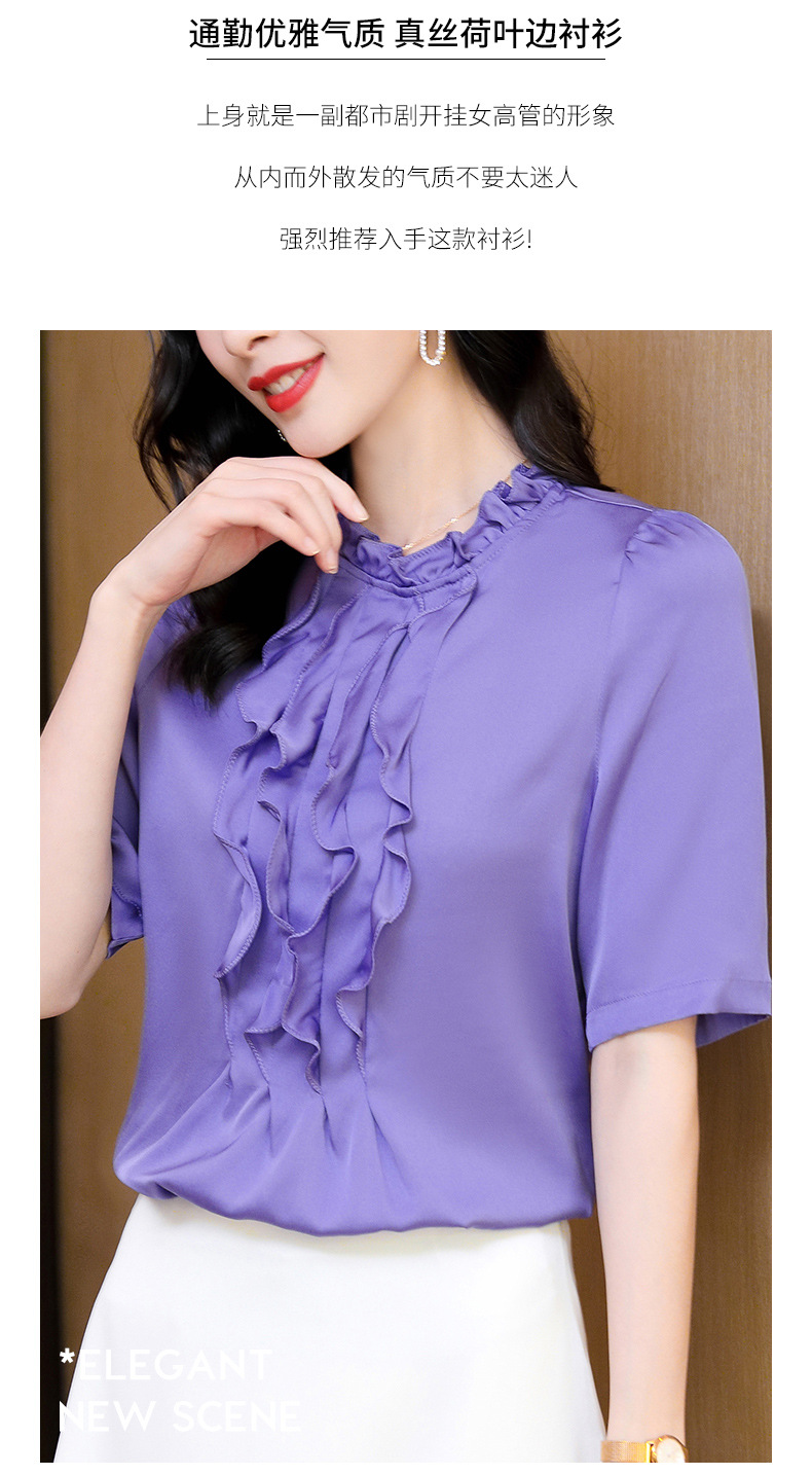 纯色气质,时尚短袖真丝衬衫ASE-3587