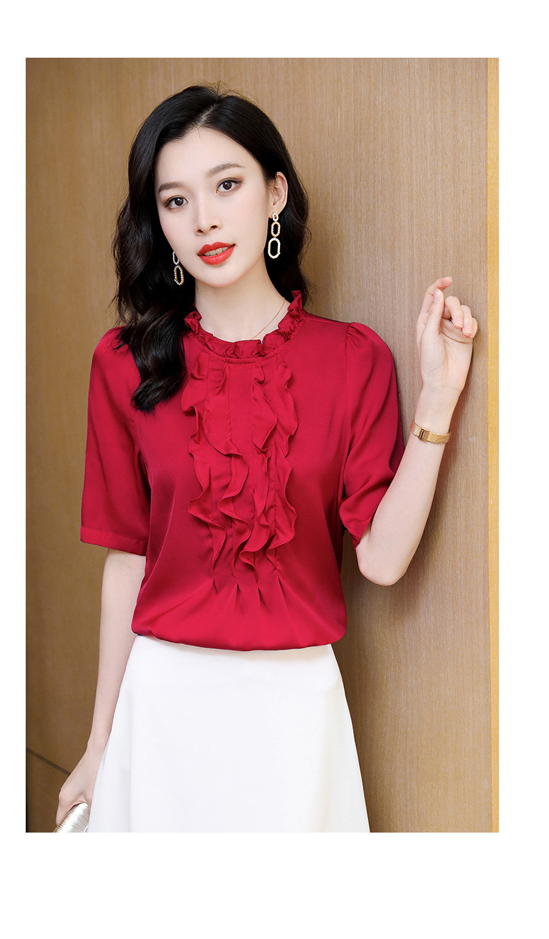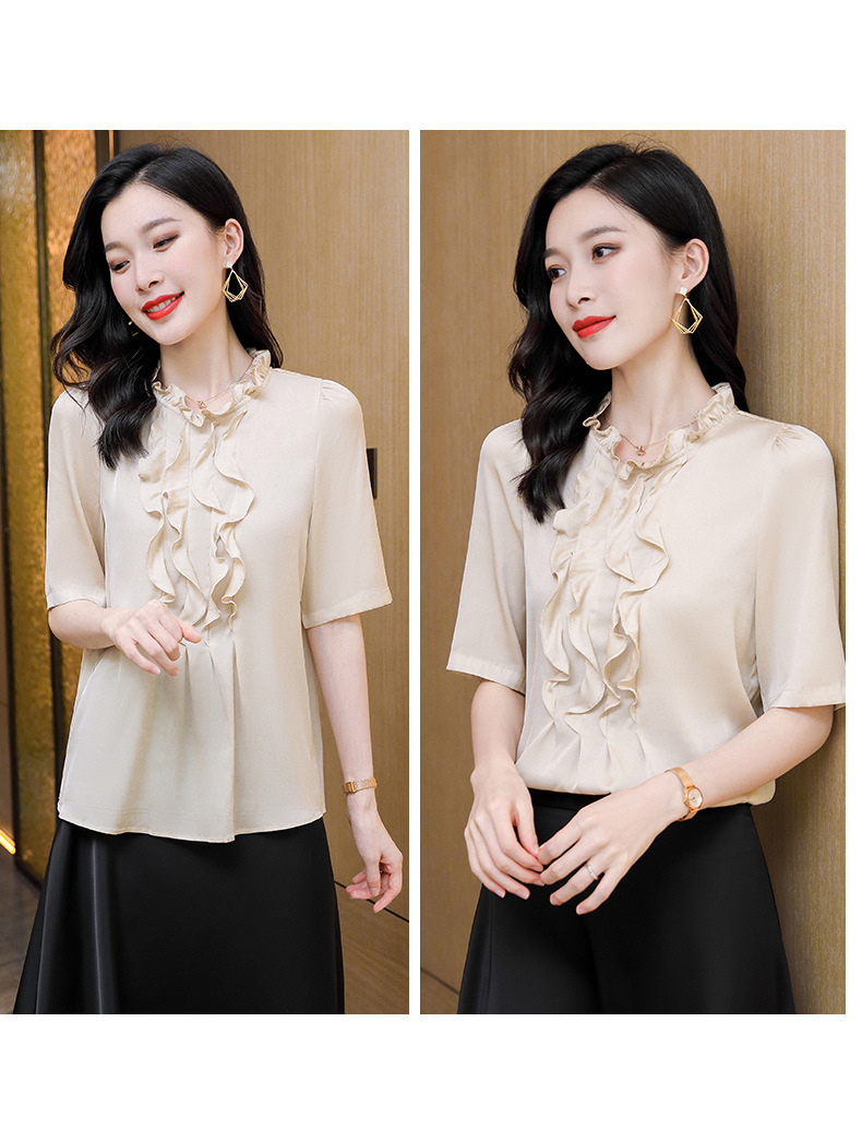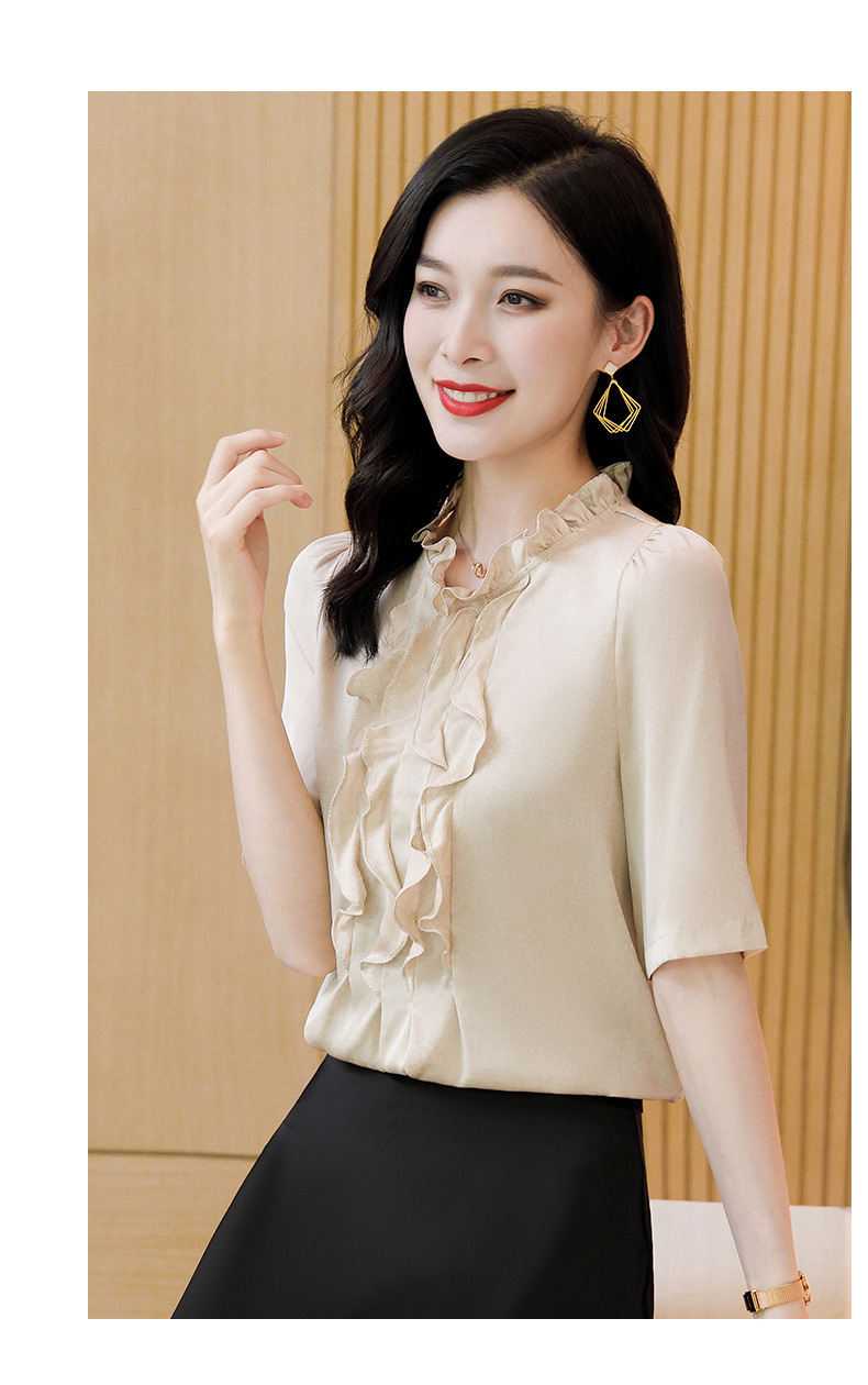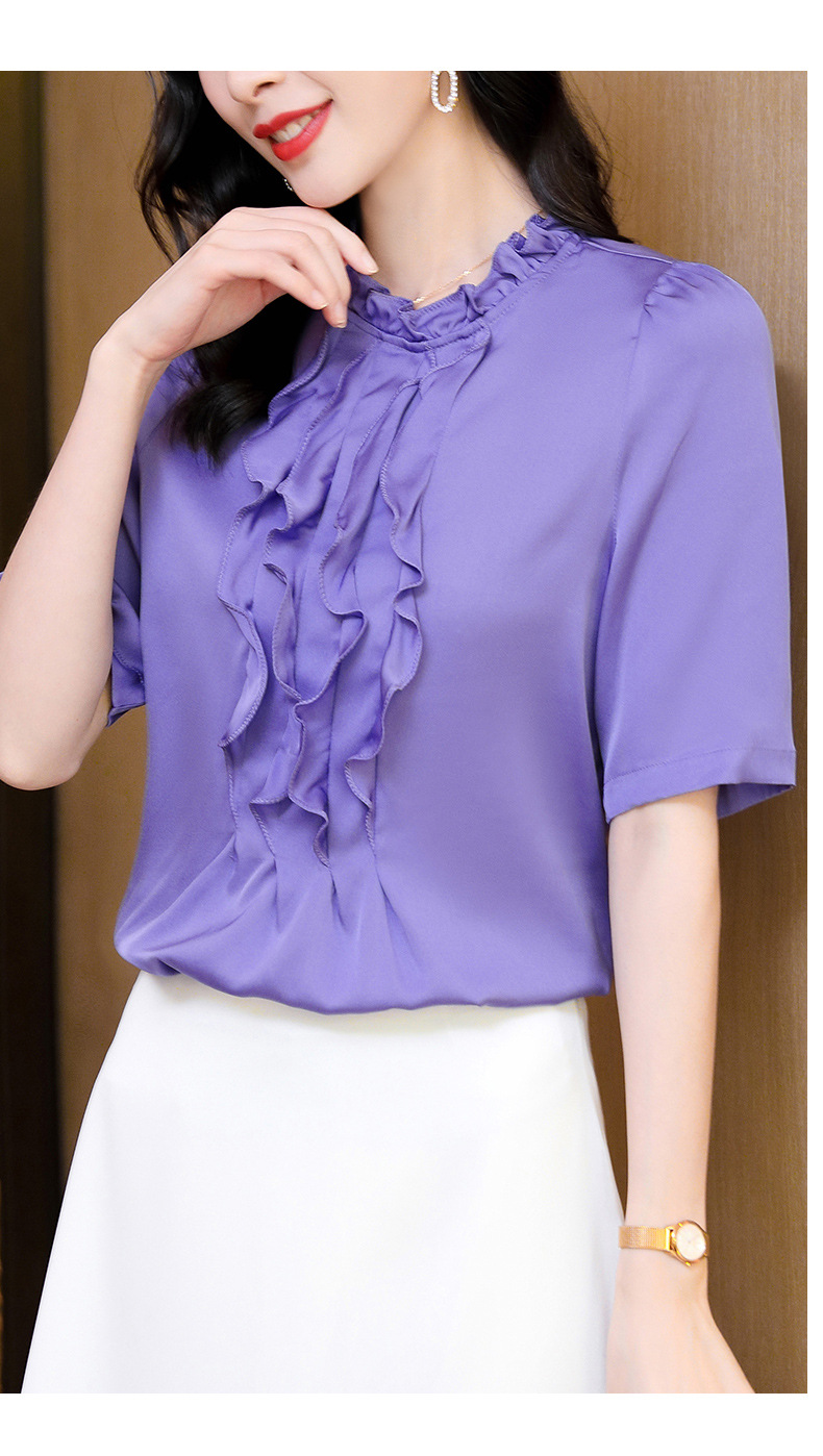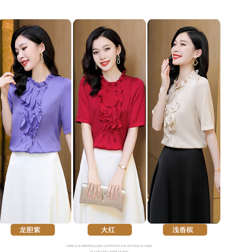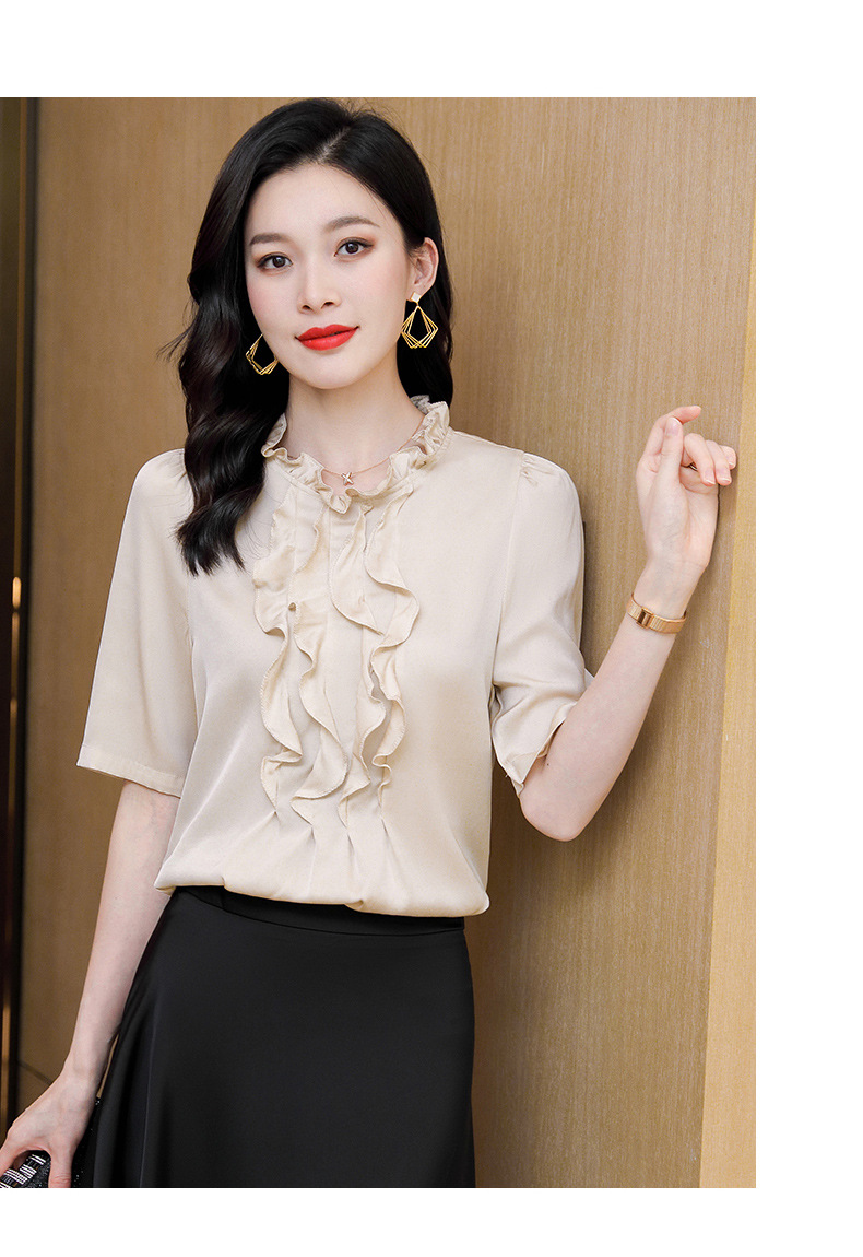 纯色气质,时尚短袖真丝衬衫ASE-3587