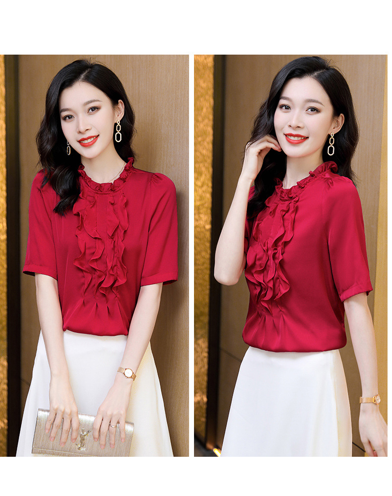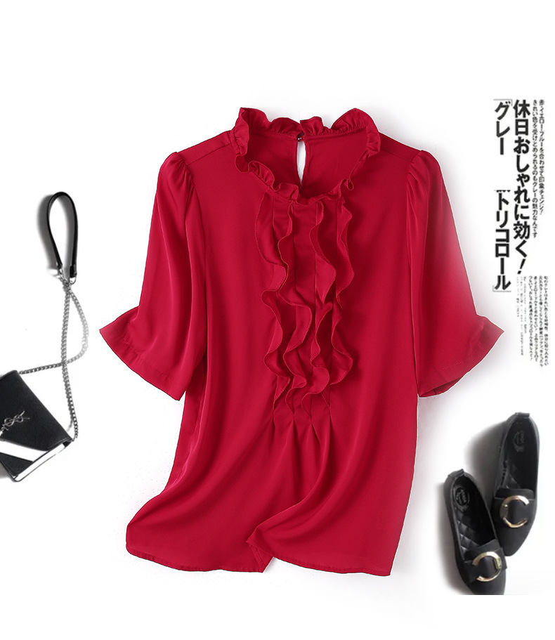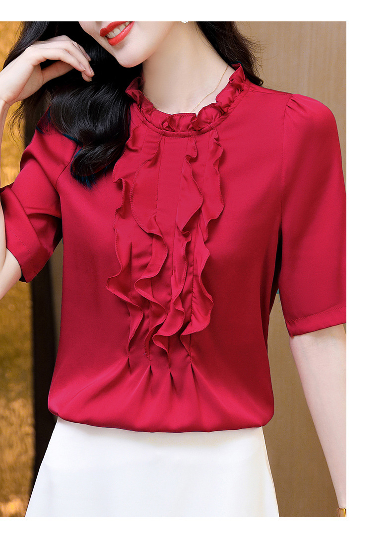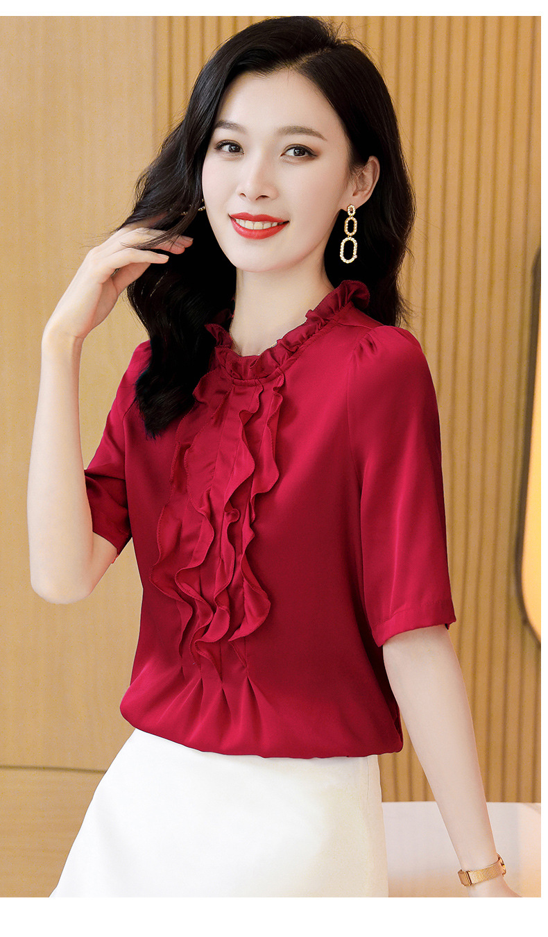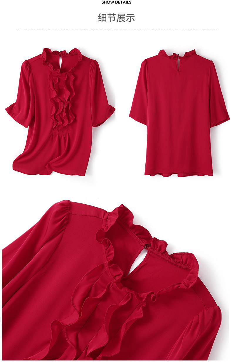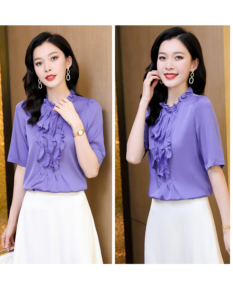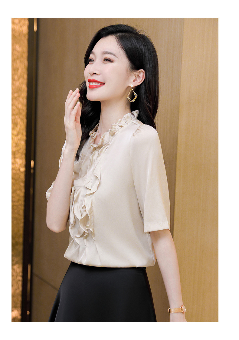 纯色气质,时尚短袖真丝衬衫ASE-3587