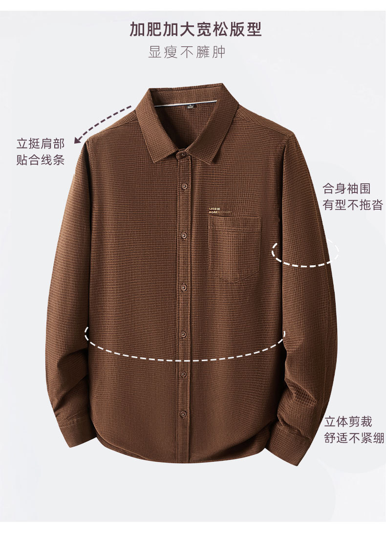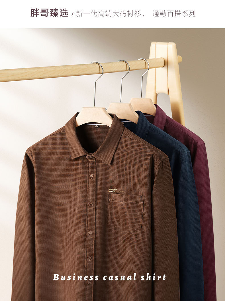 【100%棉】【DDS】大依优型大码衬衫男士纯棉衬衣长袖格子秋季新款男士加肥加大码商务通勤休闲衬衫高端抗皱免烫