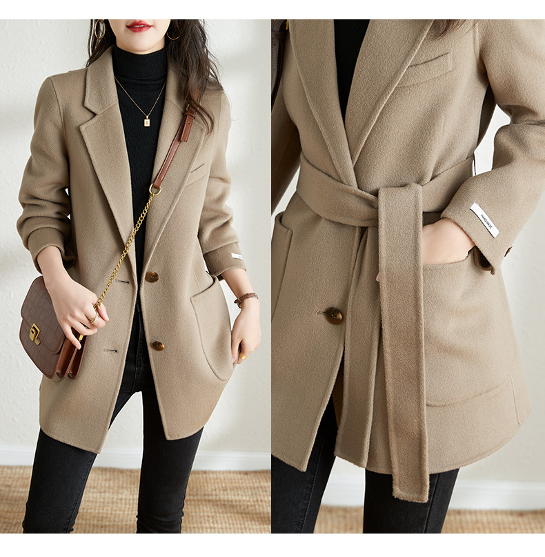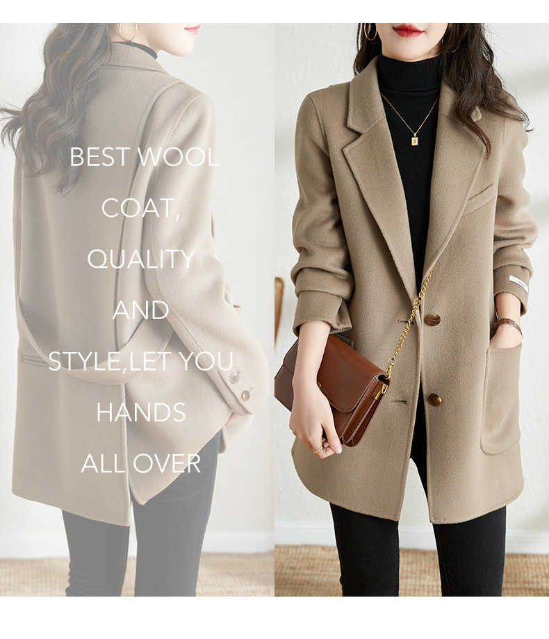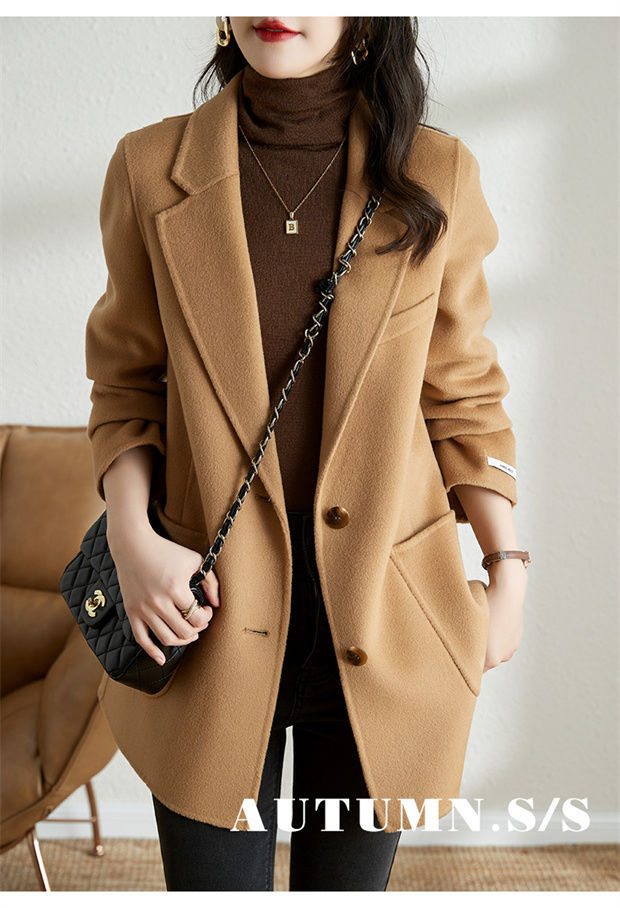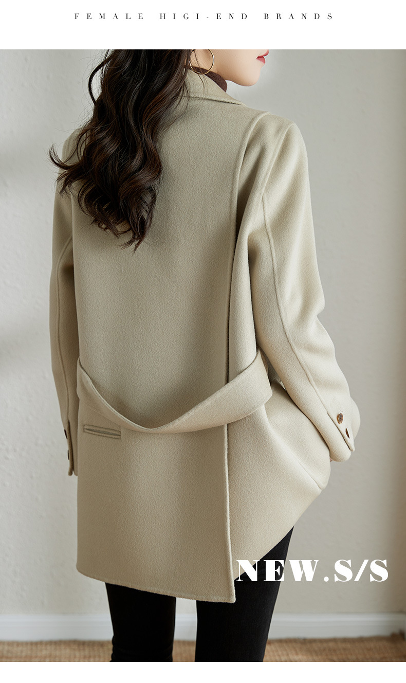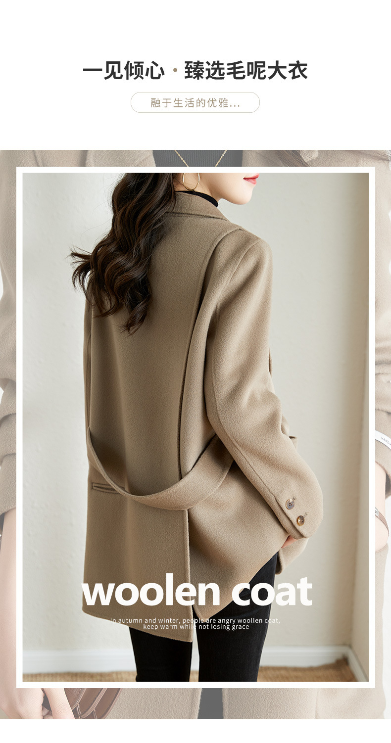 雀说 毛呢大衣女韩版秋冬高端气质双层呢宽松毛呢外套4ZF-021914