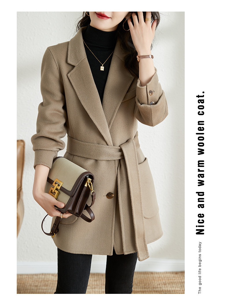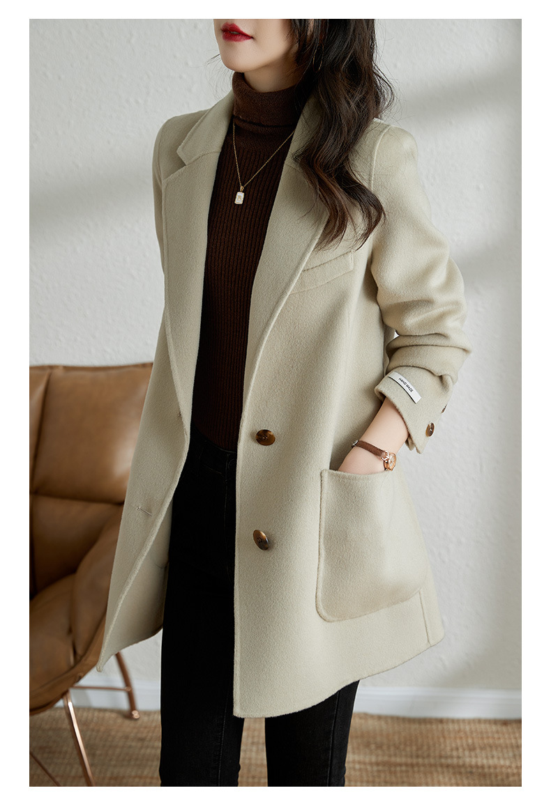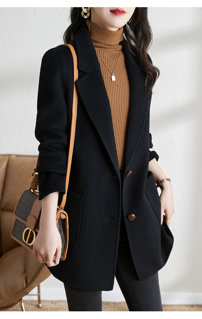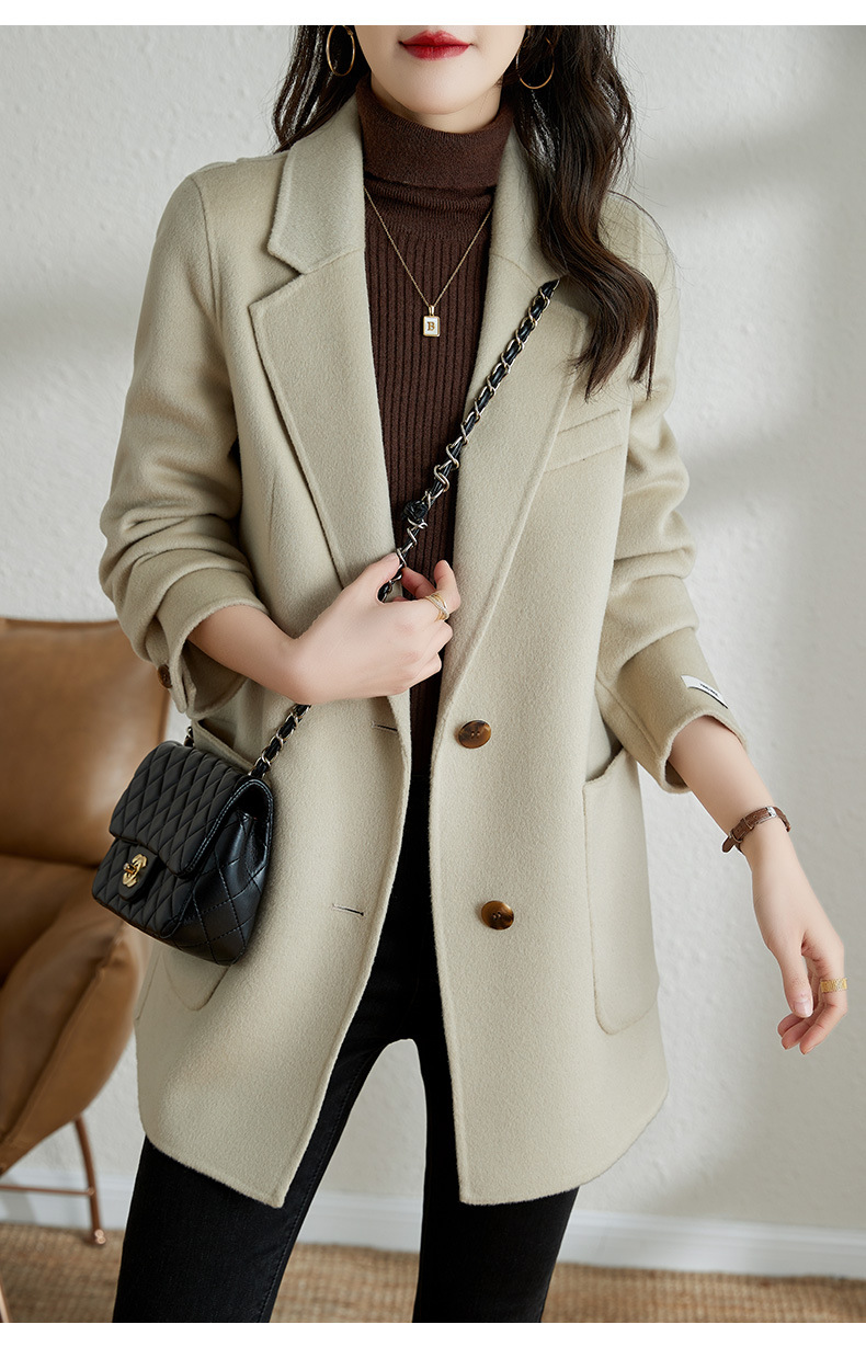 雀说 毛呢大衣女韩版秋冬高端气质双层呢宽松毛呢外套4ZF-021914