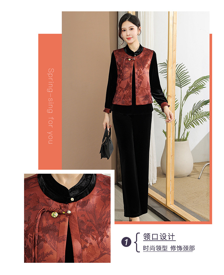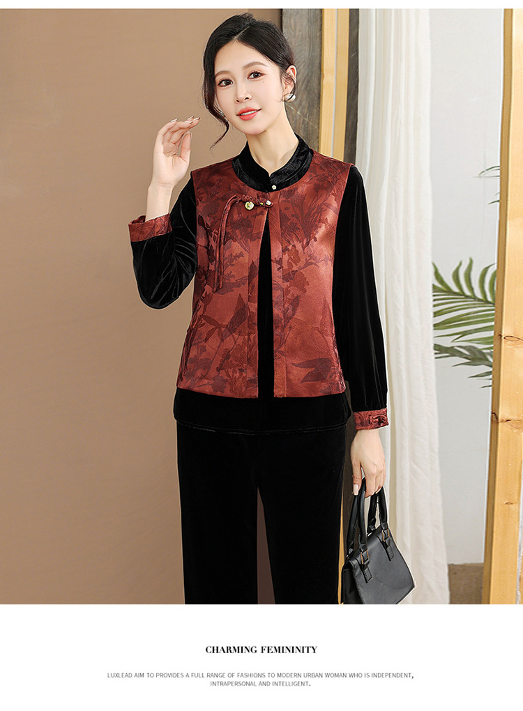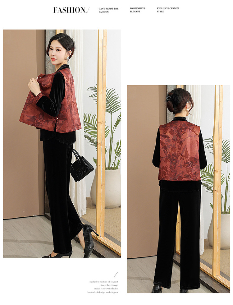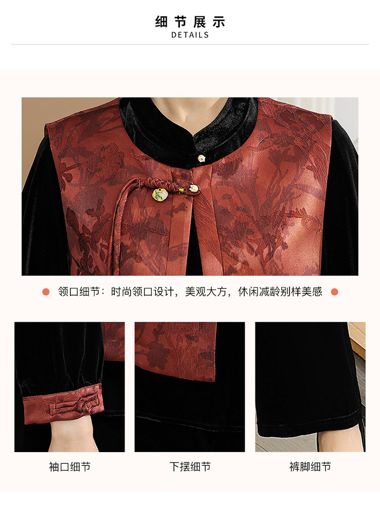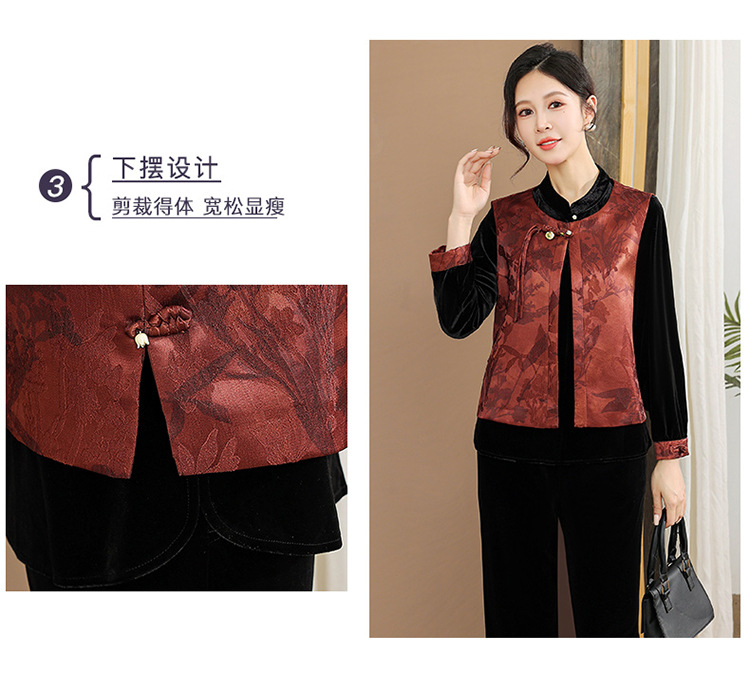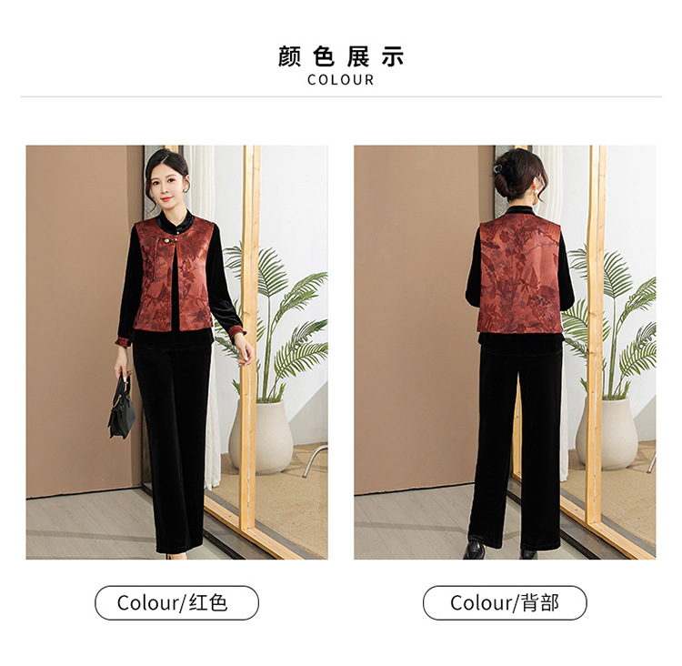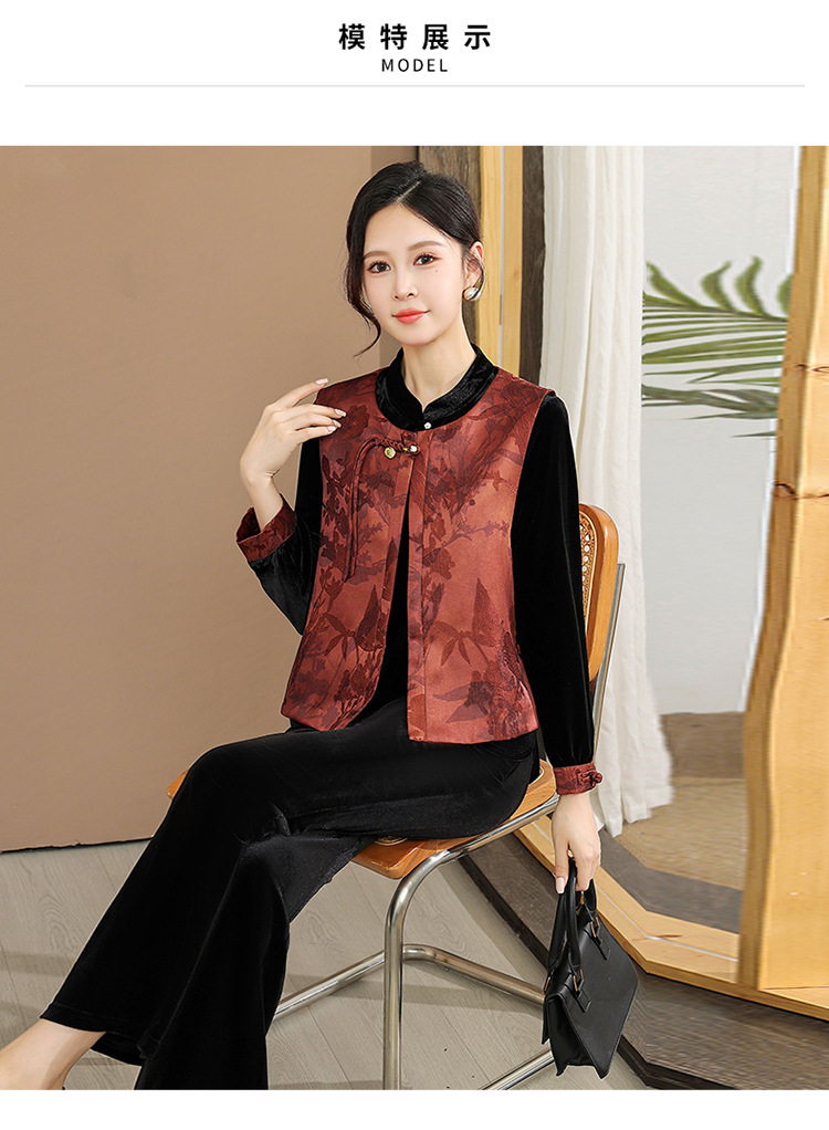 QYM CS25C60-1-Y新中式国风套装印花马甲小衫裤子洋气三件套 商品图3