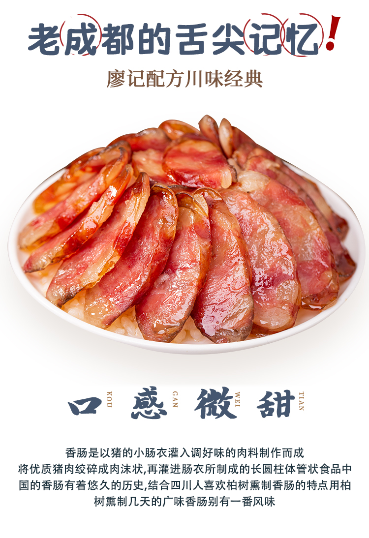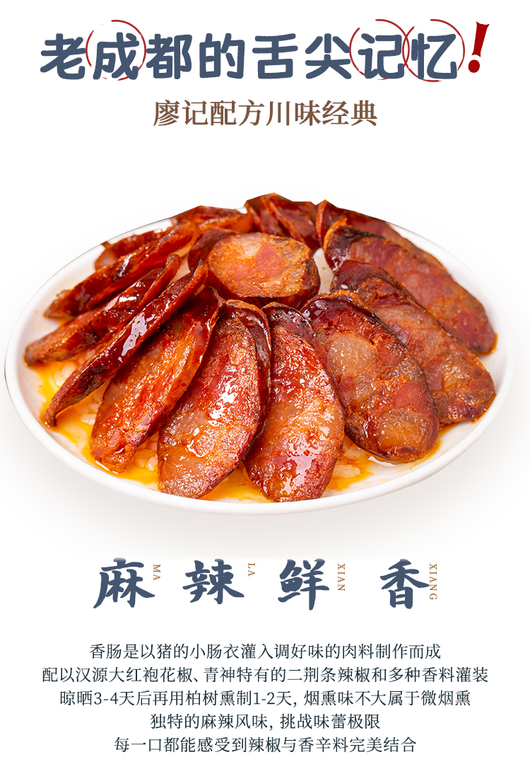 廖记棒棒鸡麻辣/广味香肠450g四川特产烟熏正宗腊肉腊肠年货送礼