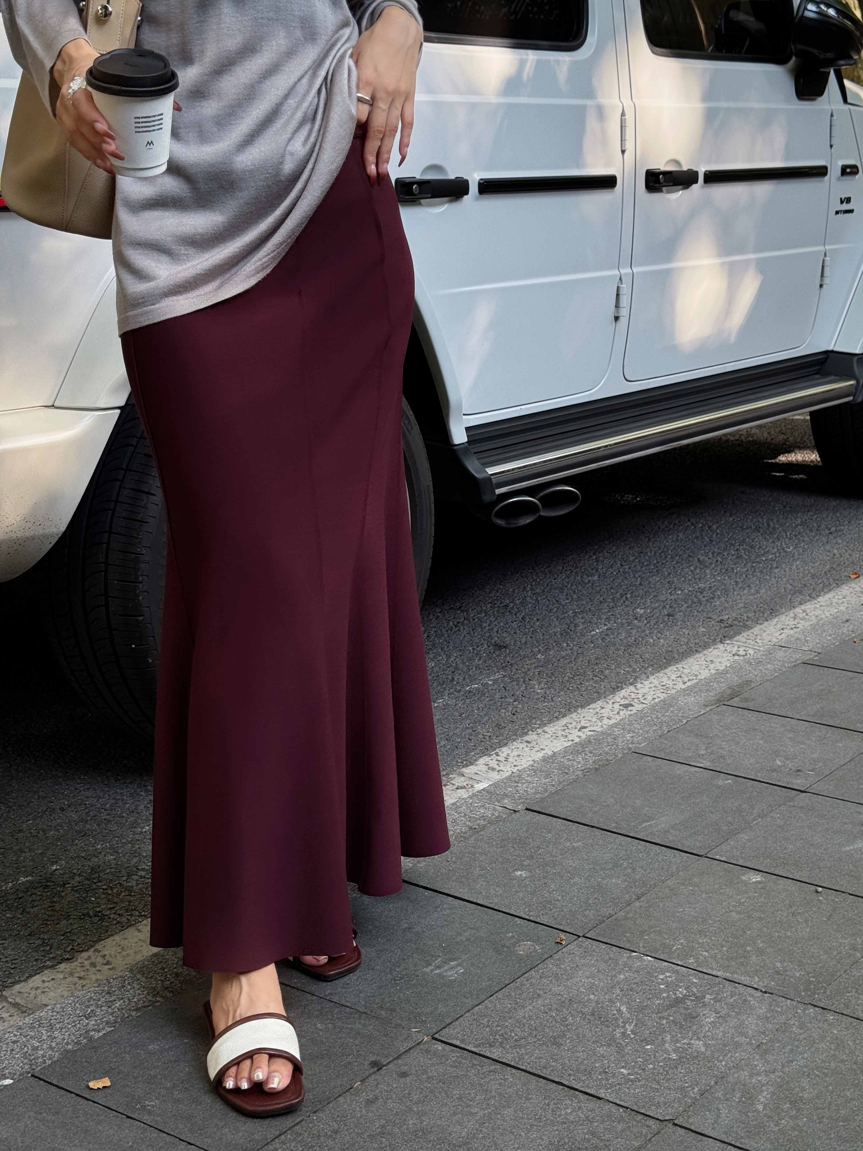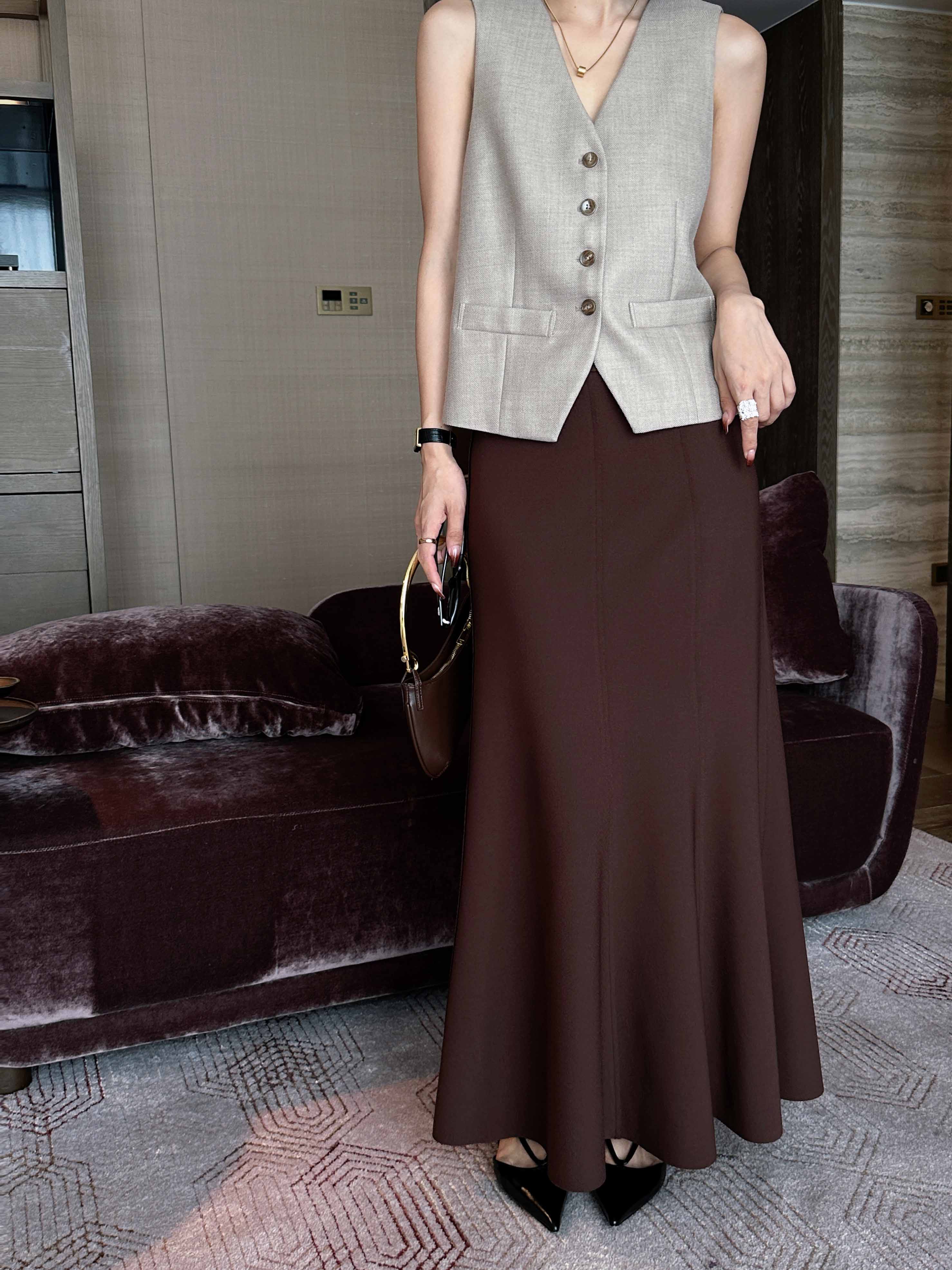 鱼尾裙贴合人体臀型的流线剪裁。呈现自然流畅的曲线线条