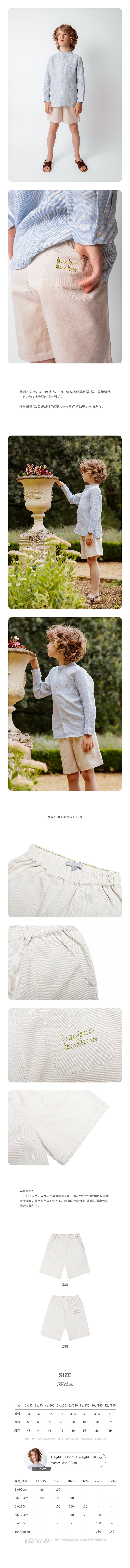 休闲米白五分裤