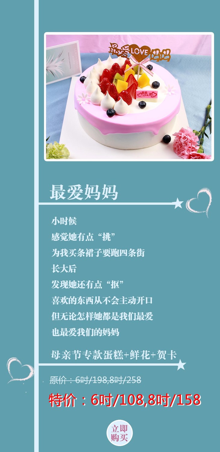 母亲节 | 108元抢购专款(蛋糕+鲜花)套餐