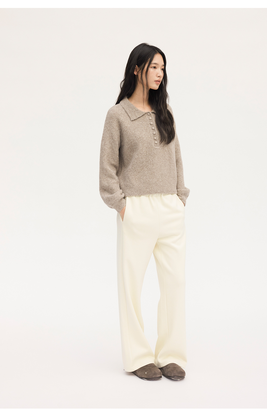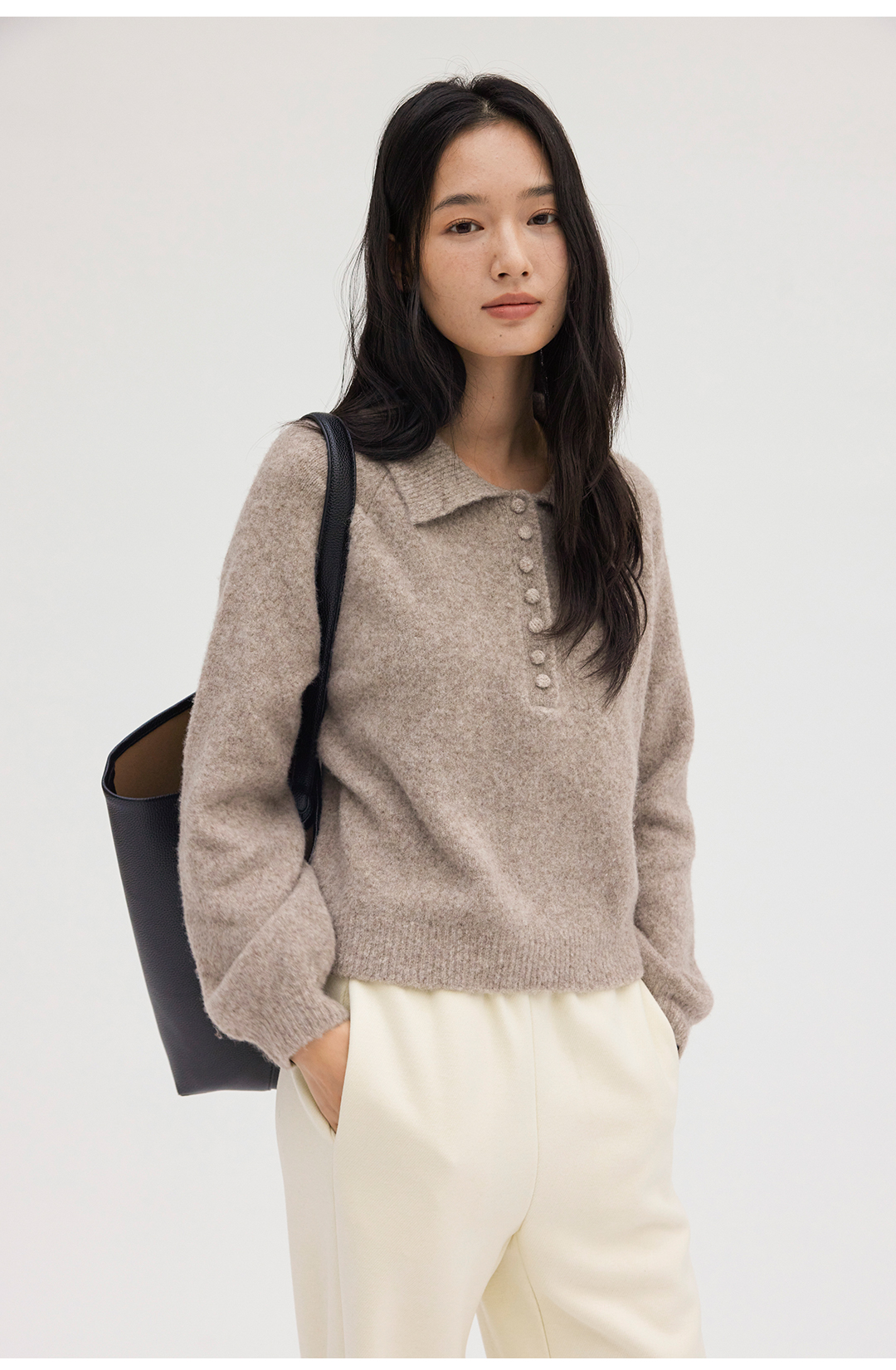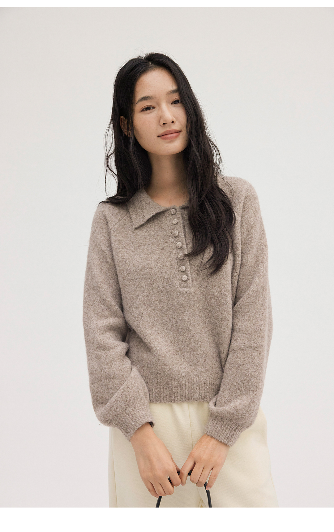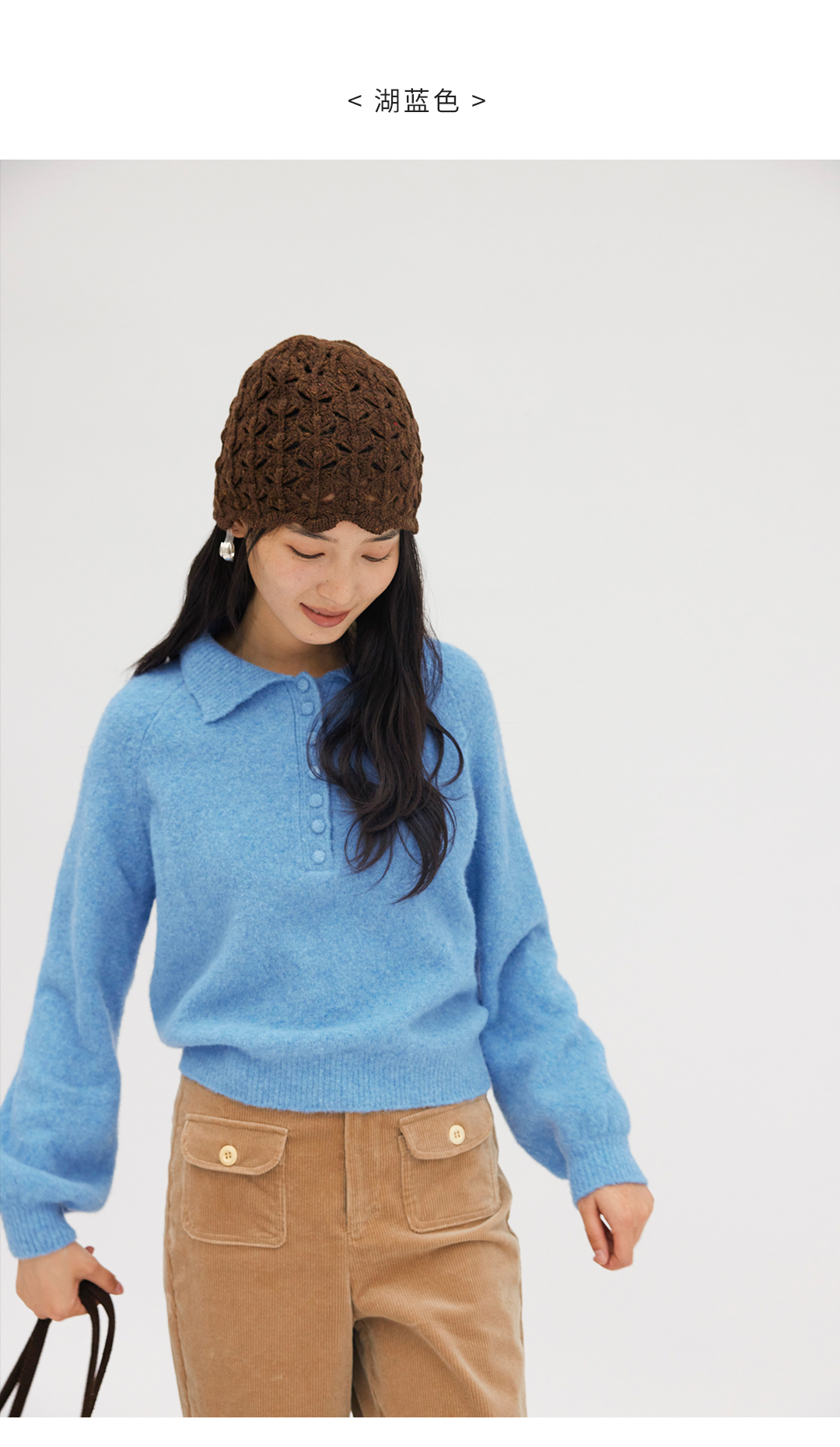 HeyDress法式翻领宽松毛衣