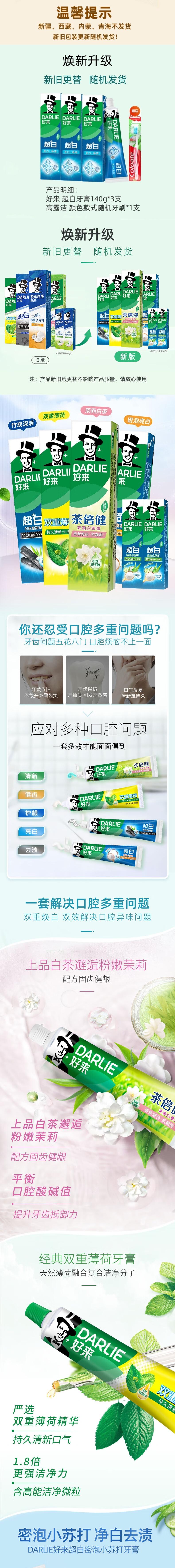 好来 新升级超白牙膏140g*3支+高露洁牙刷1支 hlcb03s1